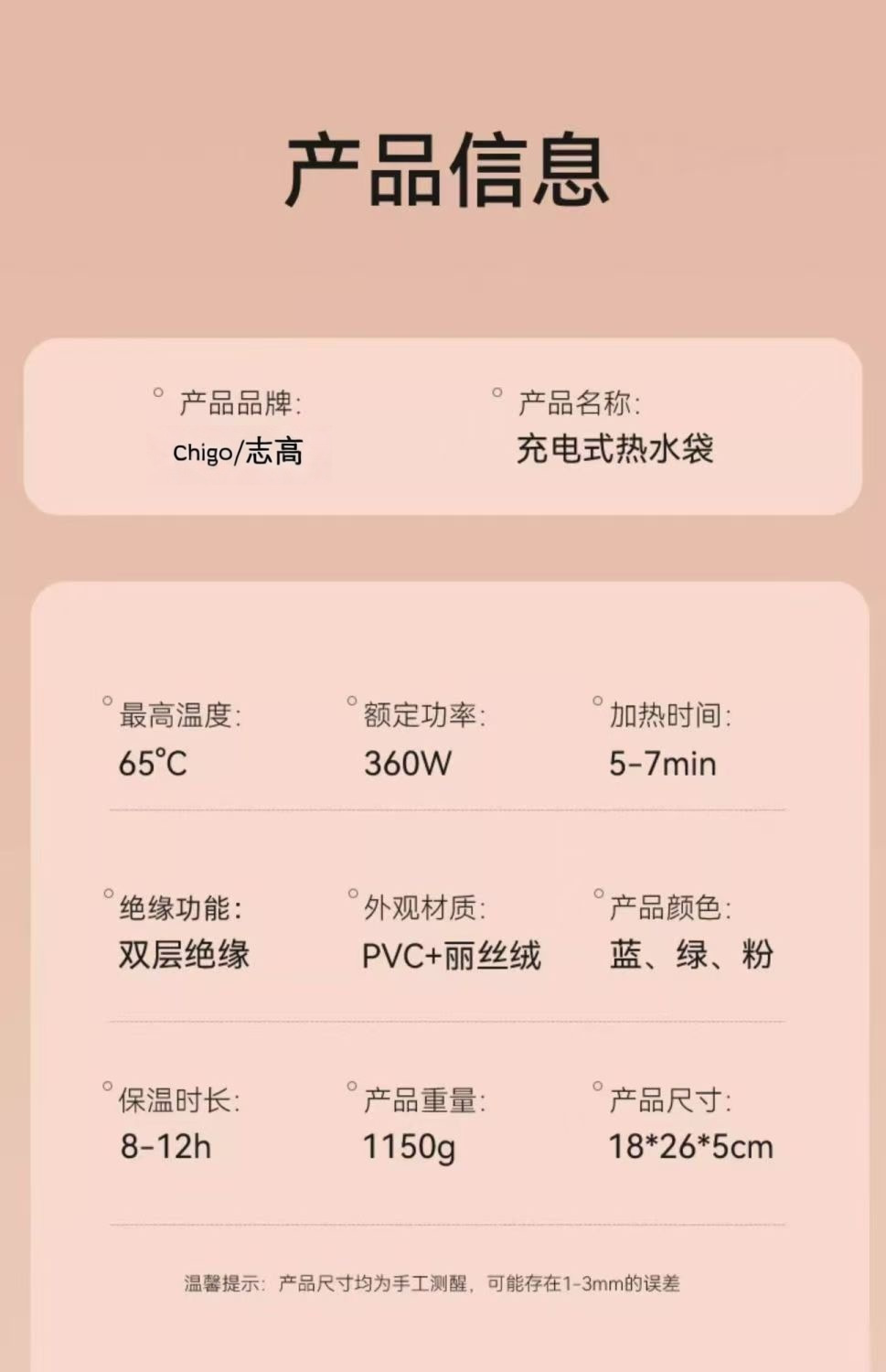 志高热水袋智能数显暖手宝双插手暖水袋国标防爆暖手热敷热水袋