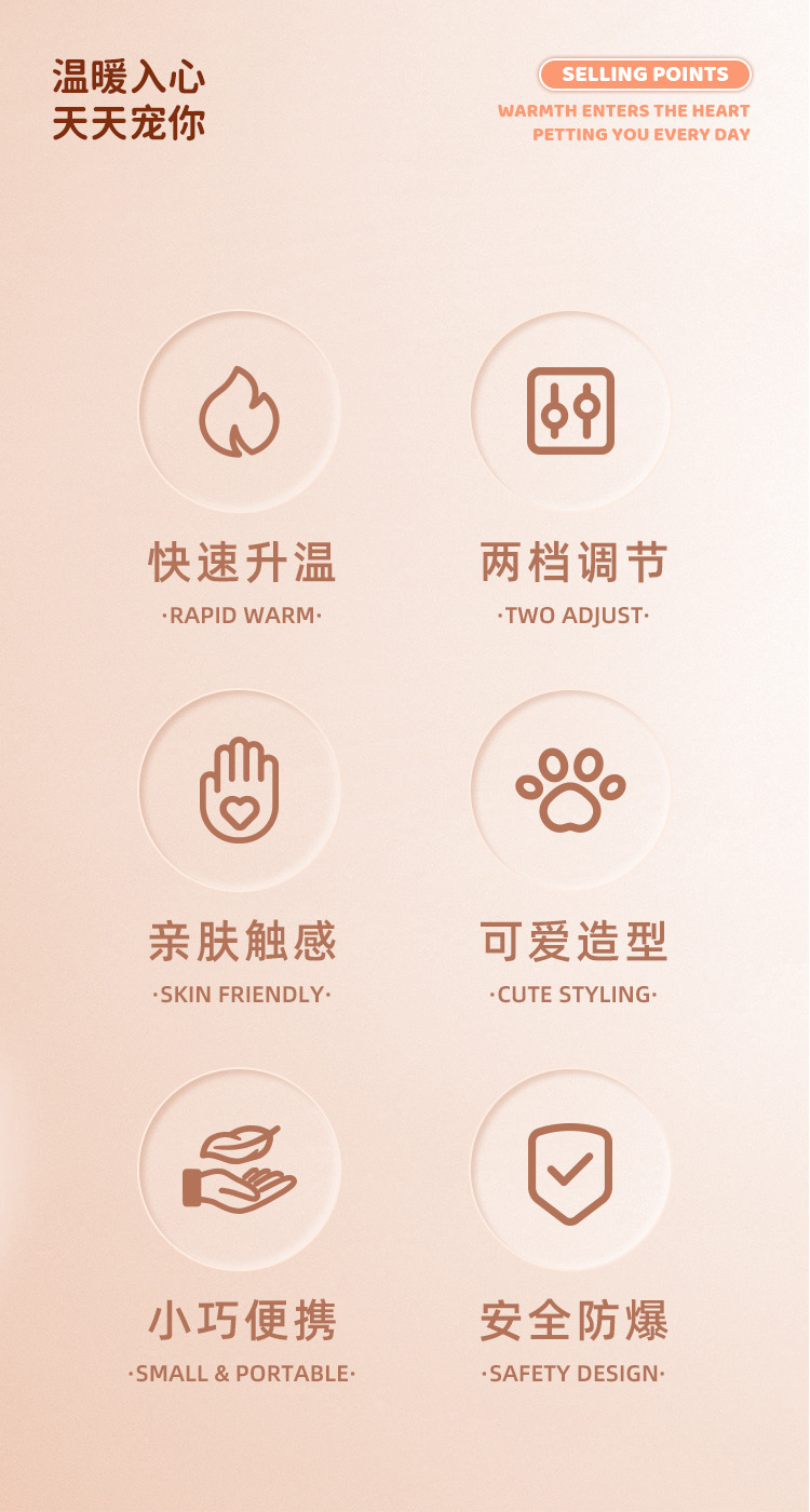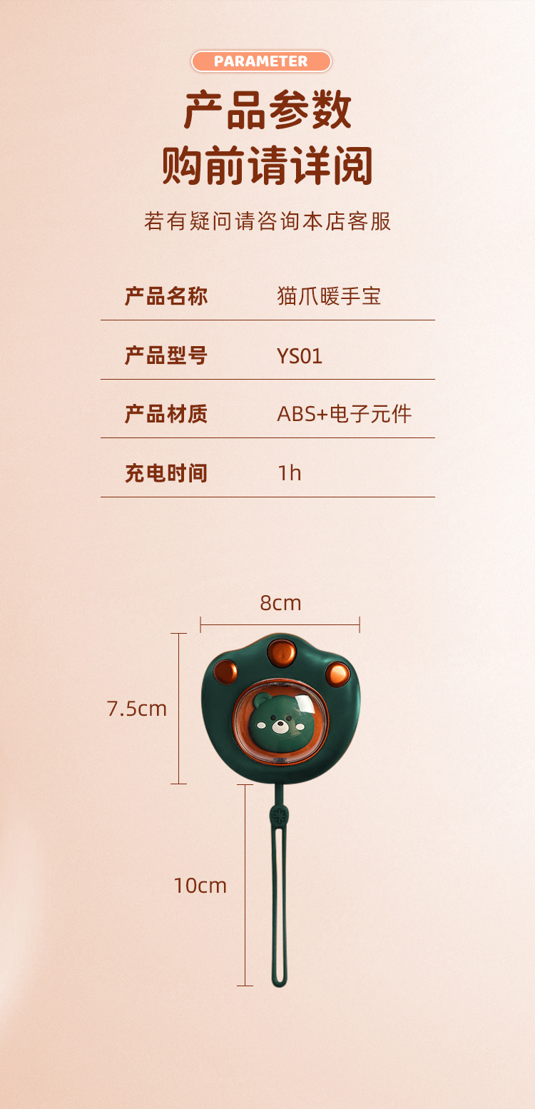 新款USB充电猫爪暖手宝 猫爪防爆小巧便携式萌宠卡通充电式暖手宝