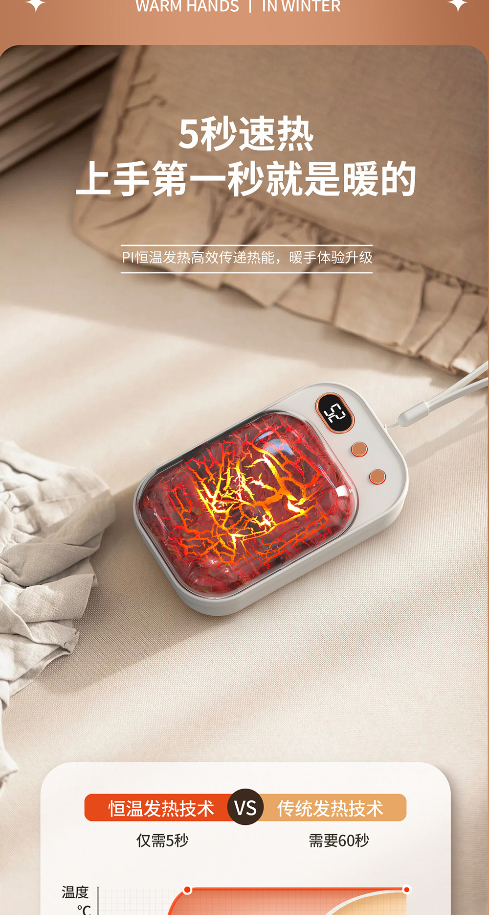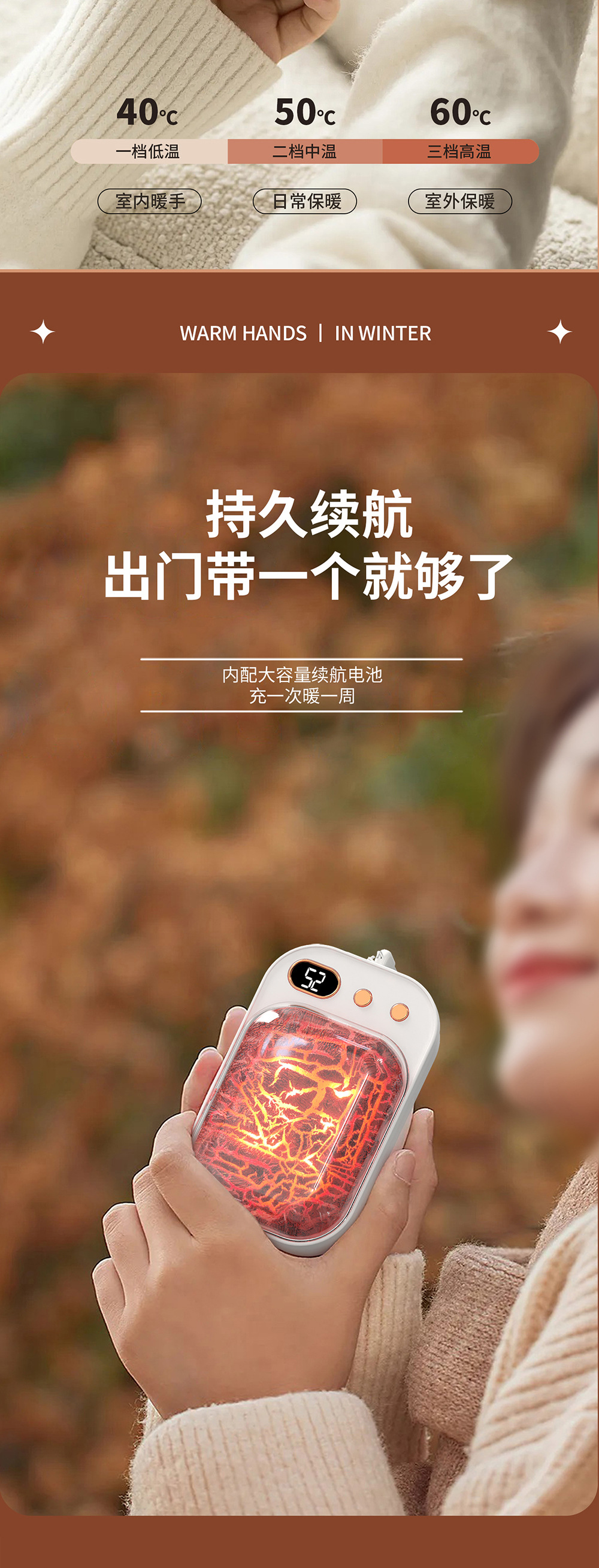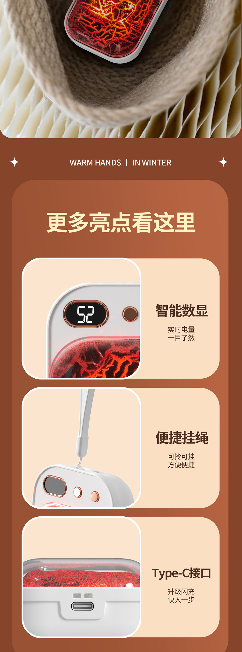 跨境新款火炭数显暖手宝usb充电款手握暖宝宝 随身便携户外暖手宝