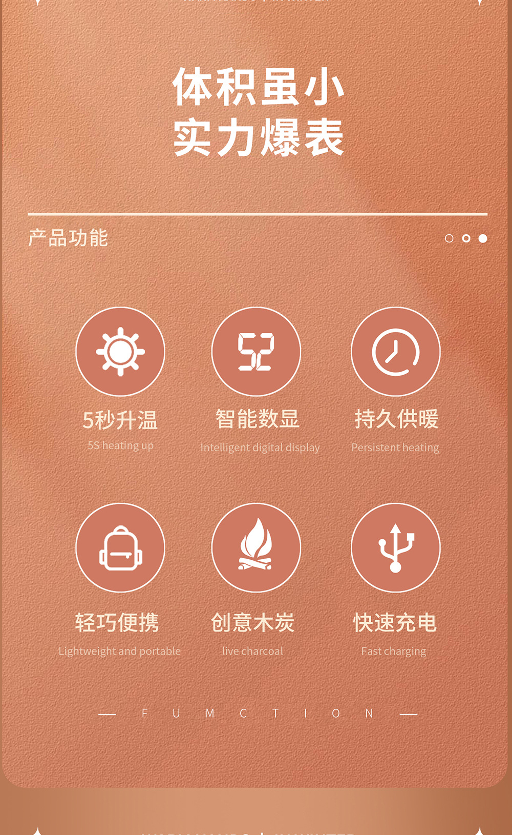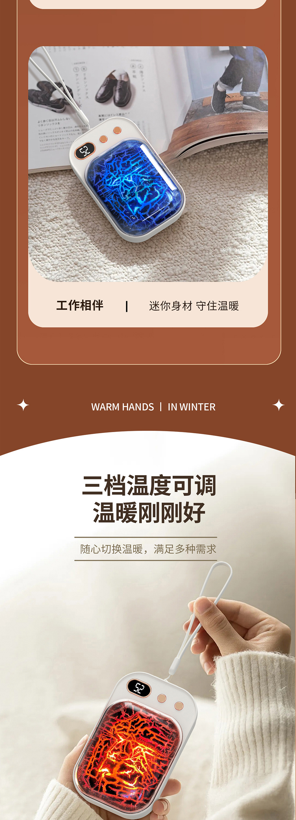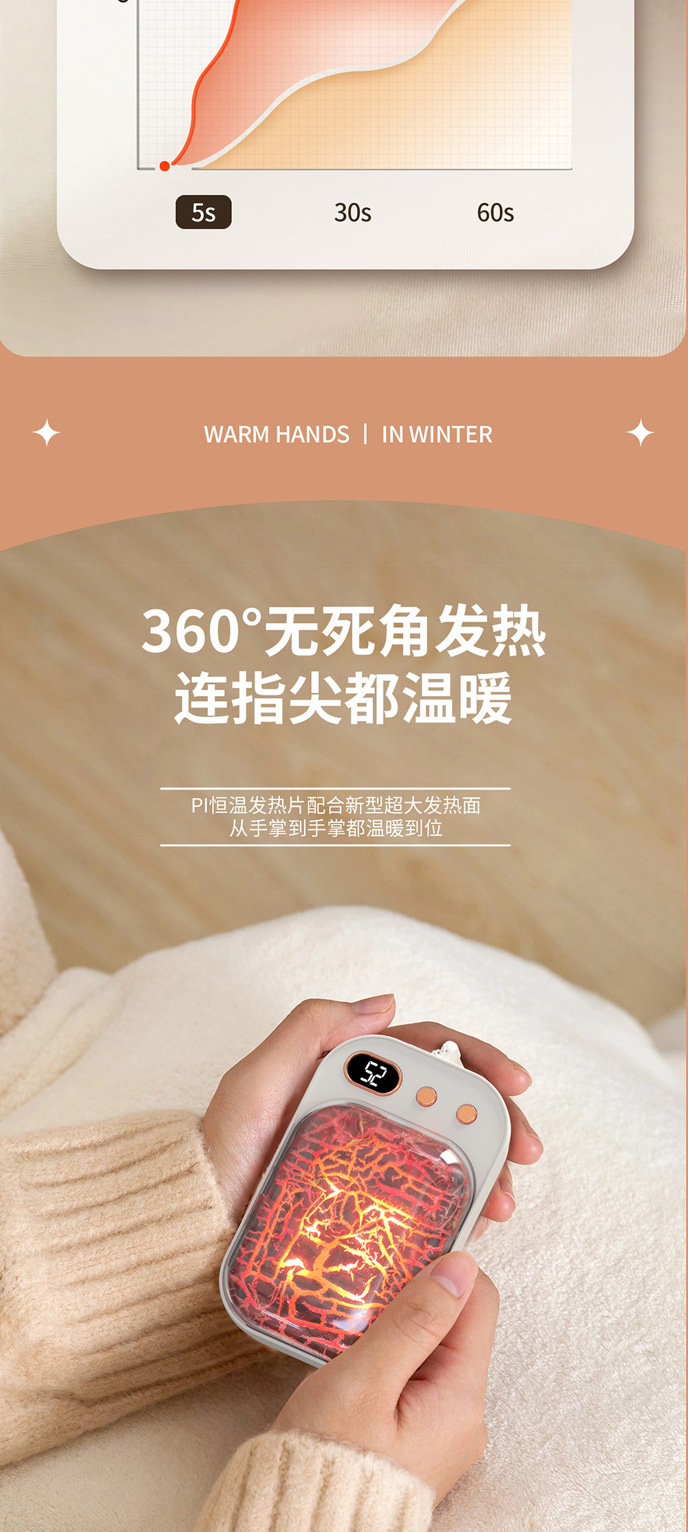 跨境新款火炭数显暖手宝usb充电款手握暖宝宝 随身便携户外暖手宝