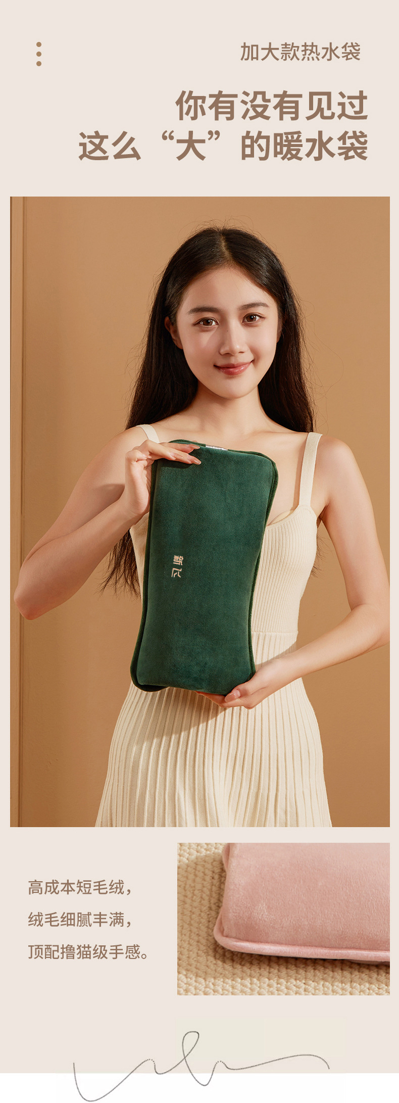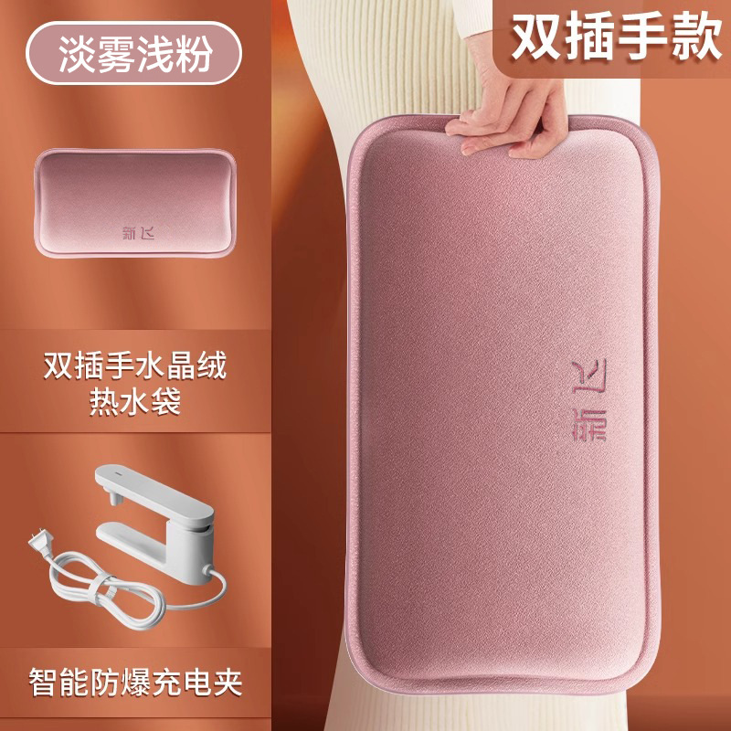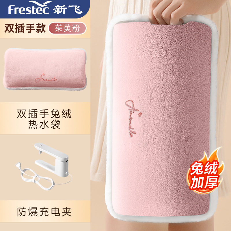 新飞国标热水袋大款防爆充电式热水袋毛绒加厚可拆洗女生例假必备