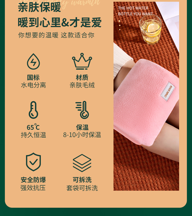 热水袋防爆充电式暖水袋女生毛绒可爱电暖手宝热敷暖肚子腰暖宝宝