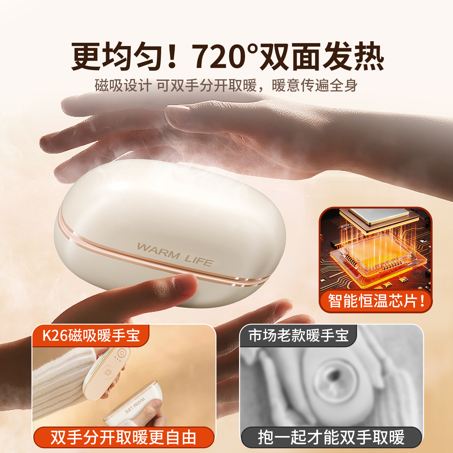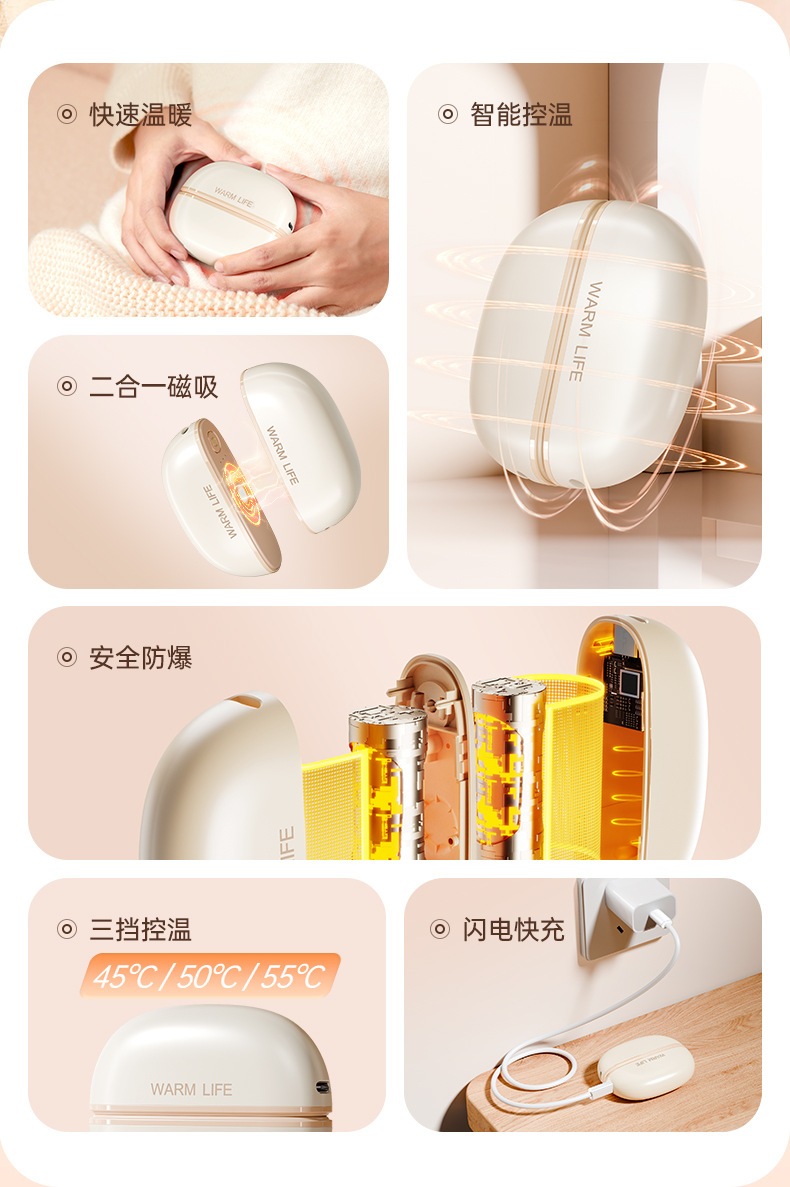 磁吸电暖手宝 创意分体式USB户外暖宝宝便携二合一充电宝跨境新款
