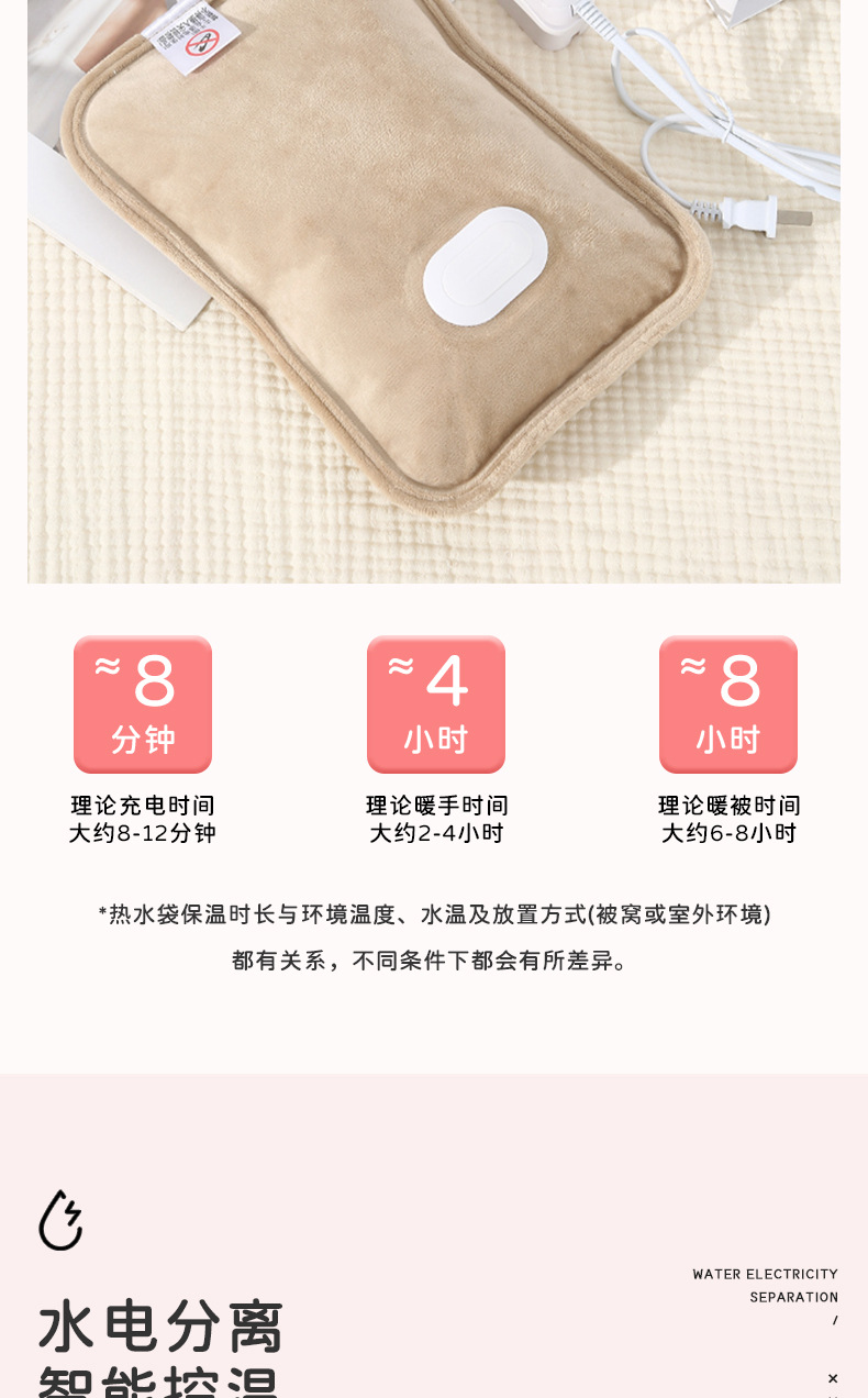 成品电热水袋充电式暖手宝防爆暖水袋加厚暖宝宝温控国标电暖宝