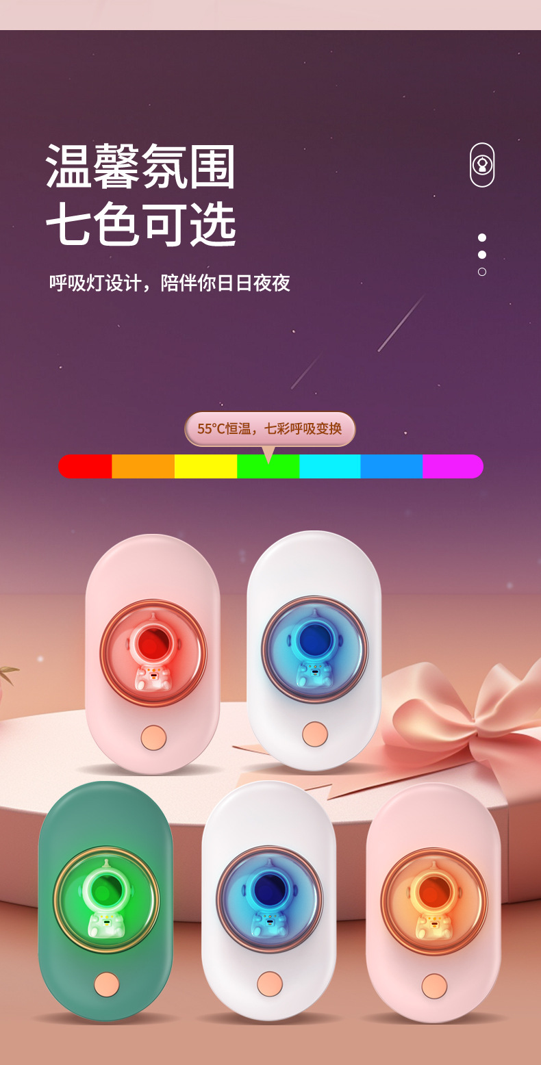2023年新款卡通宇航员暖手宝迷你便携氛围小夜灯二合一批发礼品