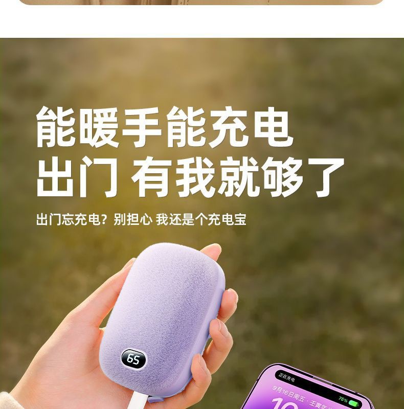 毛绒暖手宝3C认证充电宝一件起批法兰绒双面随身便携式二合一