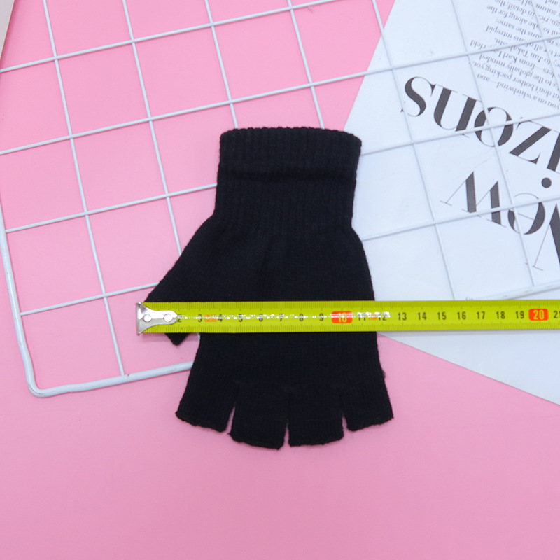 跨境半指纯色手套薄款露指春秋针织毛线冬天男女通用半截手套批发