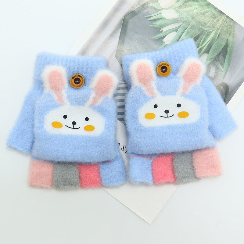 库洛米儿童翻盖手套冬季半指女孩三丽鸥保暖写字男女童秋冬款半截