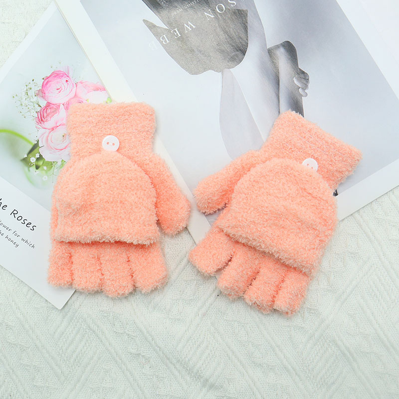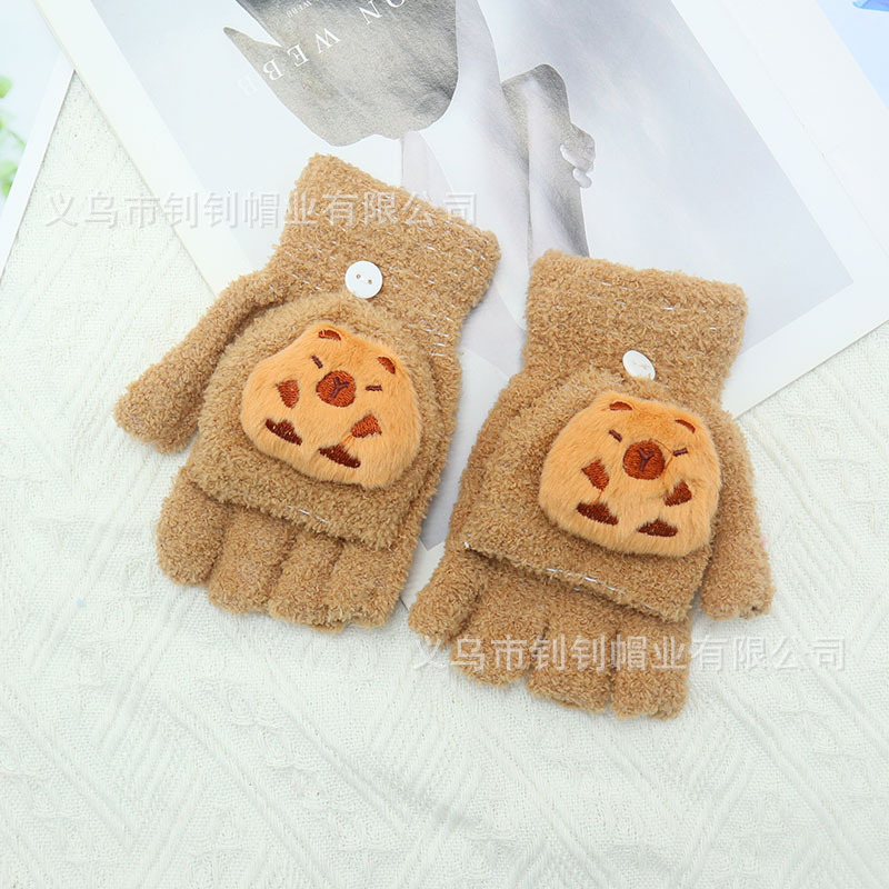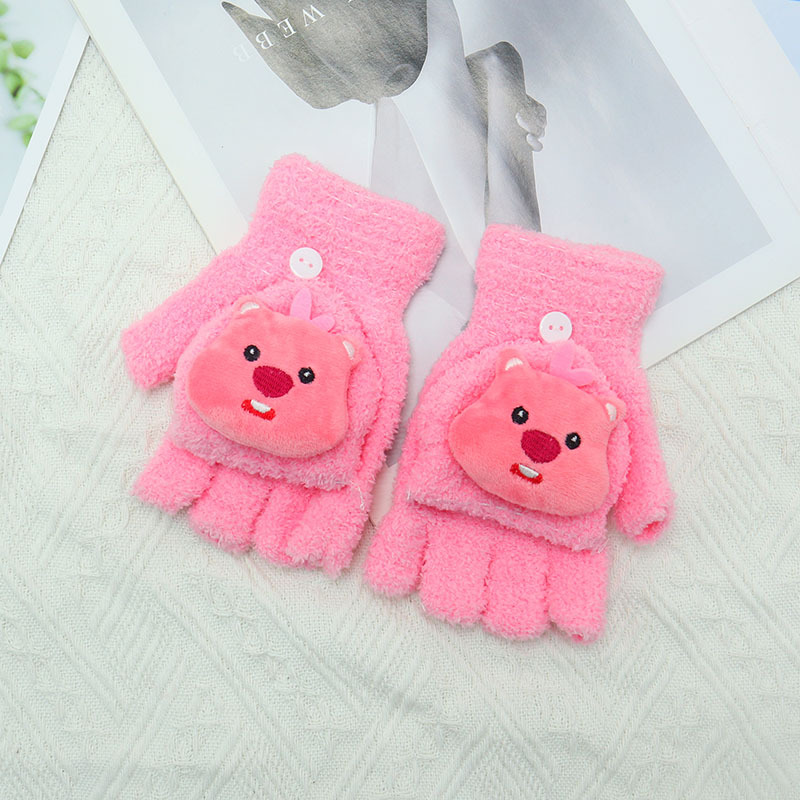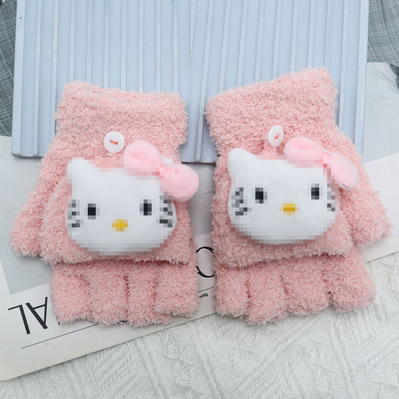 儿童手套女孩冬季保暖中大童半指卡通三丽鸥小学生写字翻盖五指套