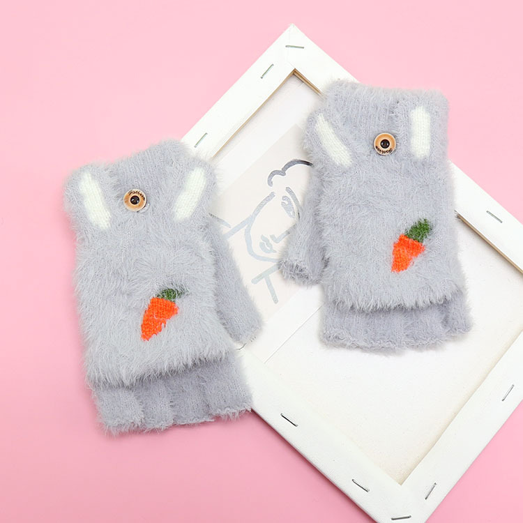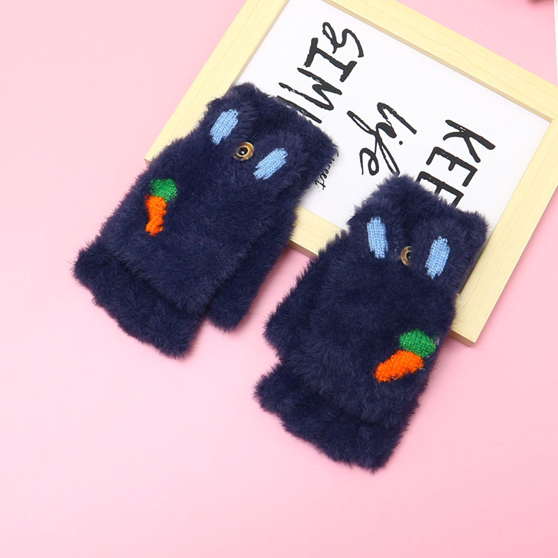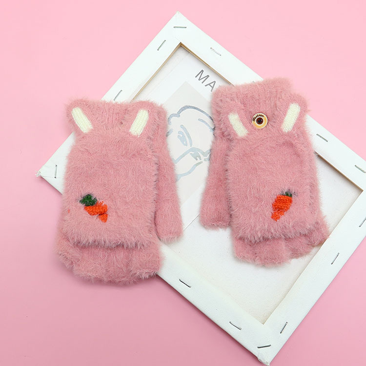 儿童手套冬季保暖可爱幼儿园冬天半指可爱男宝宝防寒翻盖针织女童