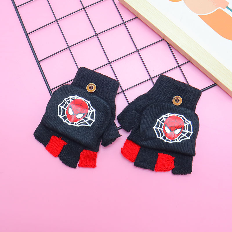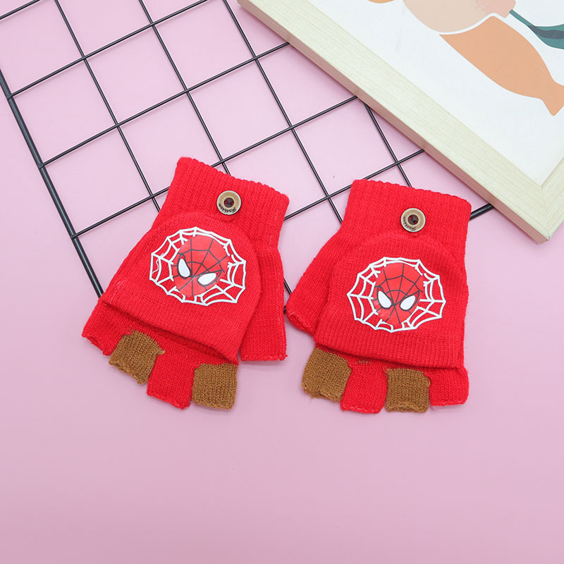 冬季新款儿童针织手套男童半指保暖女宝宝写字防寒翻盖小学生两用