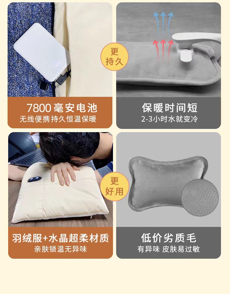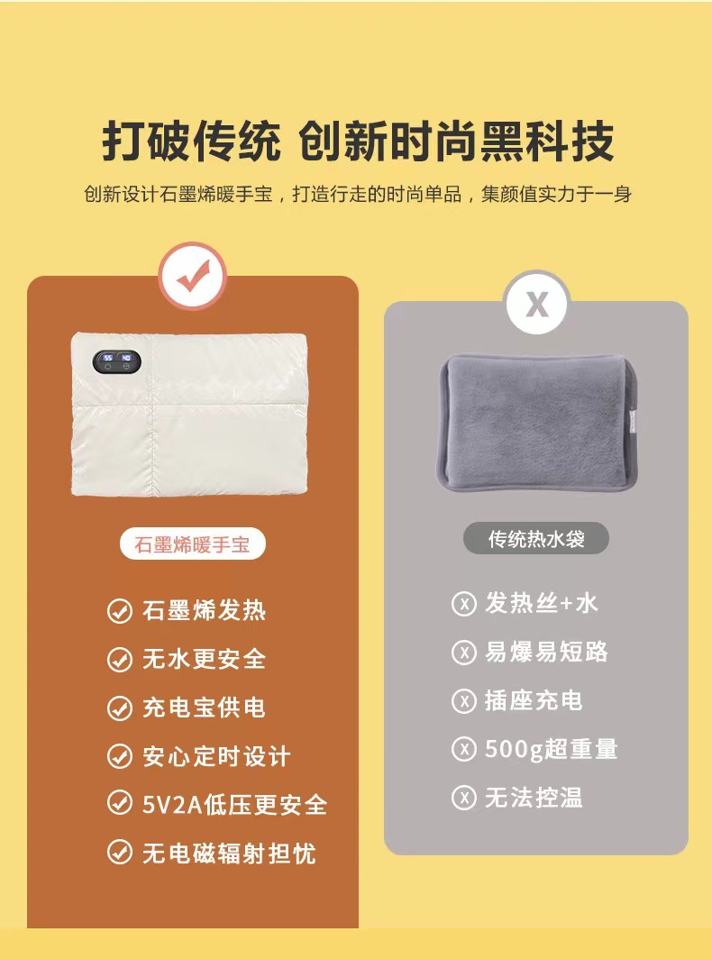 石墨烯羽绒暖手袋充电式无水防爆暖宝宝暖肚子便携式冬季取暖神器