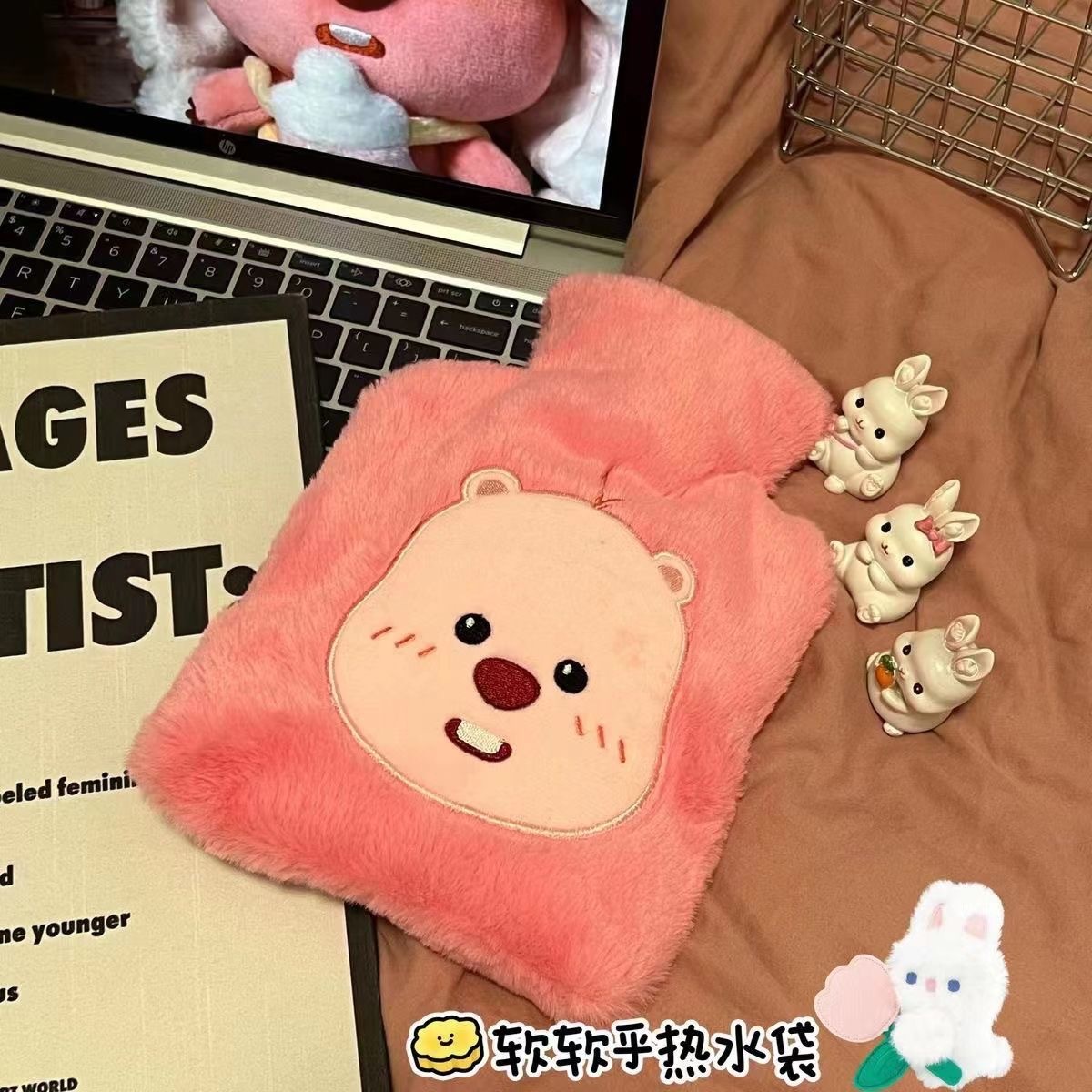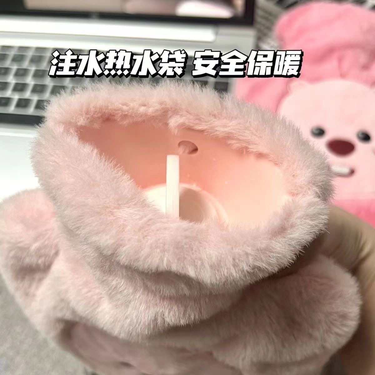 新款加厚热水袋灌水注水式暖手宝暖宝宝可爱毛绒海狸露比暖水袋
