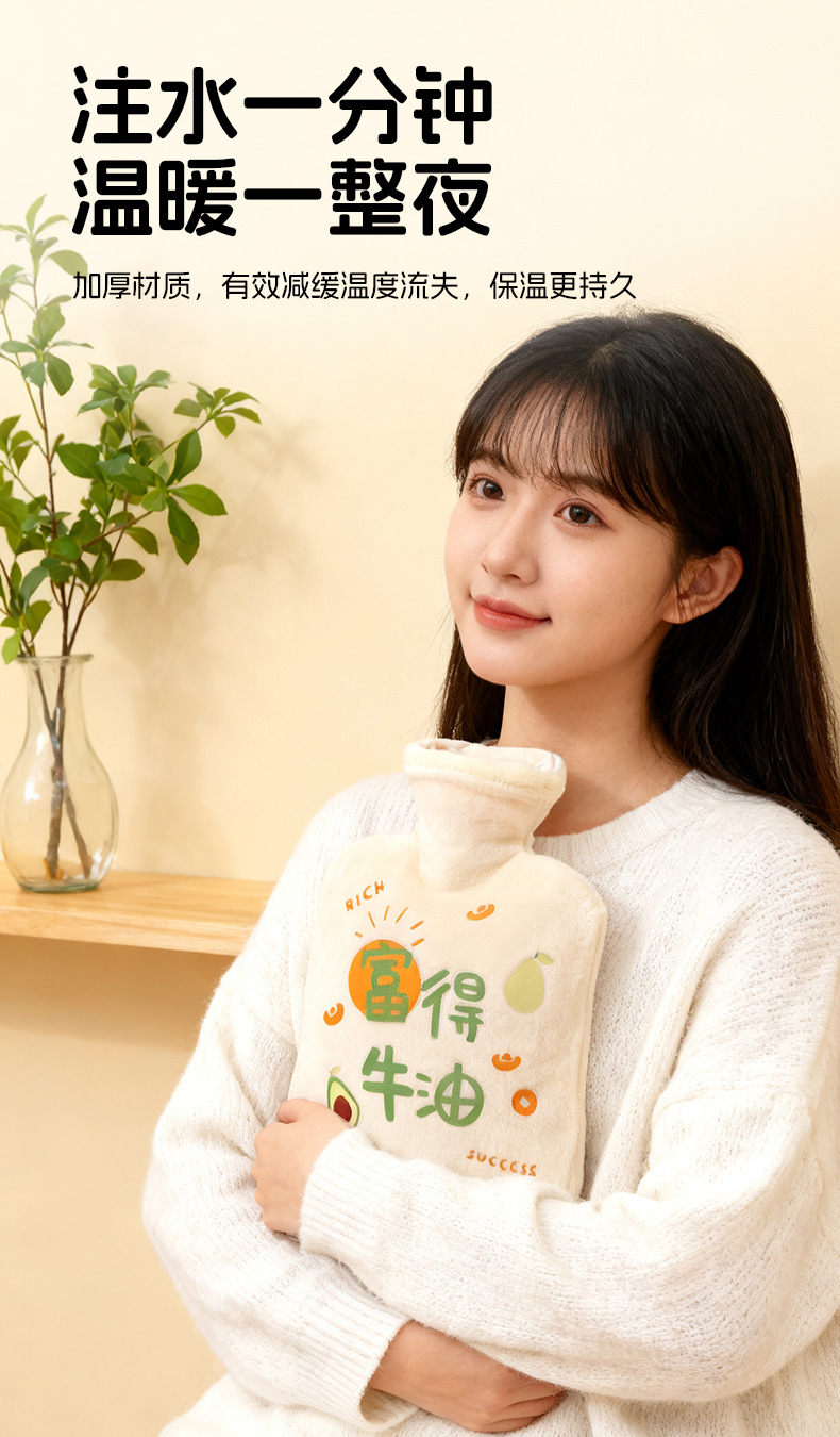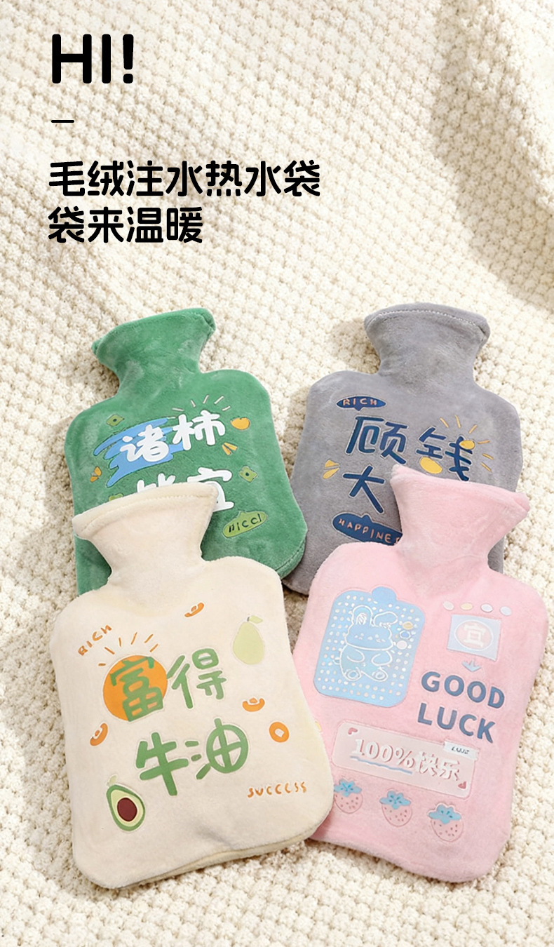 冬季可拆洗卡通布套注水热水袋加厚防爆大号暖肚子暖脚可爱暖水袋