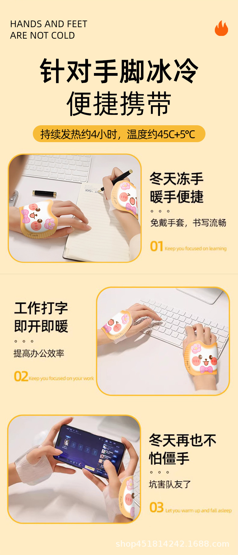 卡通蒸汽穿戴式暖手宝手足冬季两用热敷暖手贴学生保暖男女通用