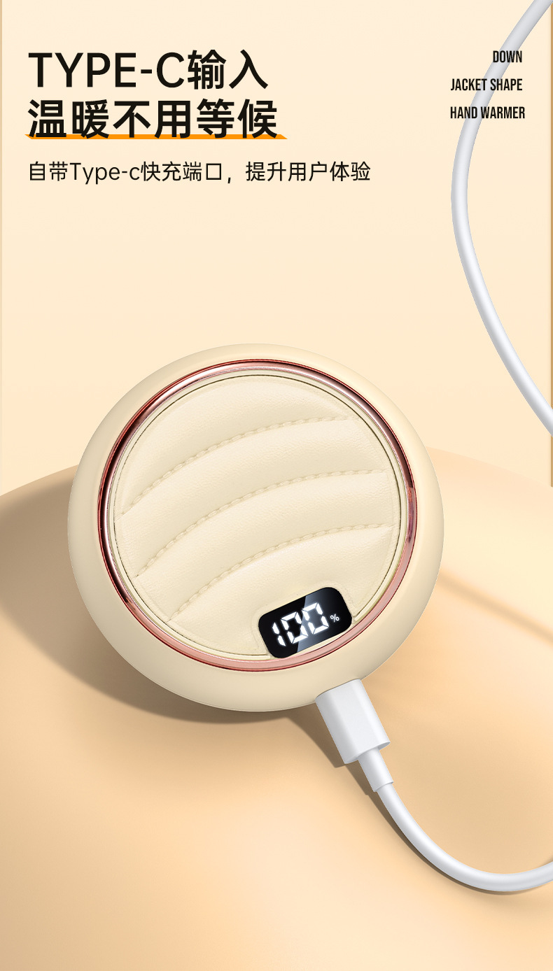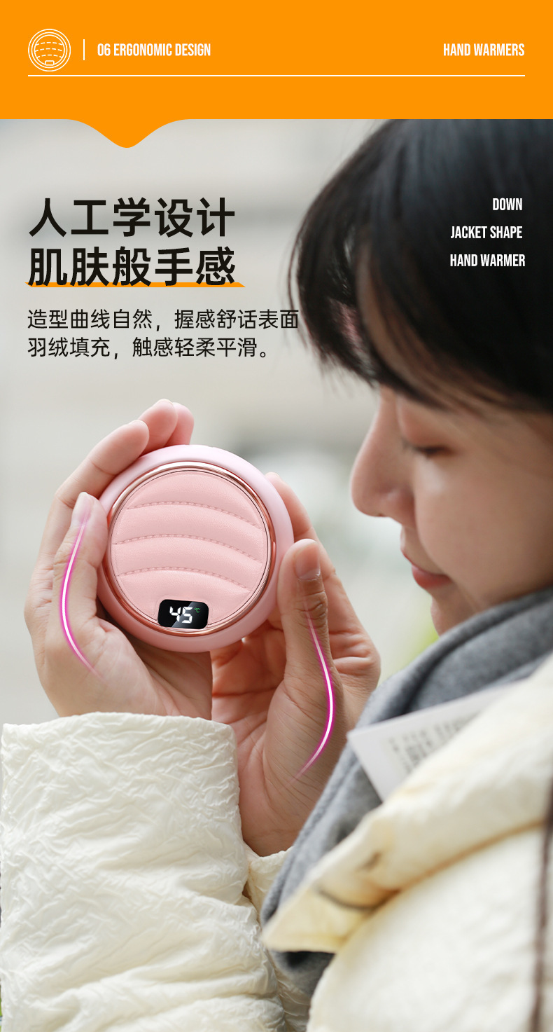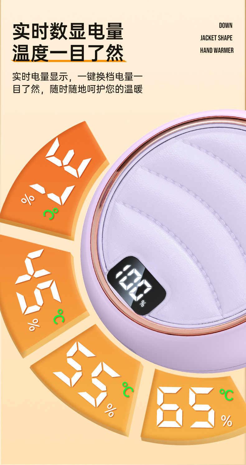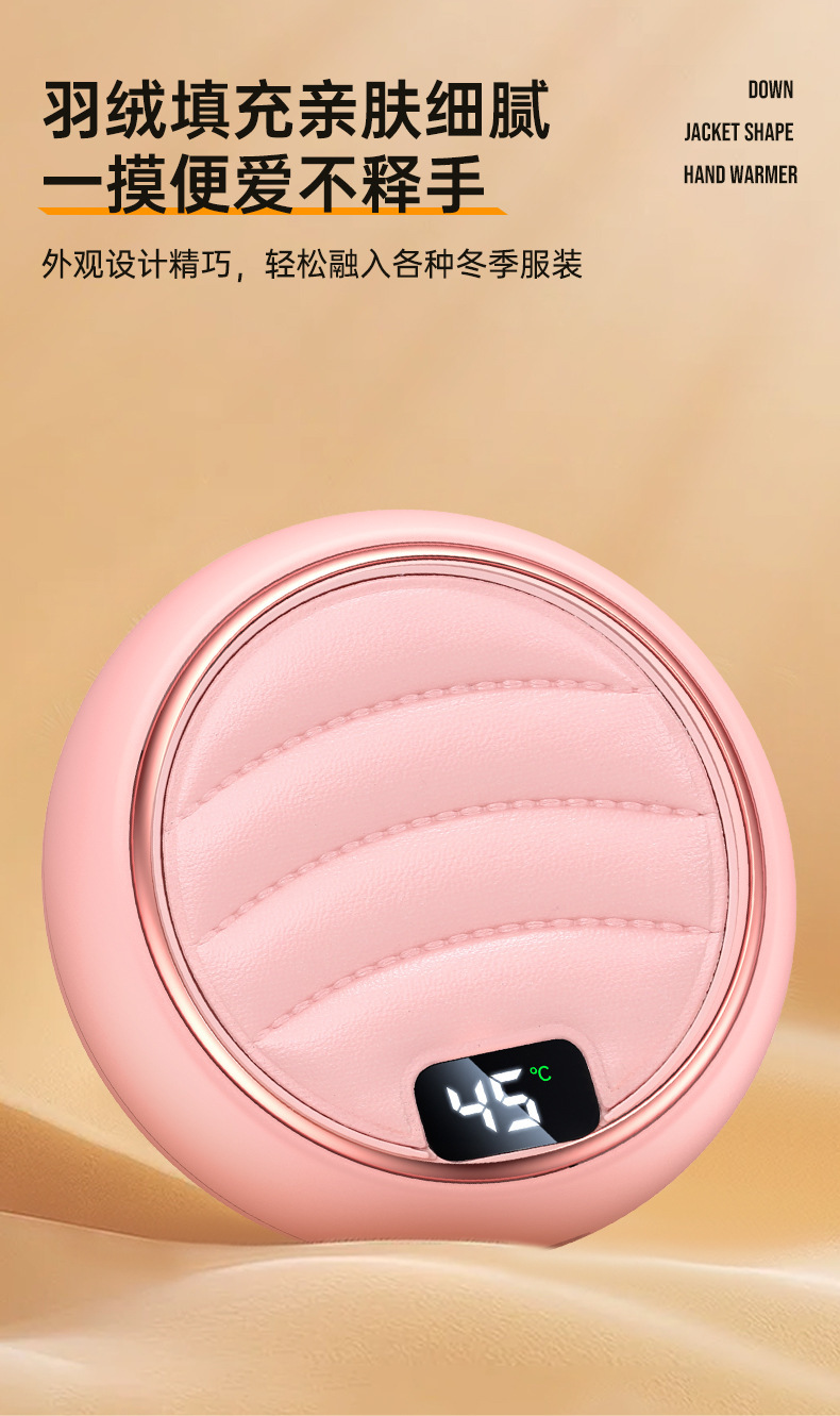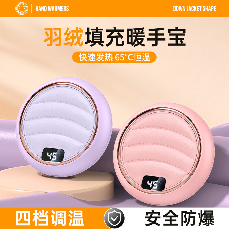 新款轻奢羽绒暖手宝 迷你便携女生暖宝宝usb可充电数显暖手宝礼品