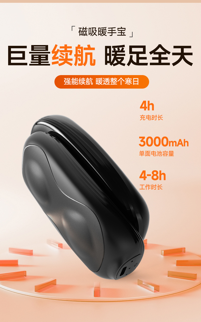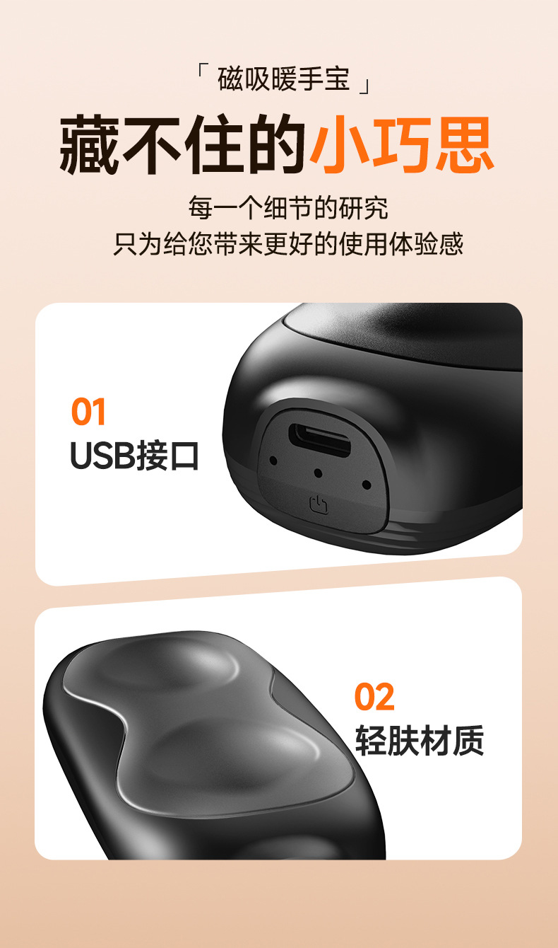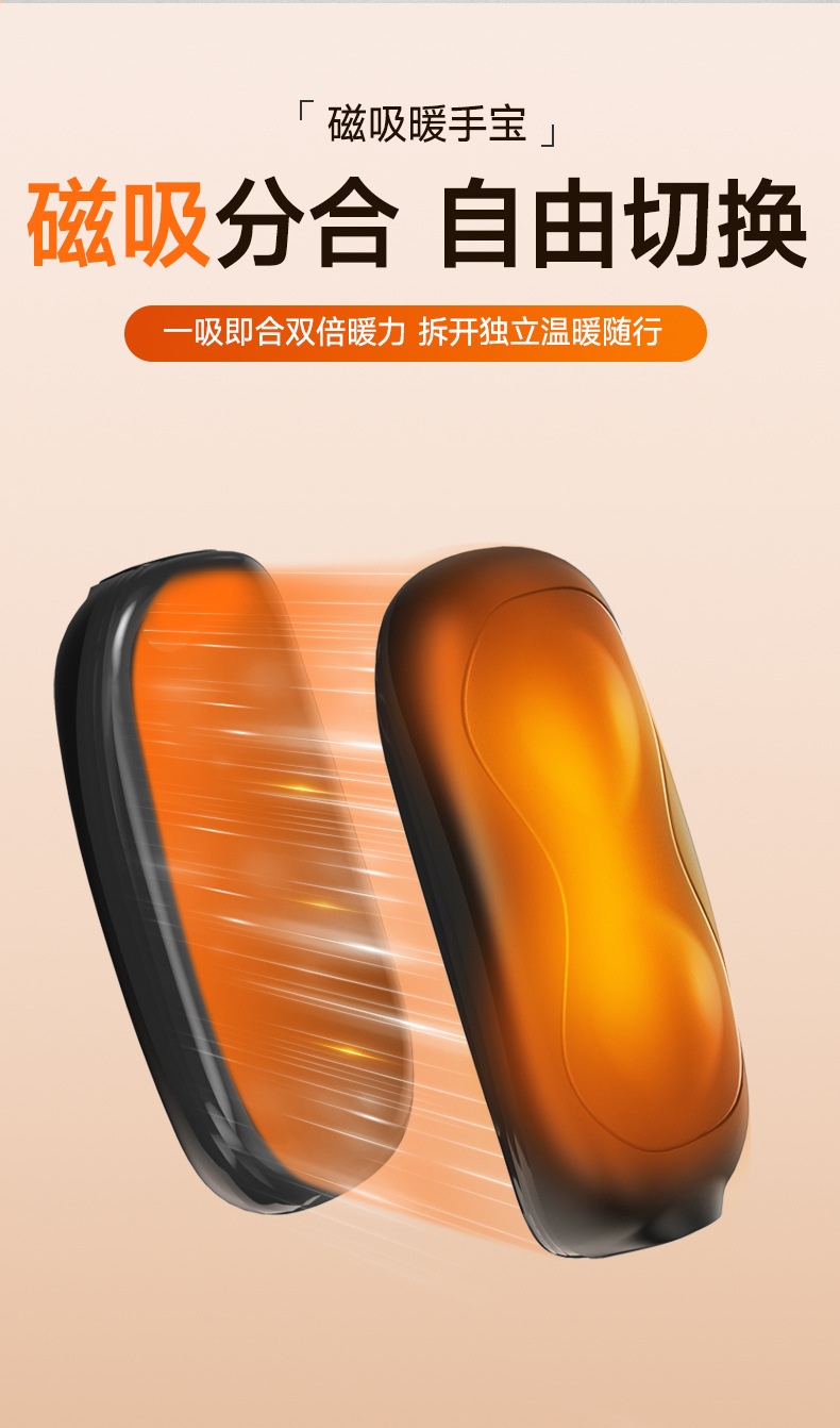 新款磁吸暖手宝usb充电二合一双面发热跨境迷你随身手握暖手宝