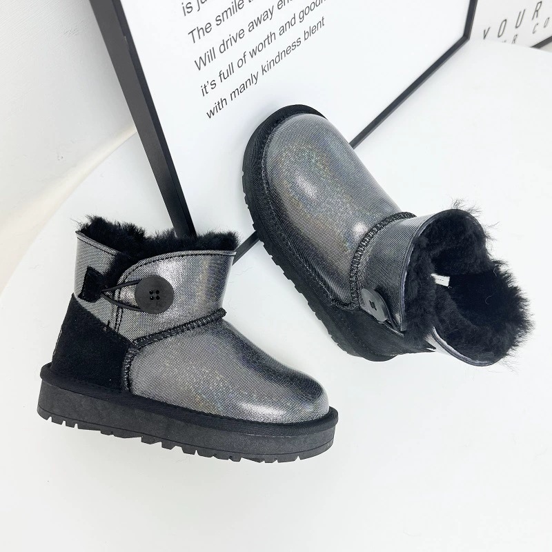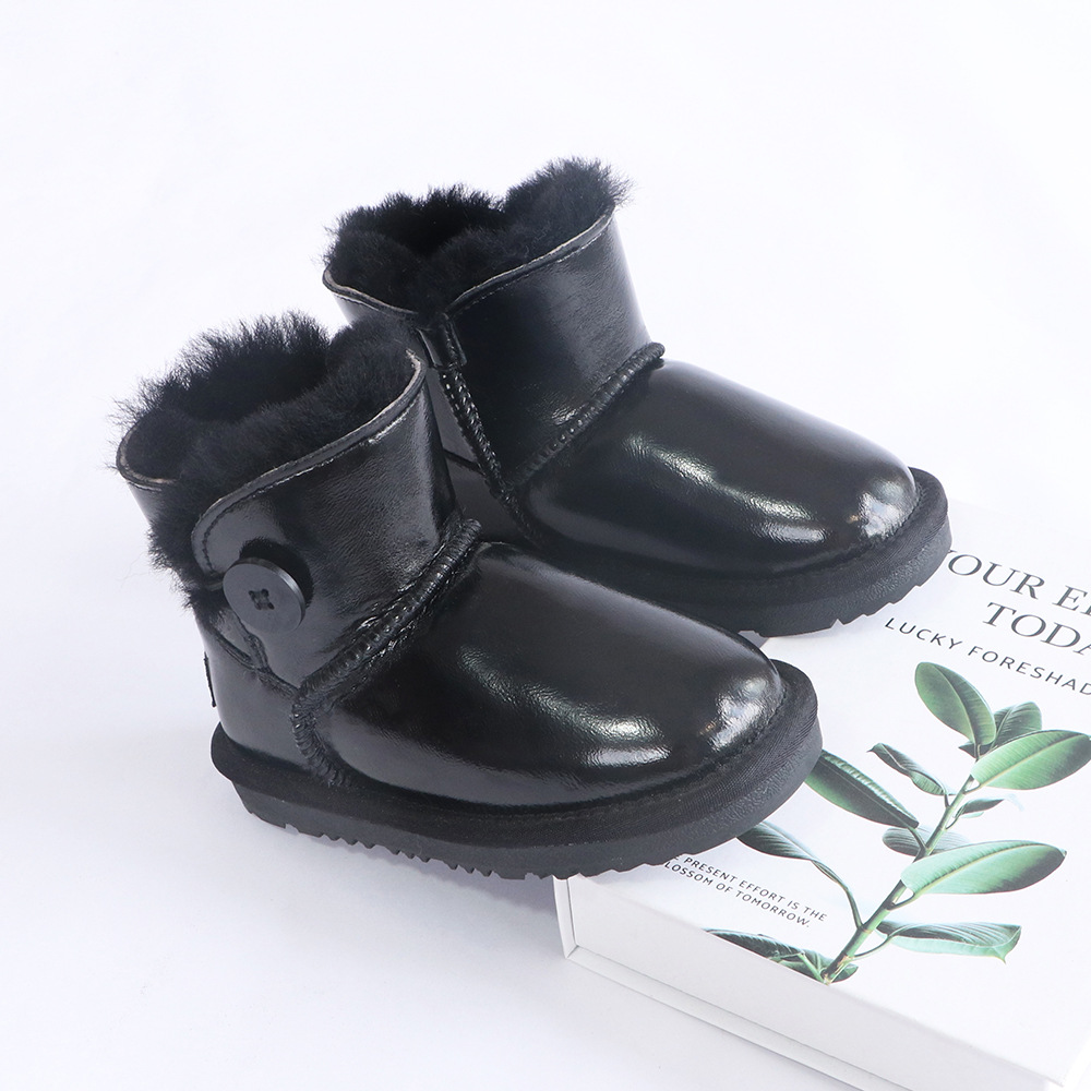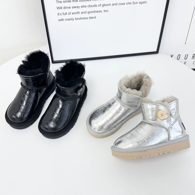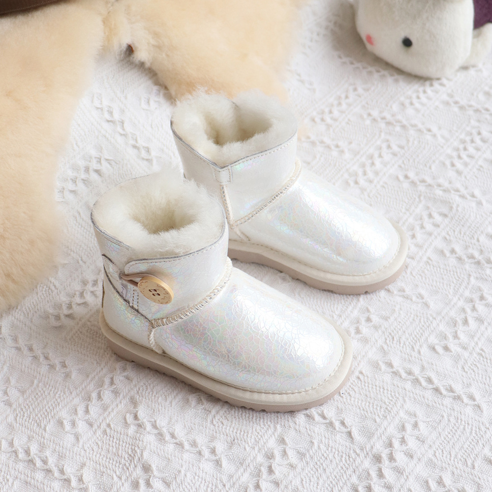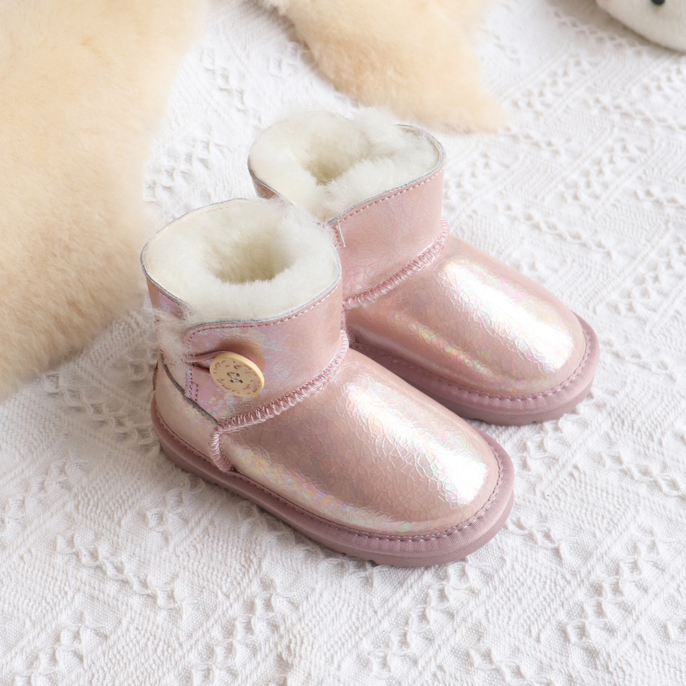 皮毛一体儿童雪地靴低筒棉鞋防水防污防滑牛筋底童鞋亲子款新款