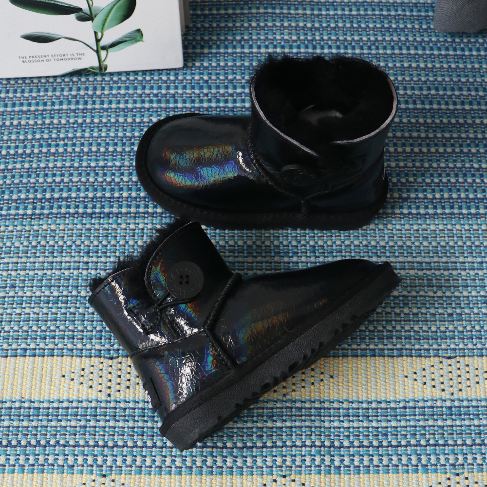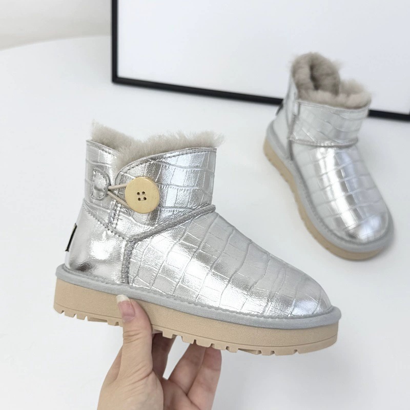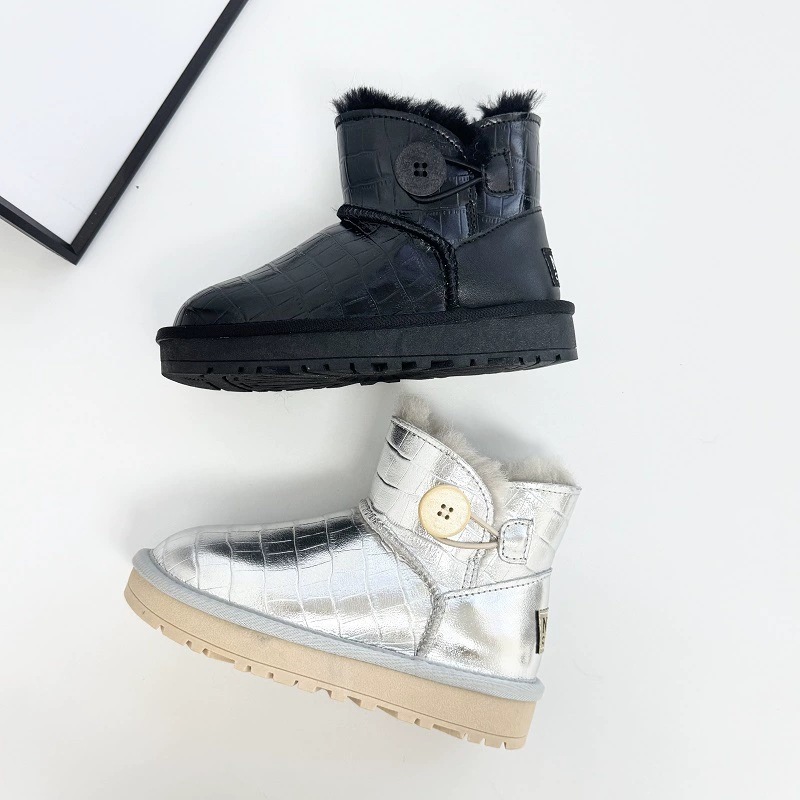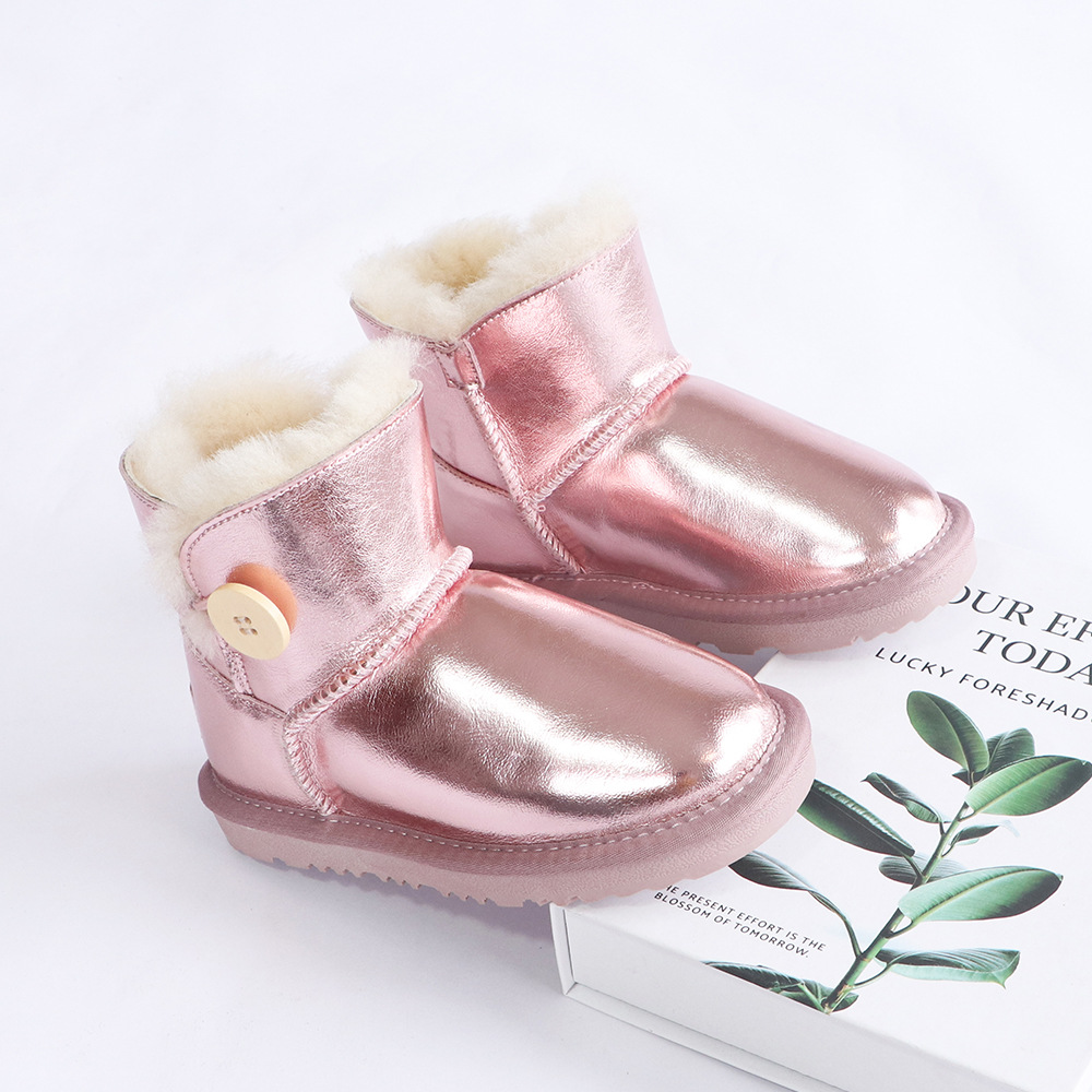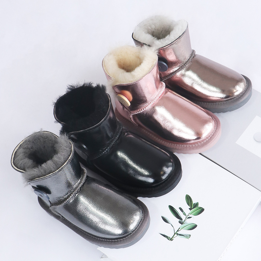 皮毛一体儿童雪地靴低筒棉鞋防水防污防滑牛筋底童鞋亲子款新款