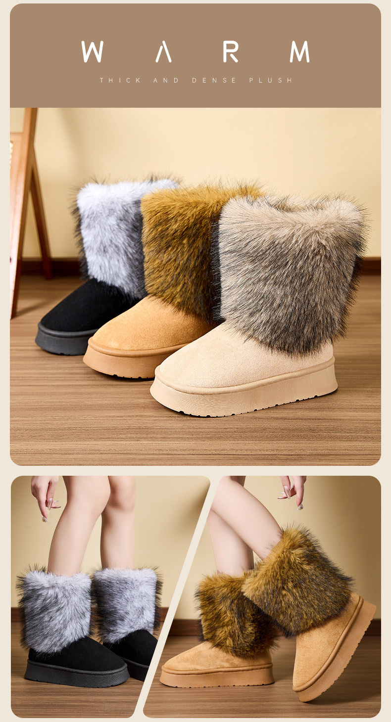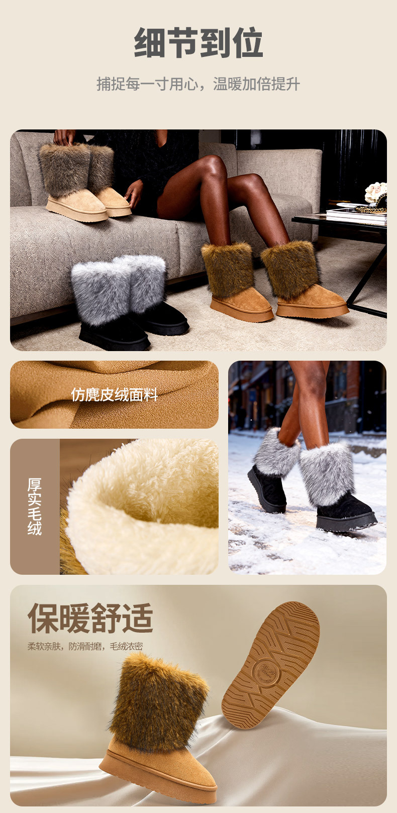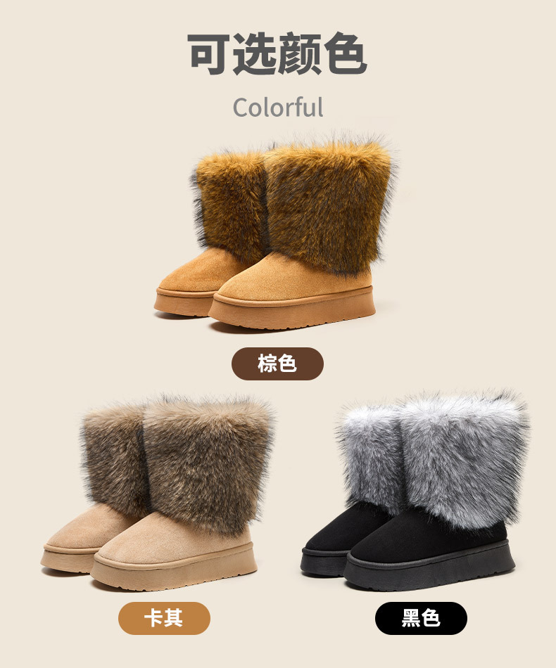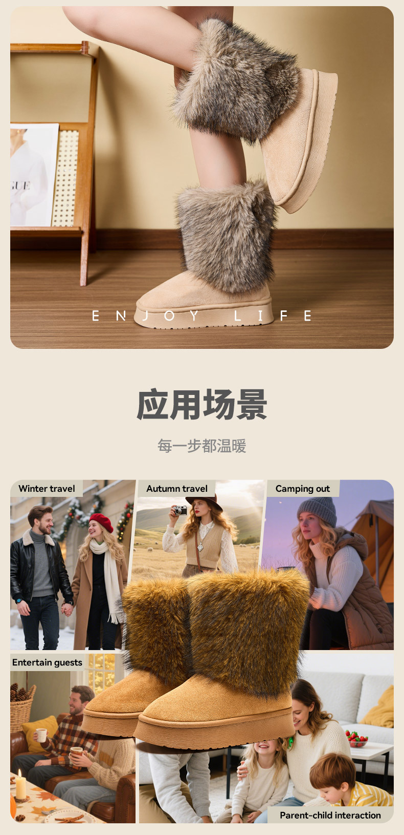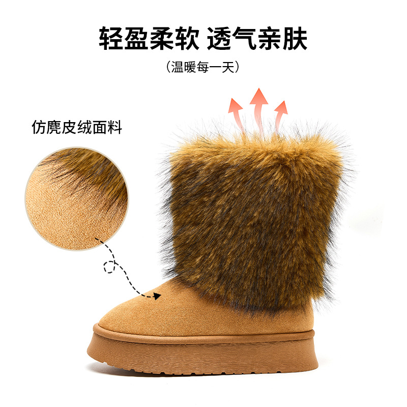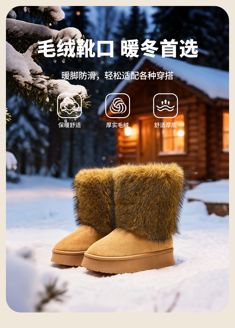 2025跨境新款厚底长毛棉拖鞋保暖秋冬季外穿中筒雪地靴女外贸批发