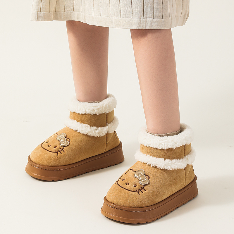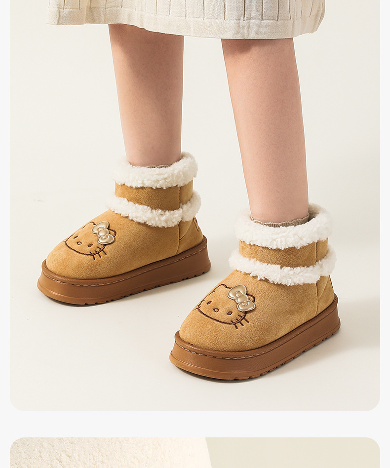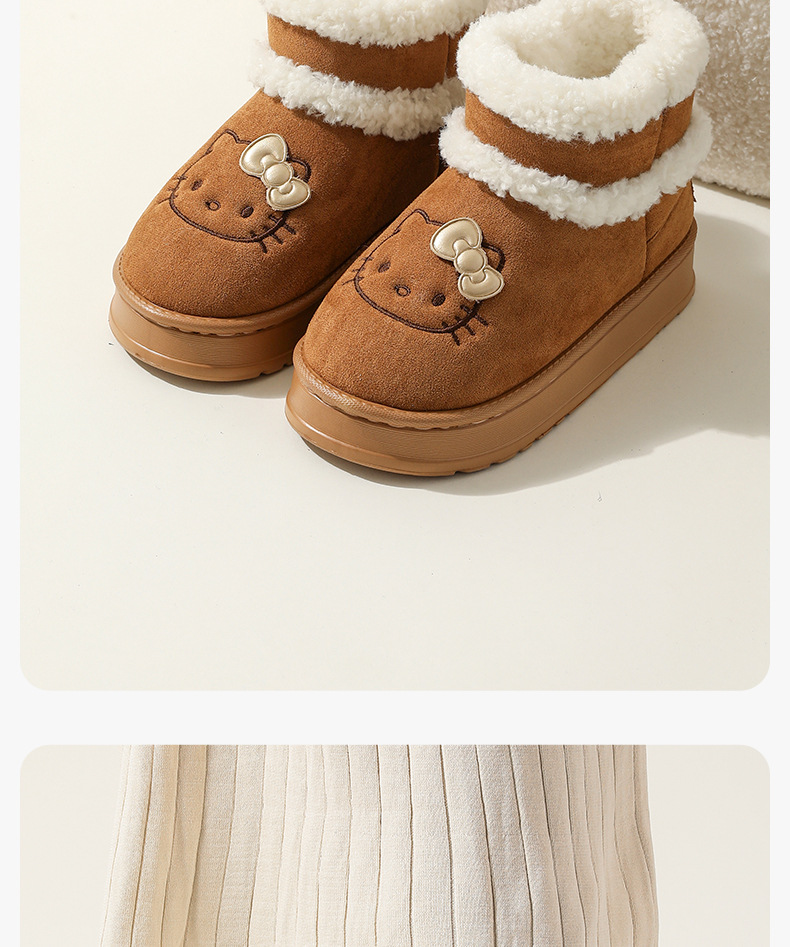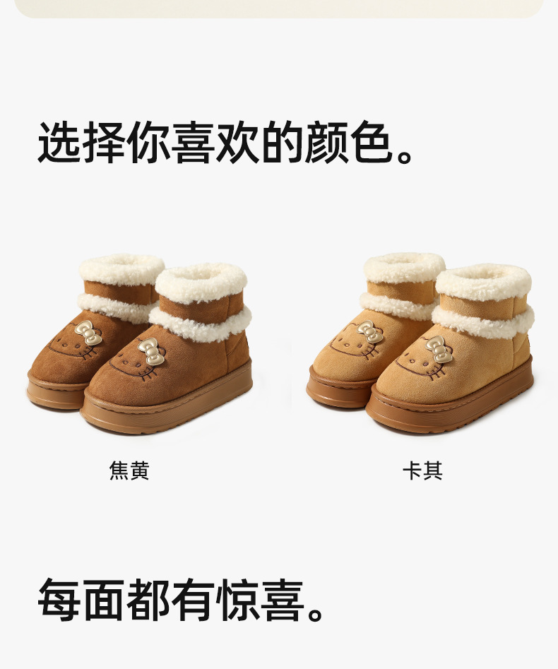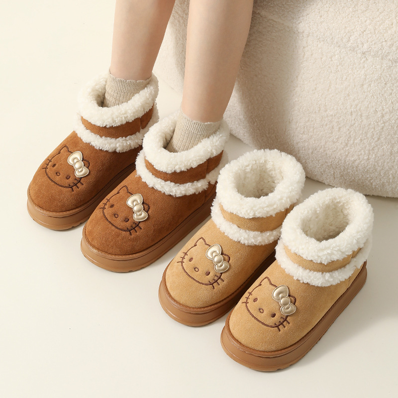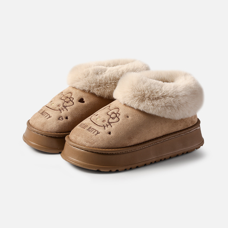 三丽鸥雪地靴女冬天外穿厚底增高防滑棉鞋居家加绒保暖毛绒毛拖鞋