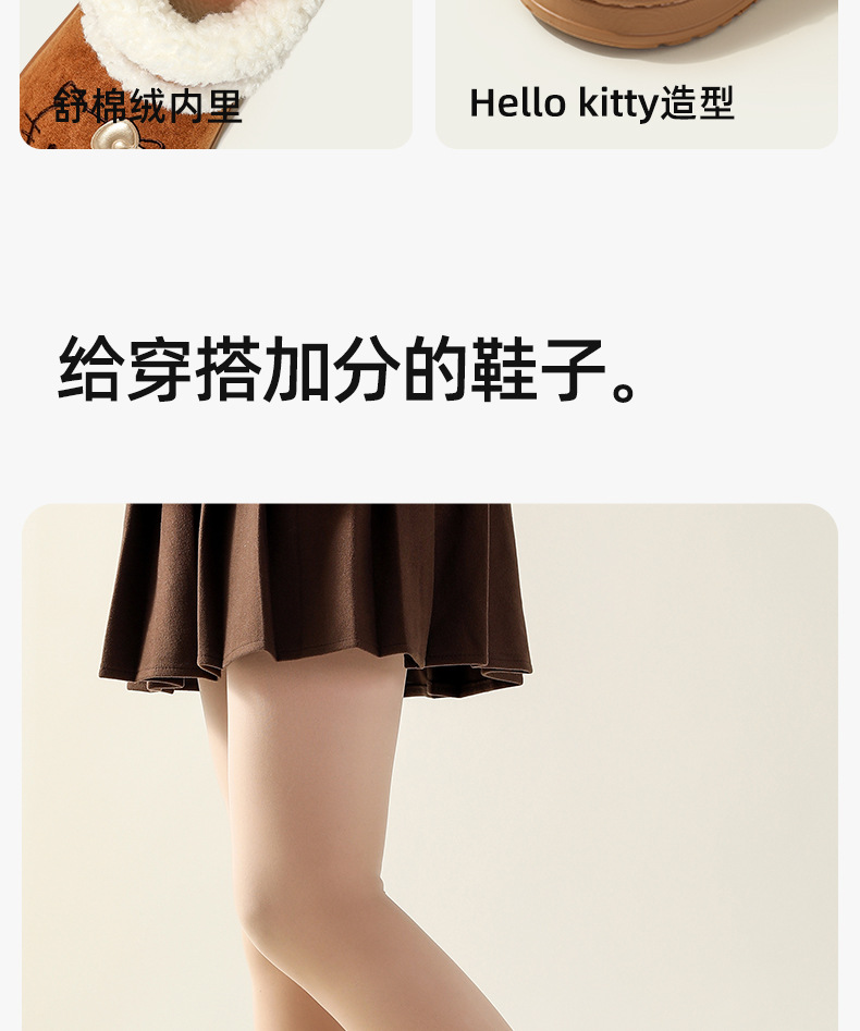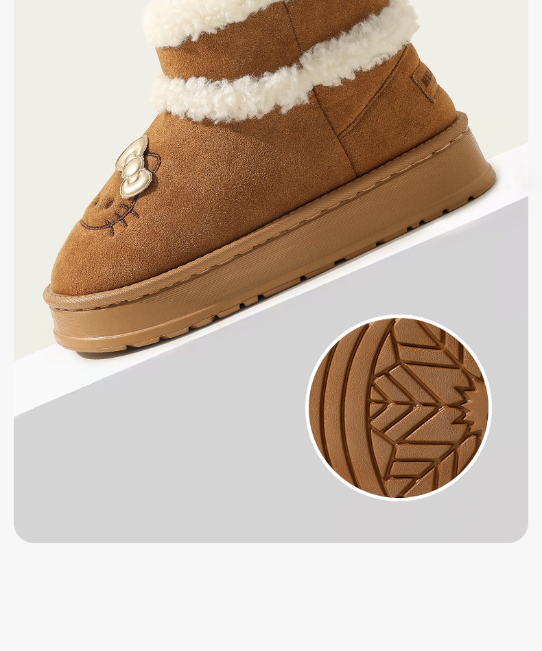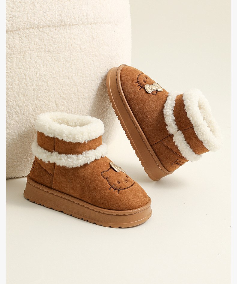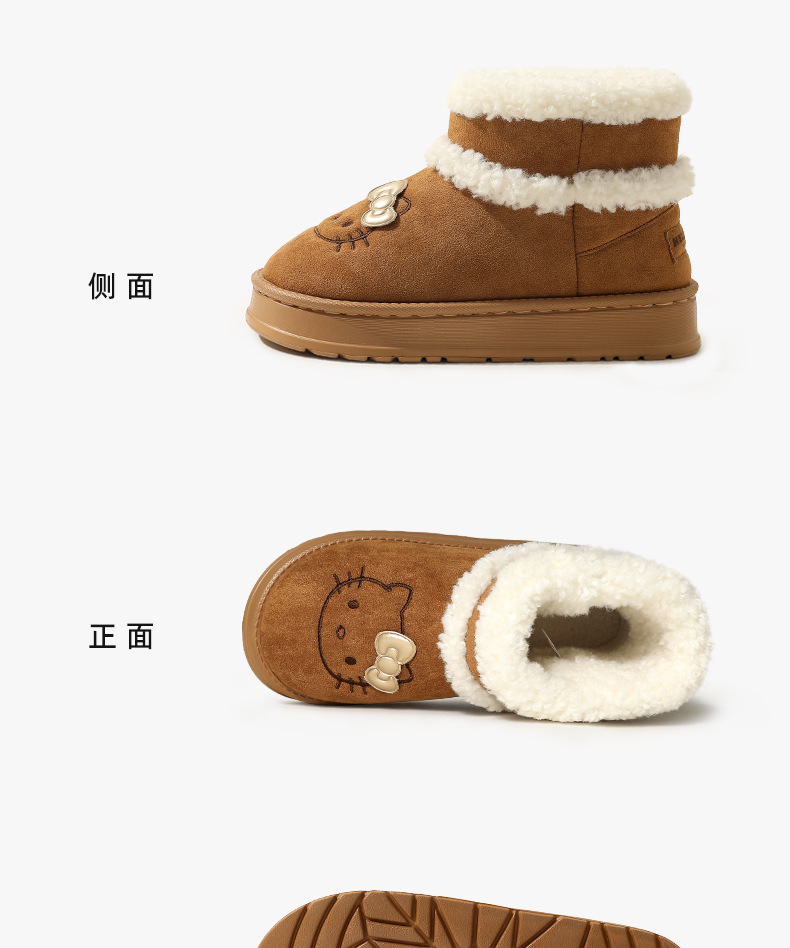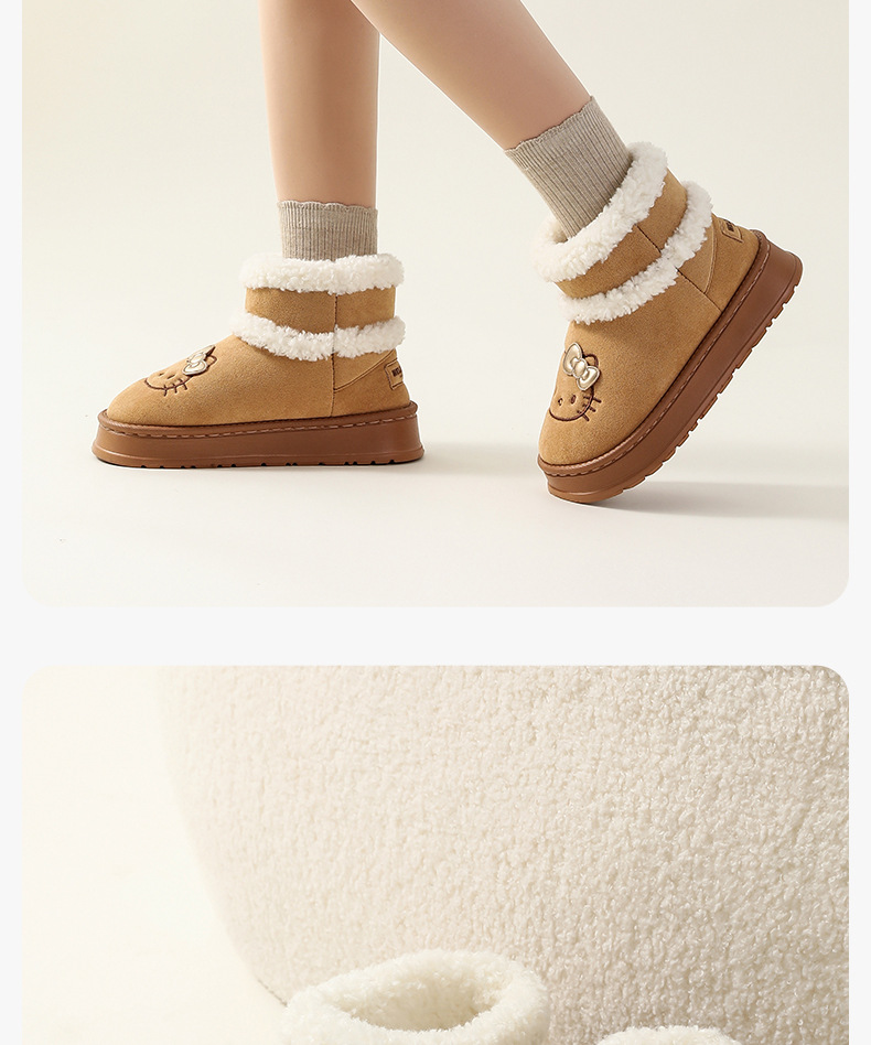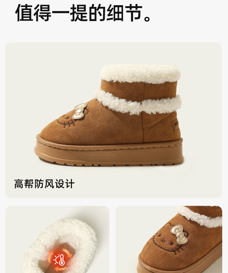 三丽鸥雪地靴女冬天外穿厚底增高防滑棉鞋居家加绒保暖毛绒毛拖鞋