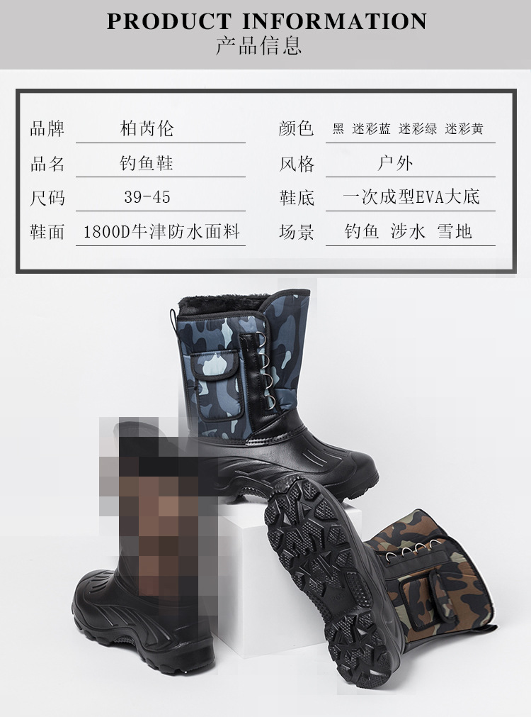 跨境防水大码外贸户外雪地靴男女同款加绒加厚保暖抗寒冬季钓鱼鞋