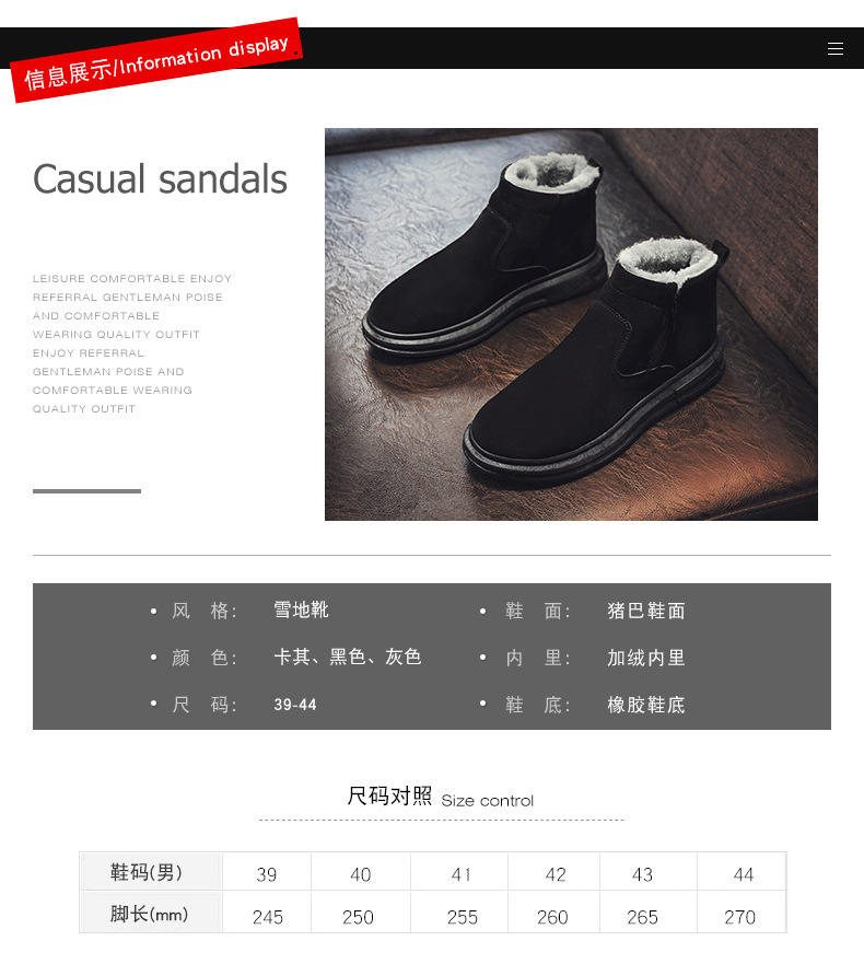 冬季保暖男鞋新款加绒加厚雪地靴防寒防滑棉鞋户外保暖一脚蹬男鞋