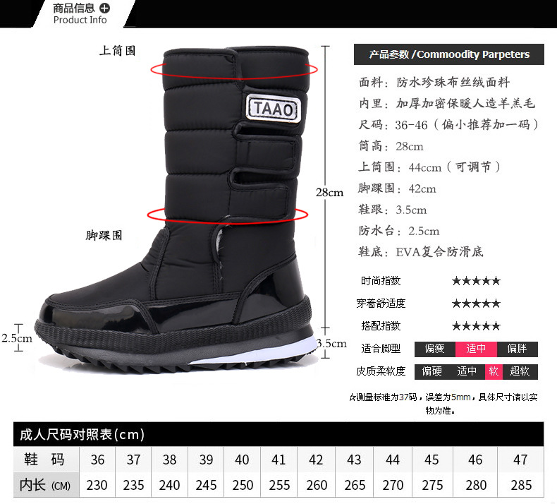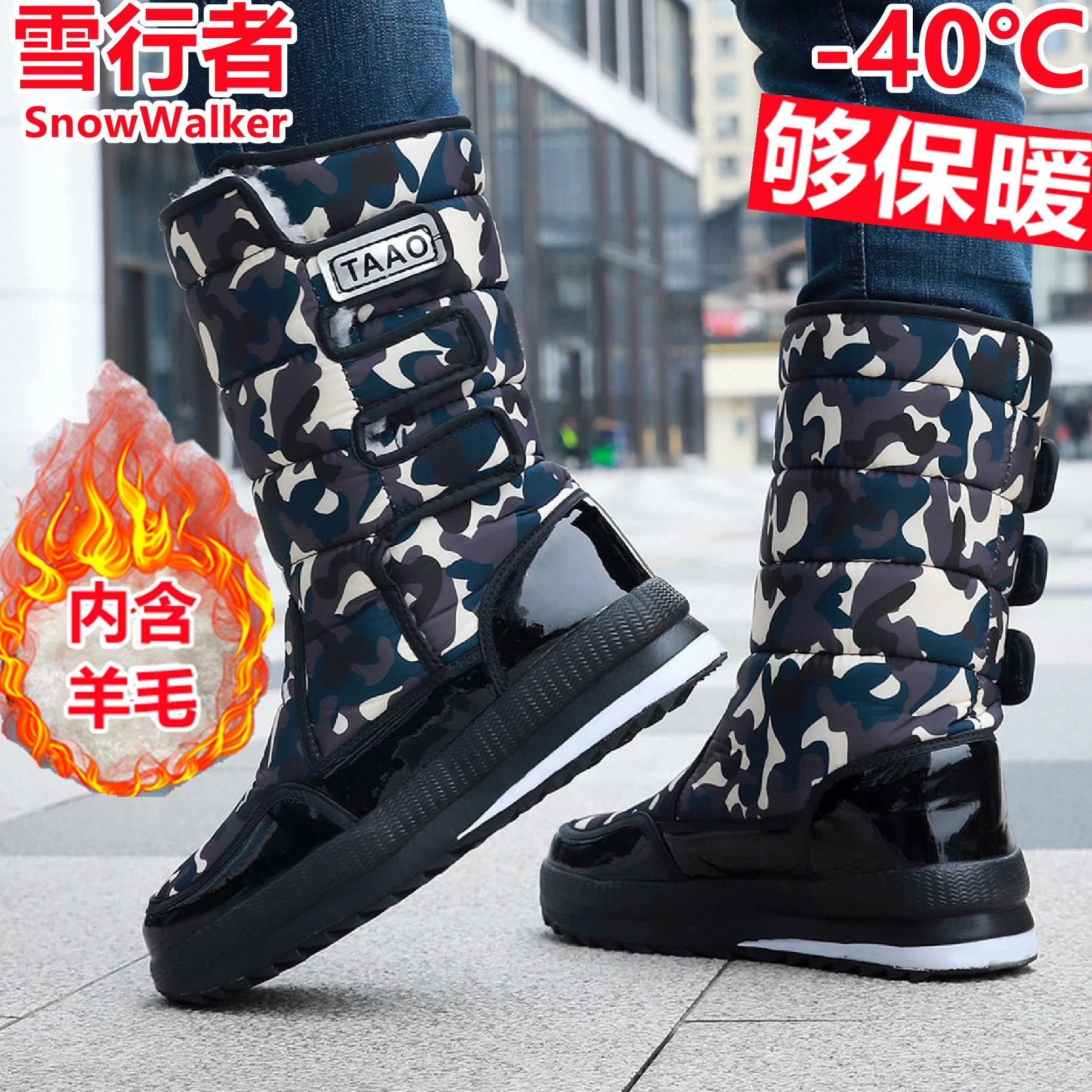 外贸东北雪地靴情侣男女棉鞋保暖冬季加绒加厚户外高帮防雪水防滑