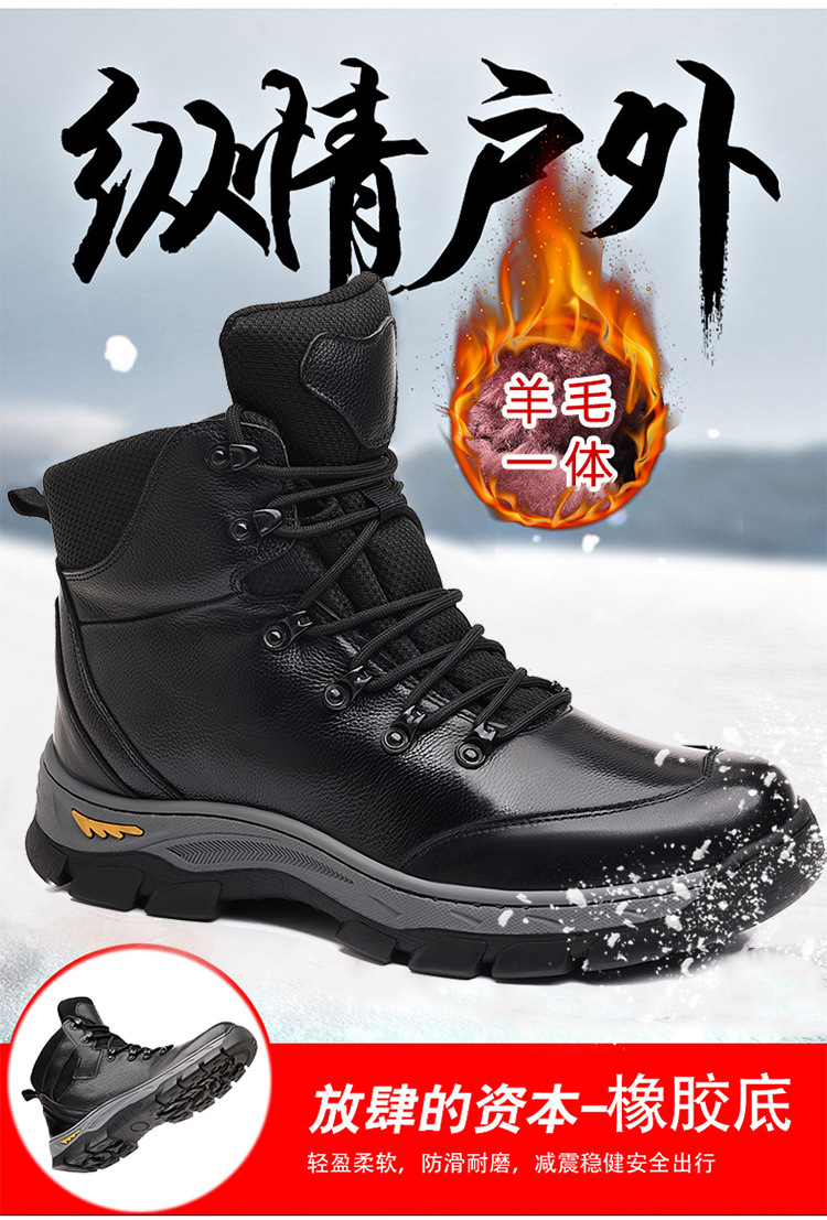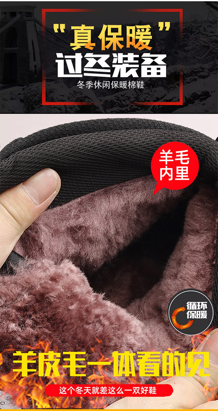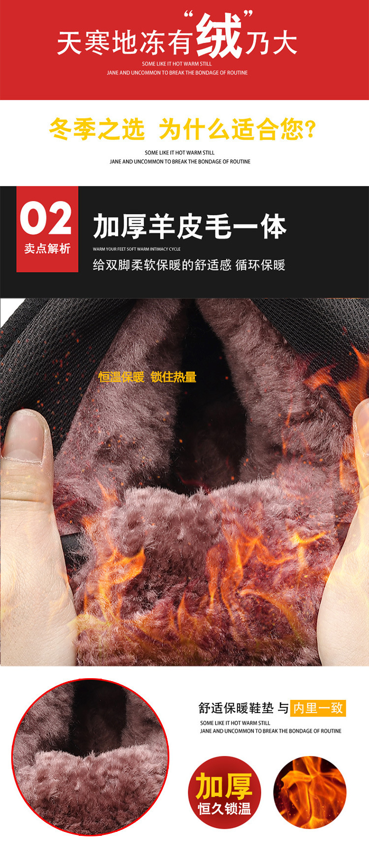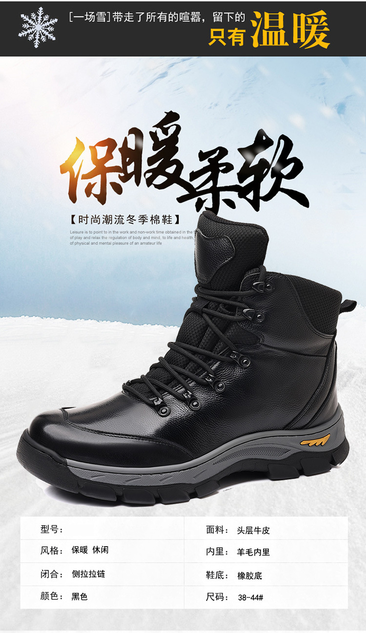 冬季棉鞋男士头层牛皮保暖加绒加厚皮毛一体棉皮鞋休闲高帮雪地靴