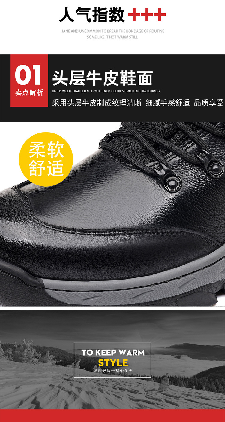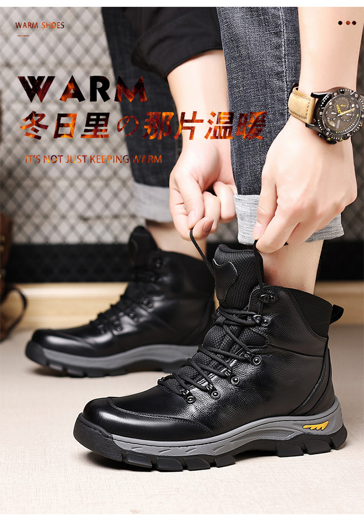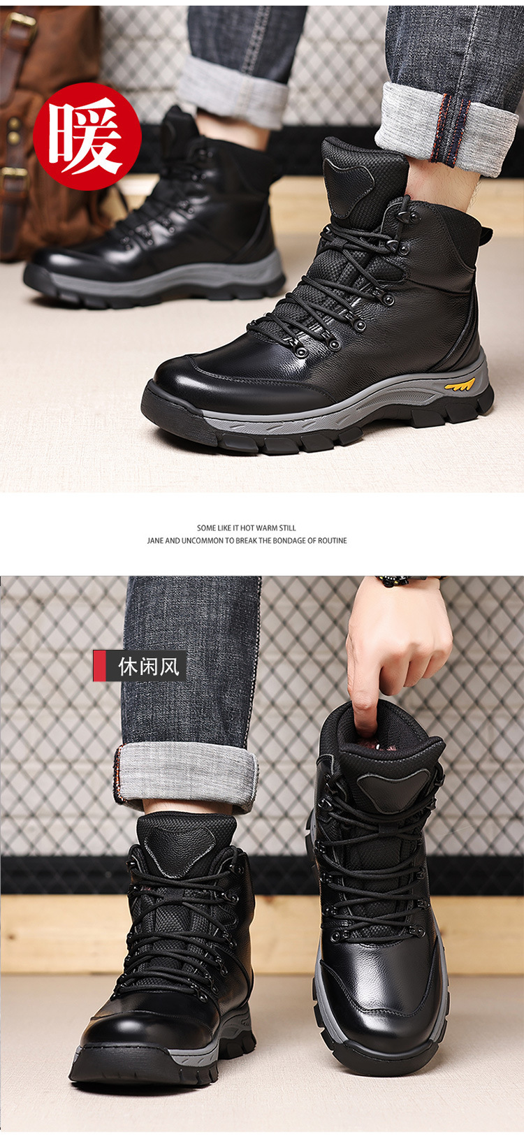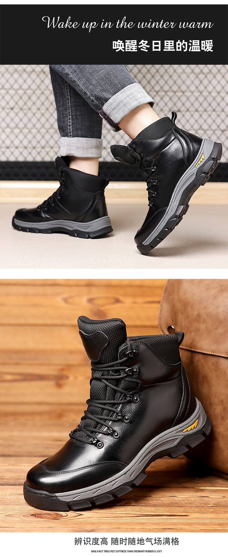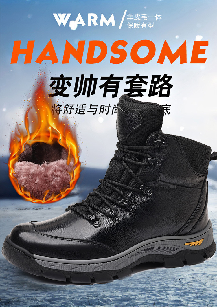 冬季棉鞋男士头层牛皮保暖加绒加厚皮毛一体棉皮鞋休闲高帮雪地靴