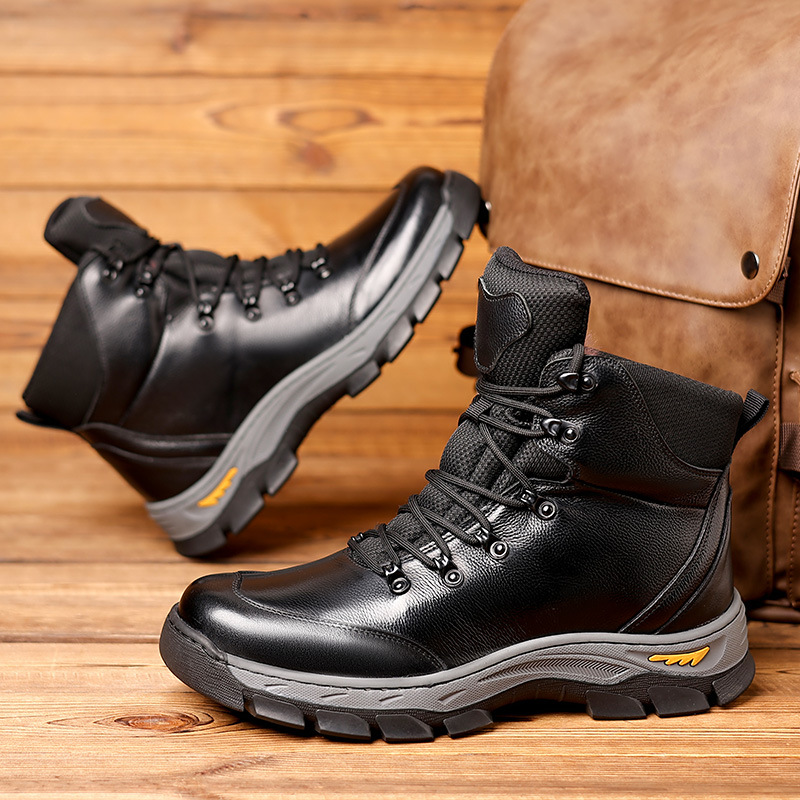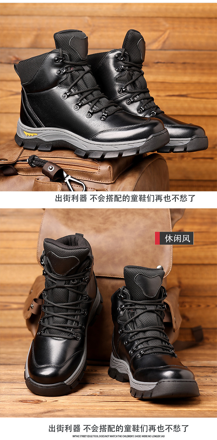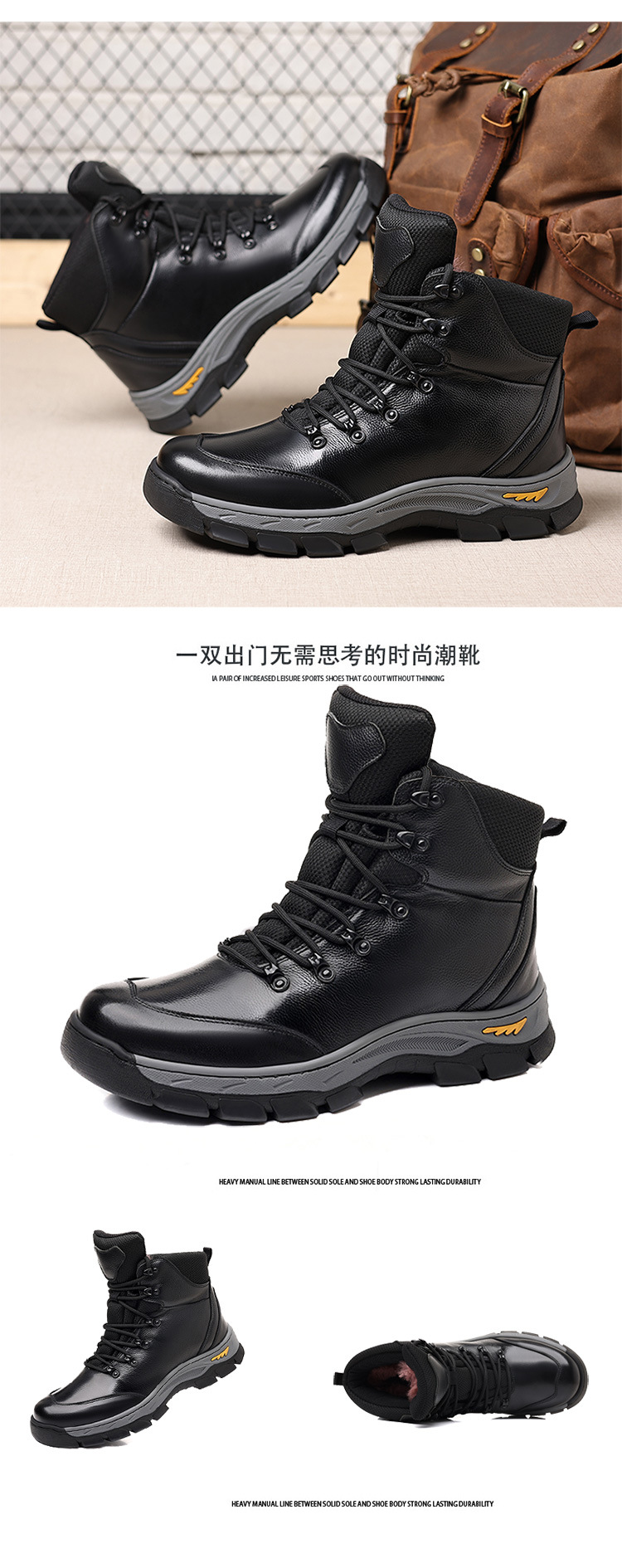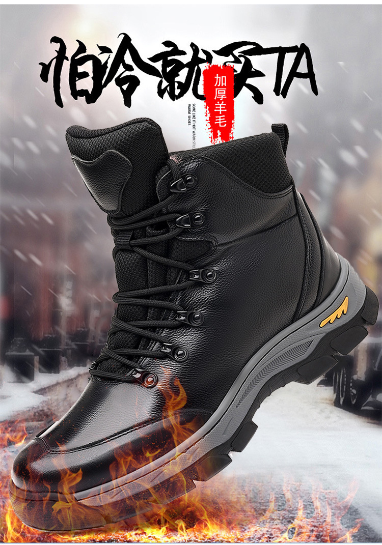 冬季棉鞋男士头层牛皮保暖加绒加厚皮毛一体棉皮鞋休闲高帮雪地靴