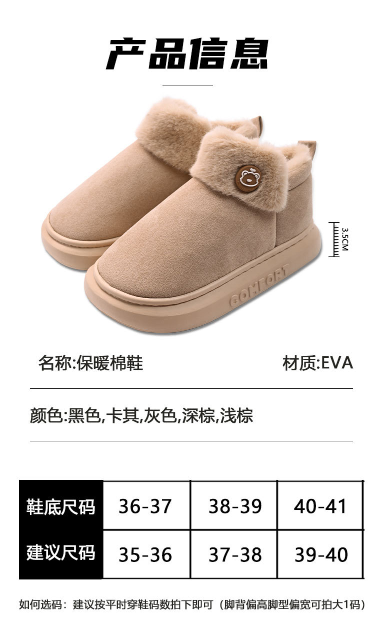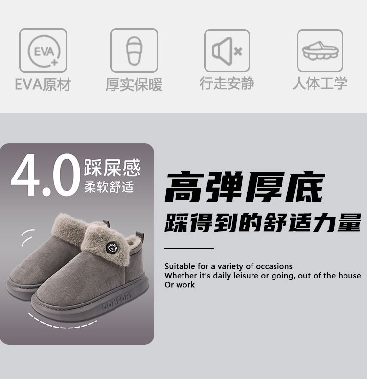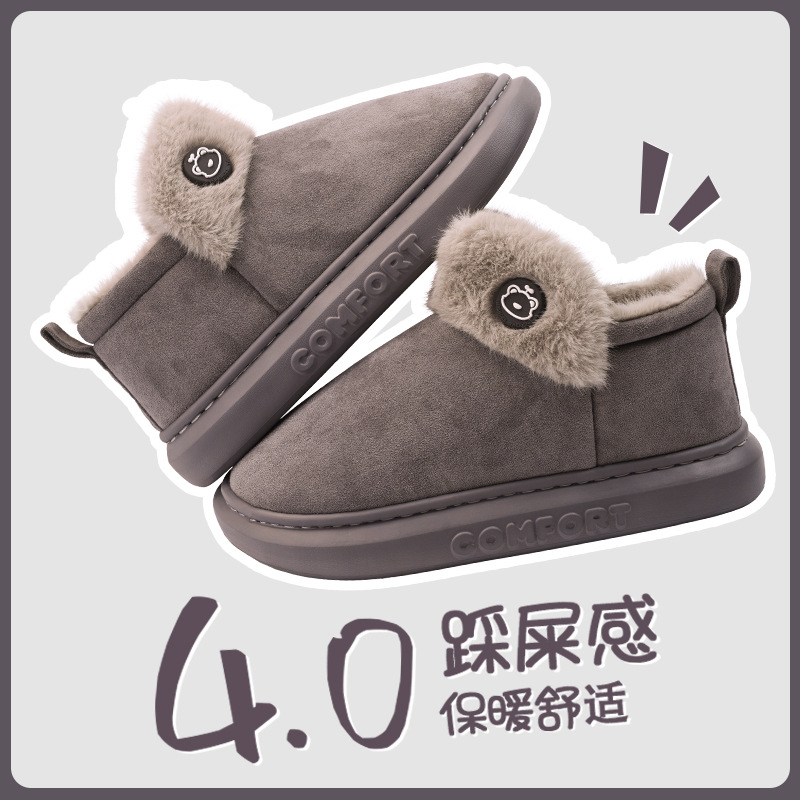 厚底棉拖鞋女冬季加绒毛保暖情侣家居室内包跟雪地靴棉鞋男士外穿