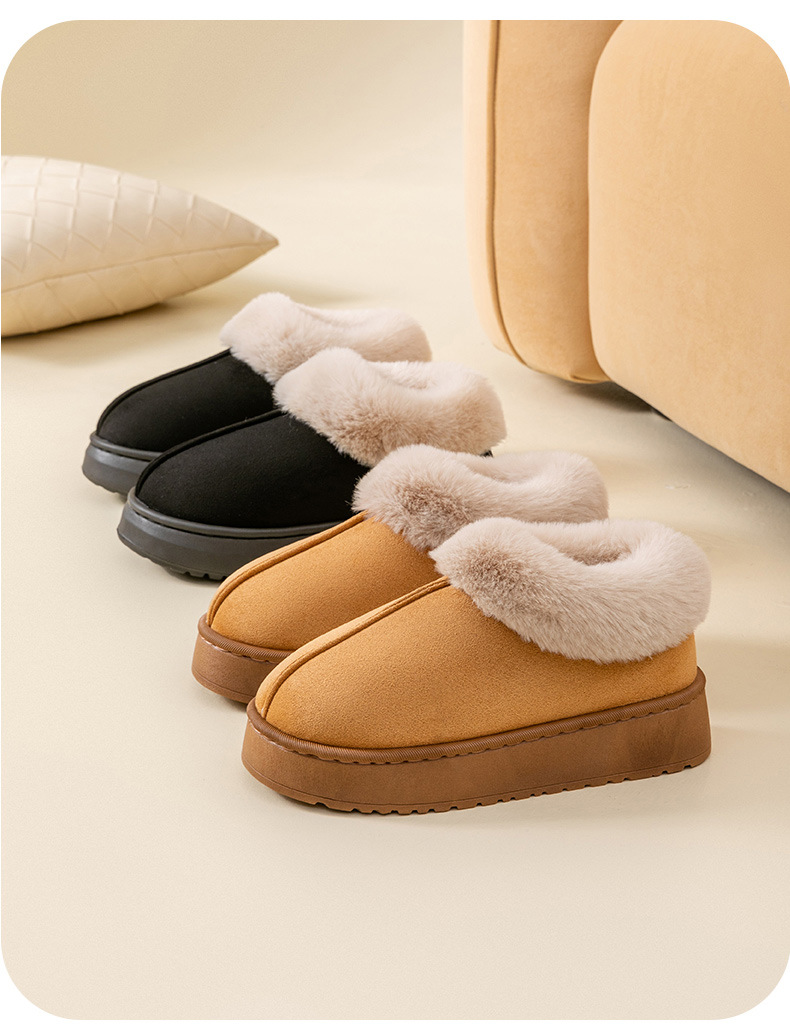 防滑厚底棉拖鞋女外穿包跟保暖雪地靴家居情侣靴子秋冬季加绒棉鞋