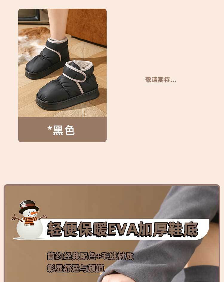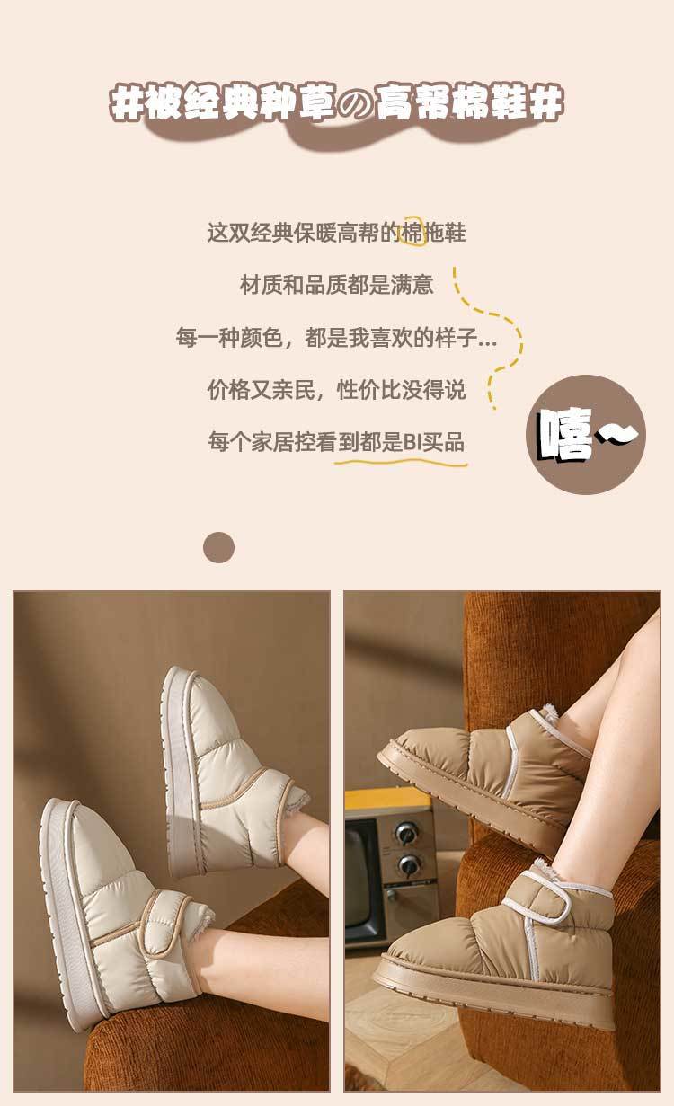 高帮棉拖鞋冬季女防水羽绒布包跟加厚加绒保暖极寒外穿雪地靴棉鞋