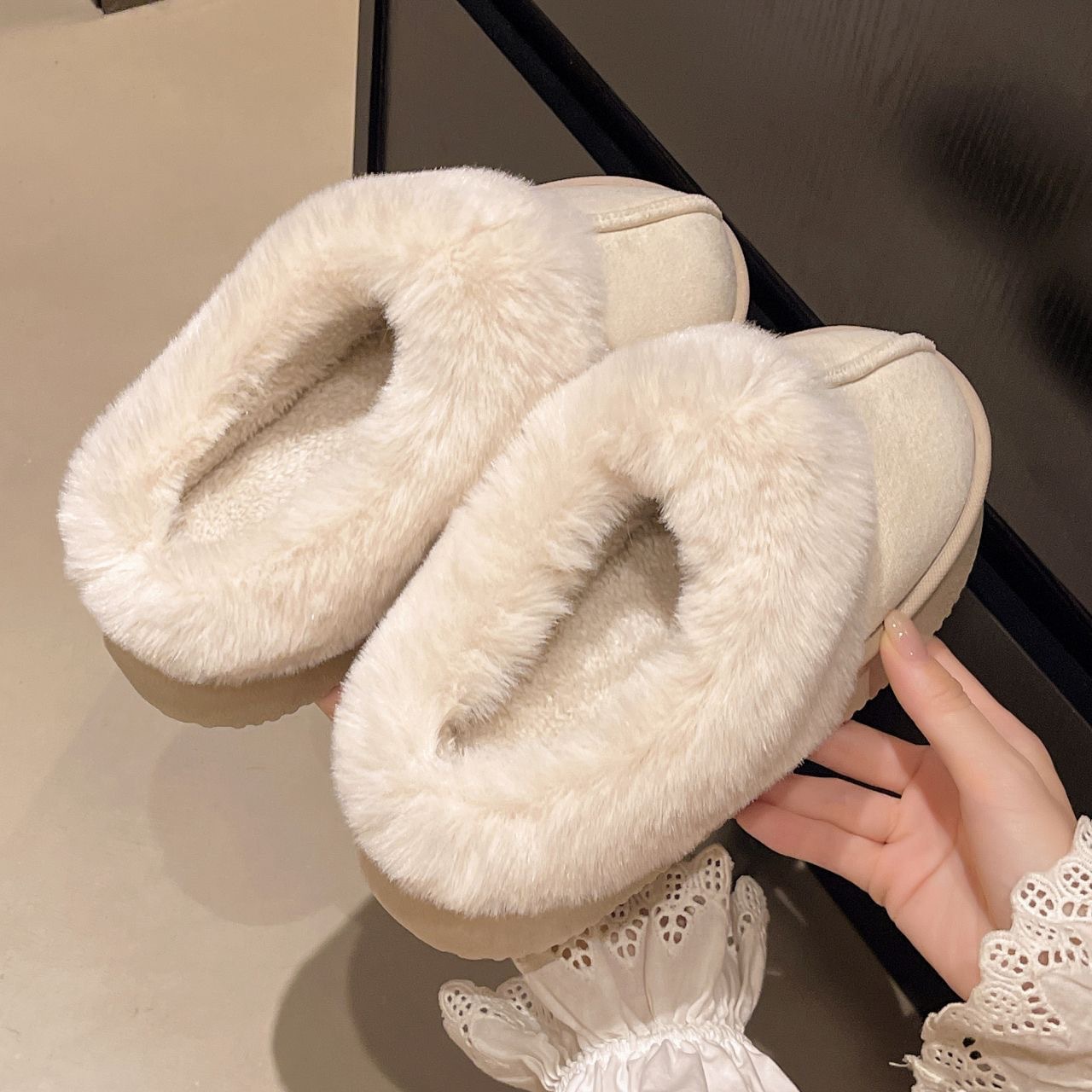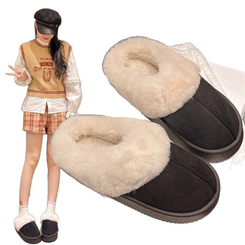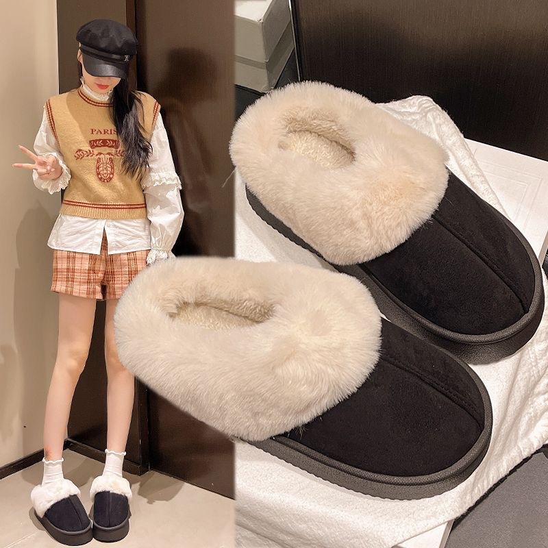 厚底棉拖鞋女士冬季2024新款时尚外穿保暖加绒加厚毛毛拖鞋雪地靴