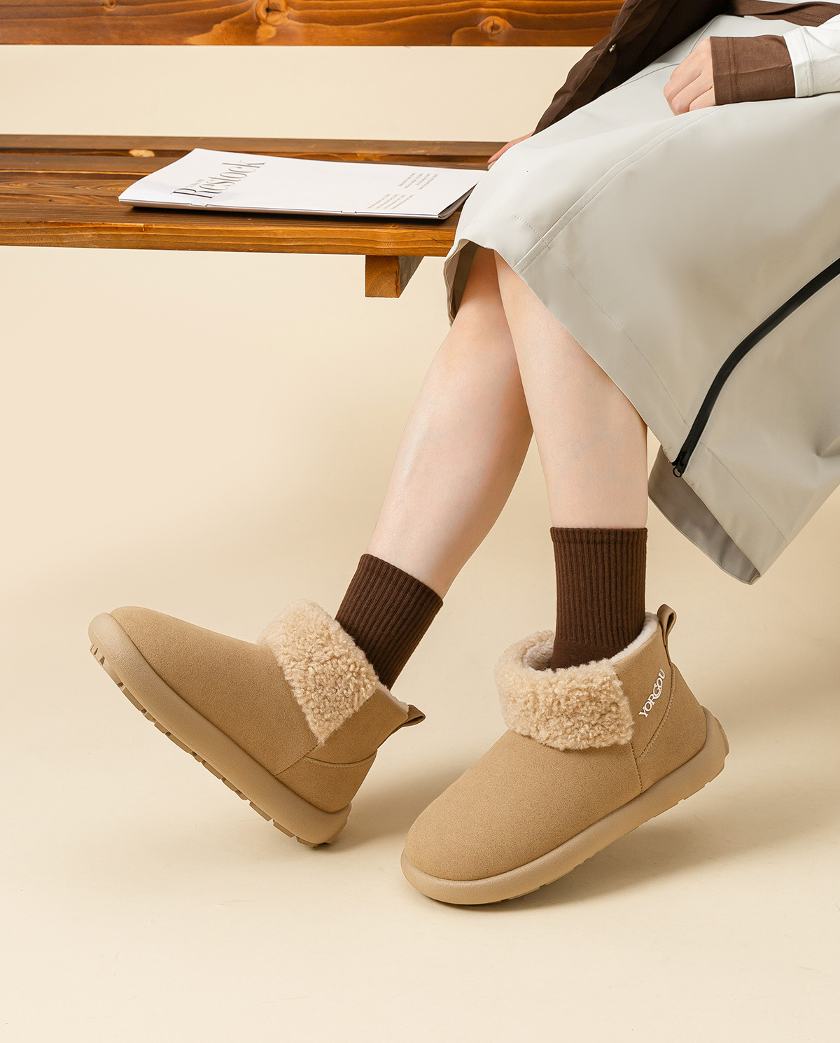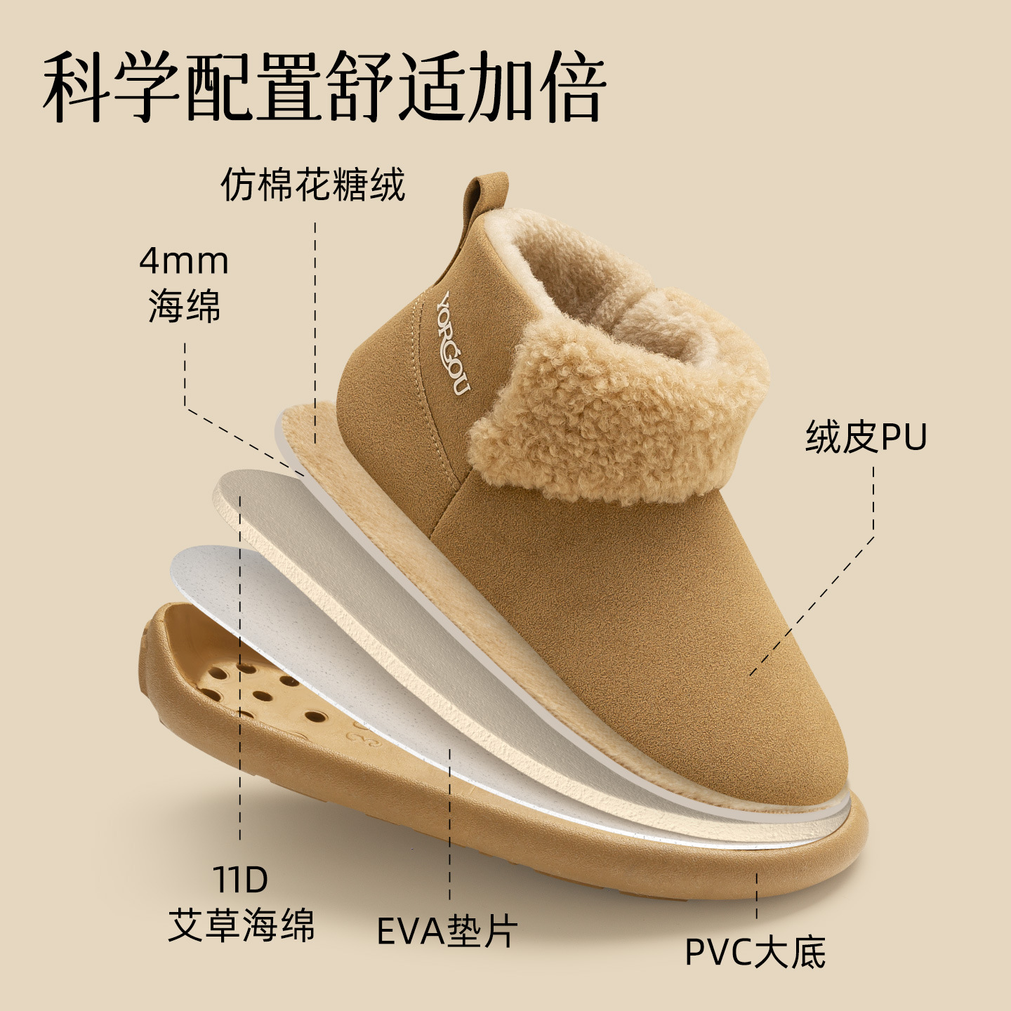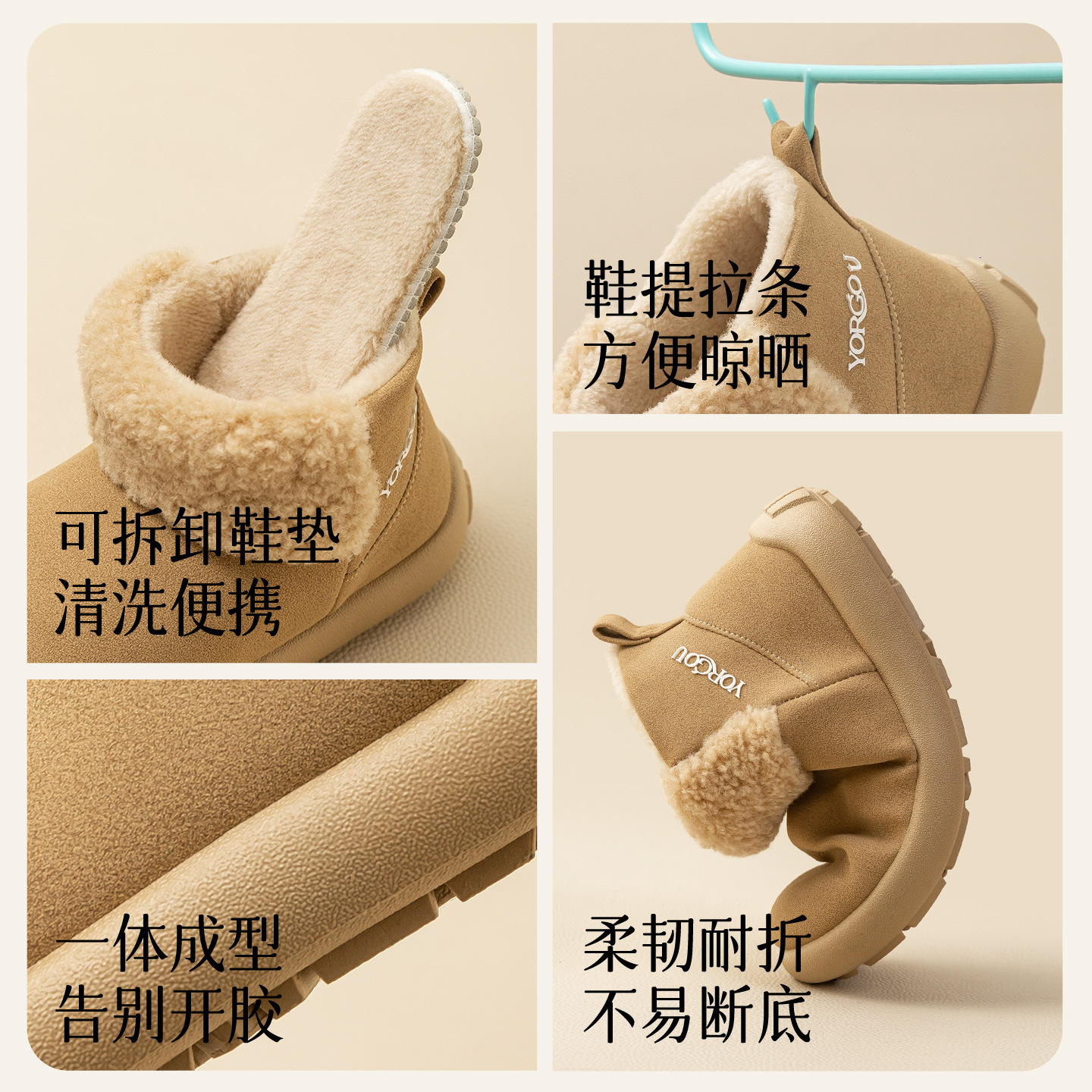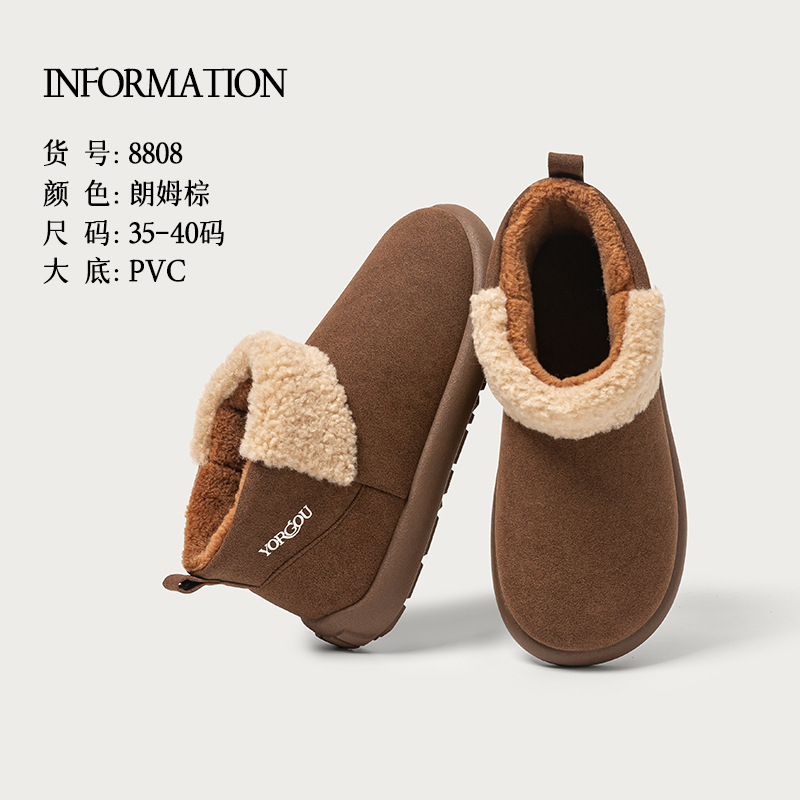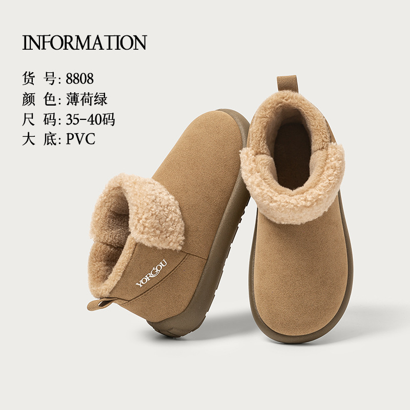 远港高包跟棉鞋女秋冬季可外穿棉拖鞋居家保暖加绒毛一脚蹬雪地靴