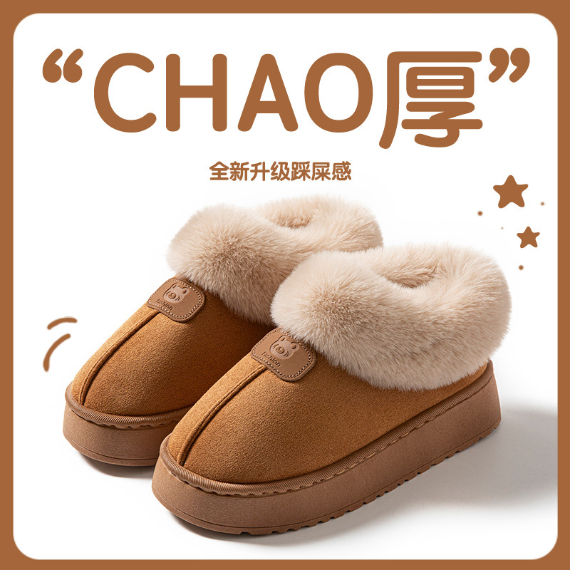 厚底外穿雪地靴棉鞋棉拖女居家棉拖鞋女秋冬季加绒工厂批发保暖鞋