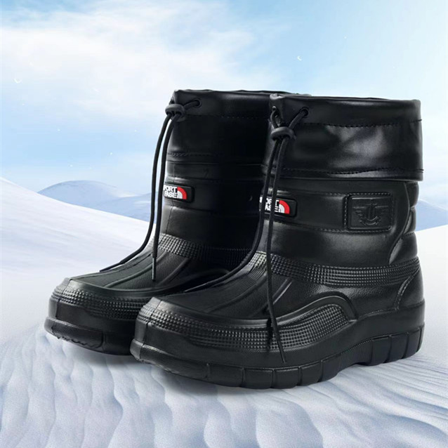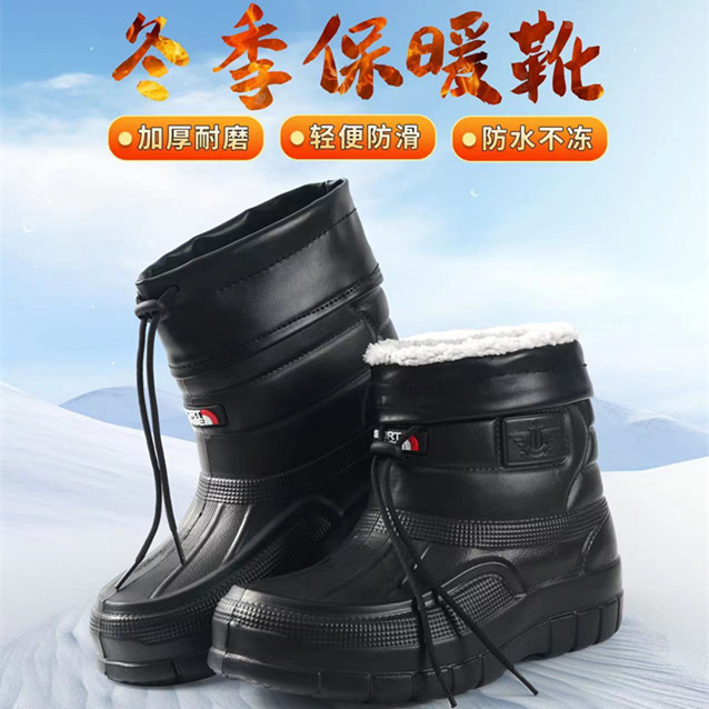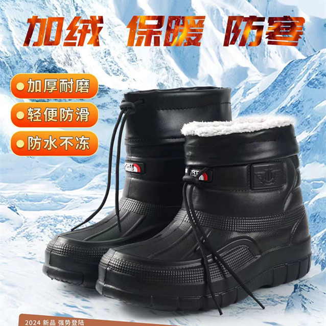 加绒男雪地靴棉鞋雨鞋洗衣厨房卫生工作EVA防水高帮棉鞋保暖雨靴