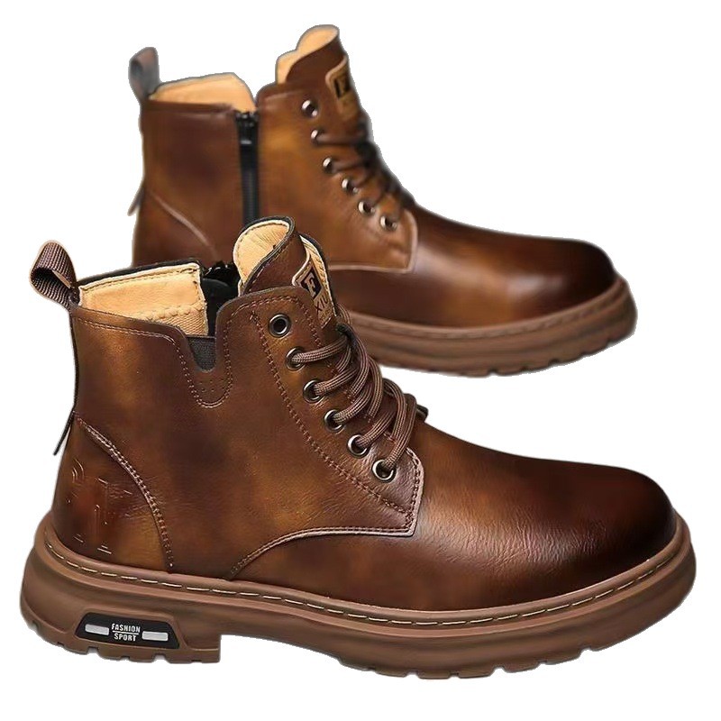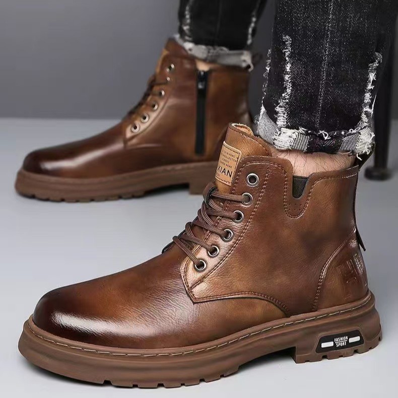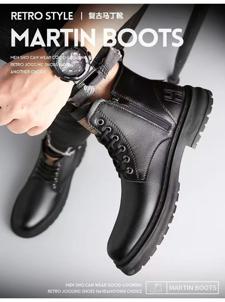 2025新款男鞋冬季加绒保暖棉鞋英伦风皮面休闲高帮马丁靴雪地靴男