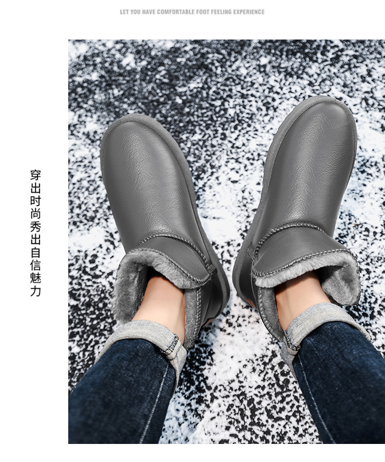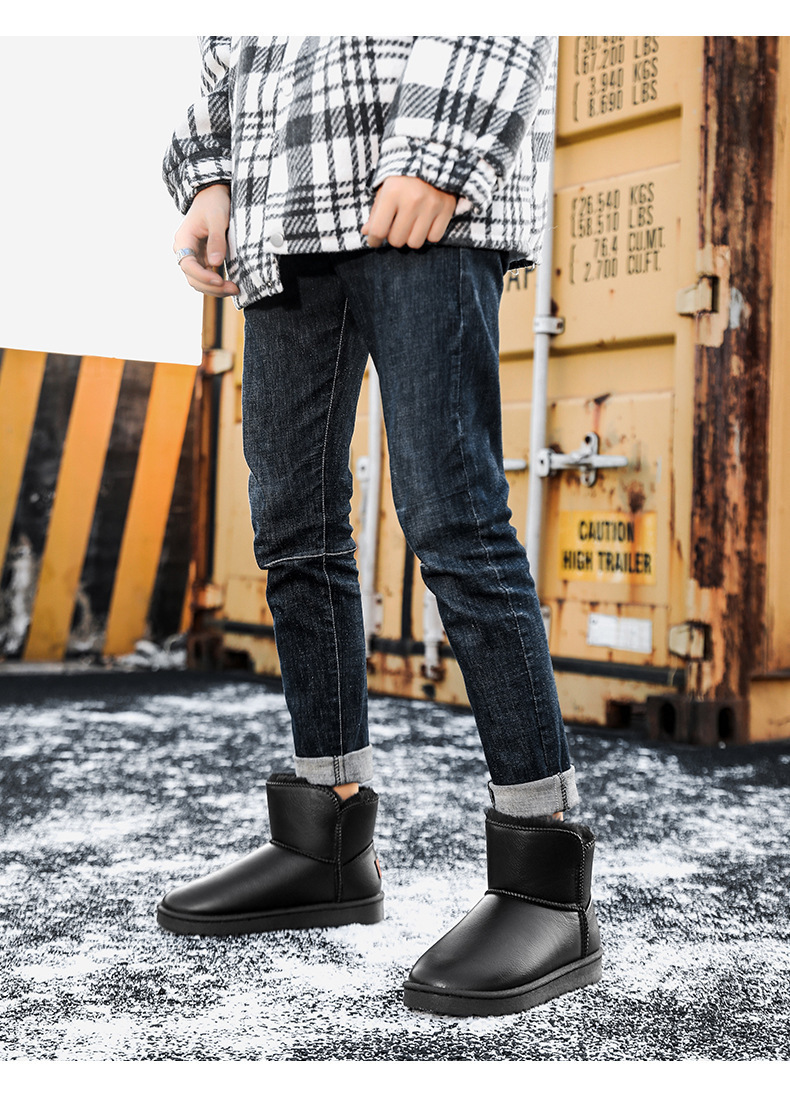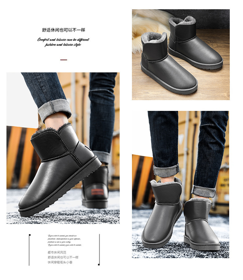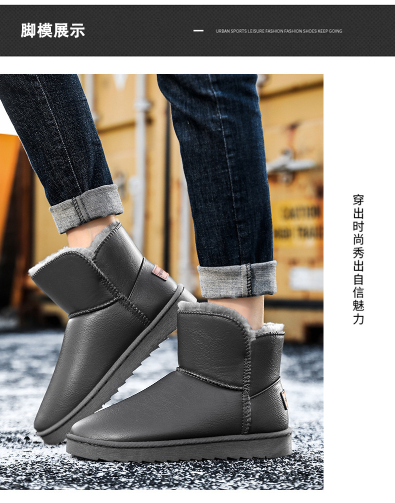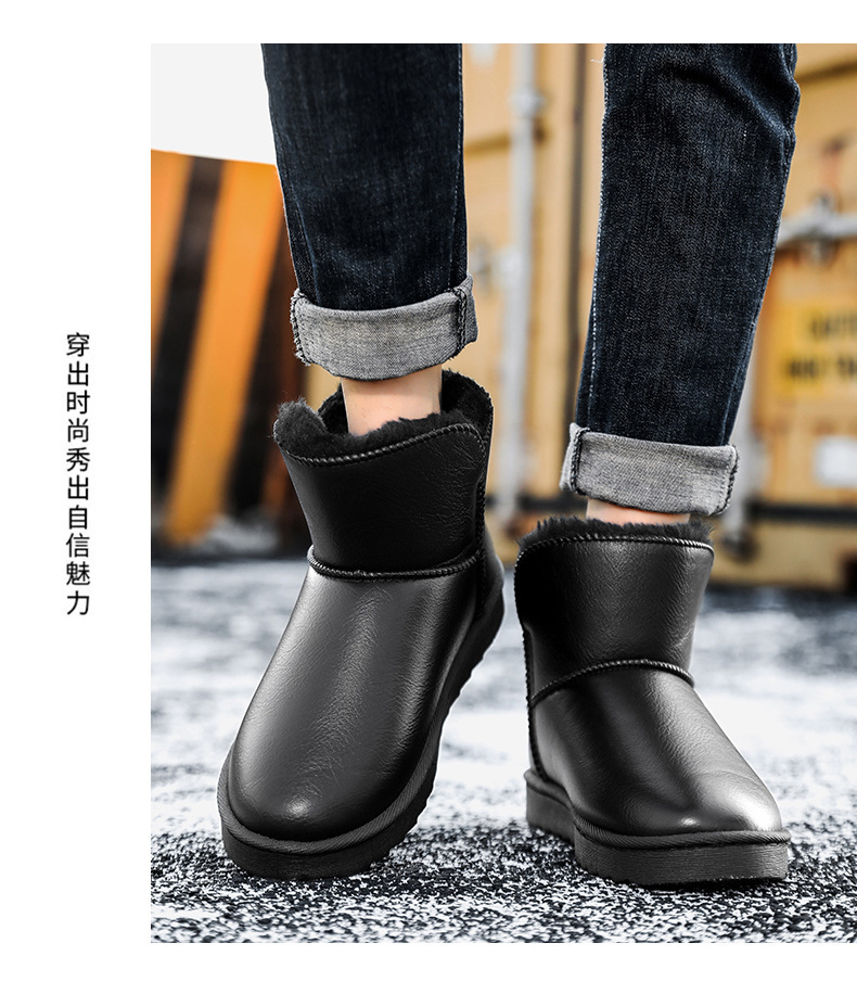 大码短筒雪地靴男冬季加绒保暖加厚棉鞋时尚皮毛一体防水面包鞋男
