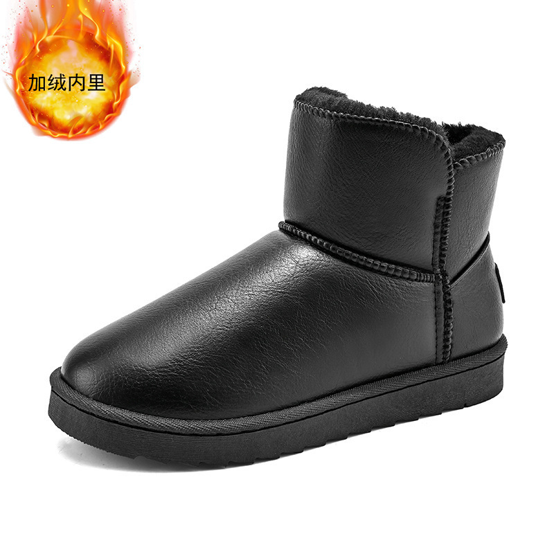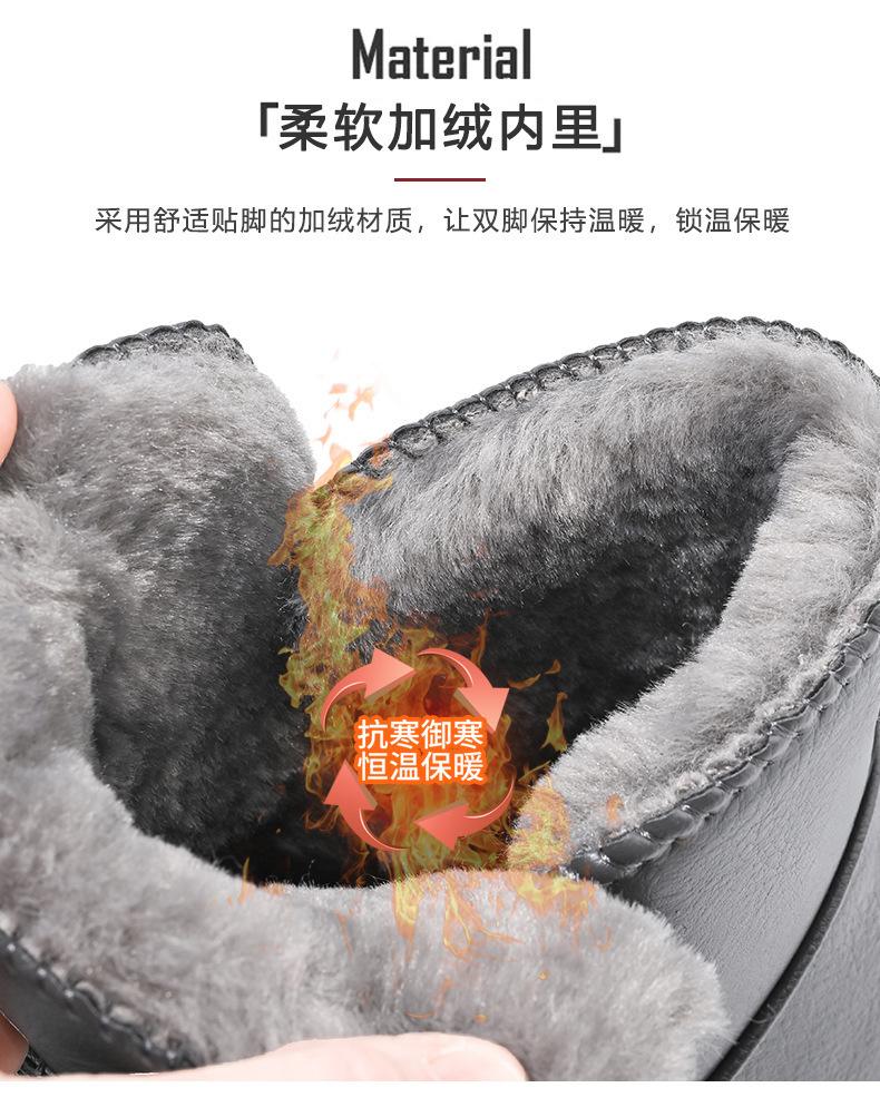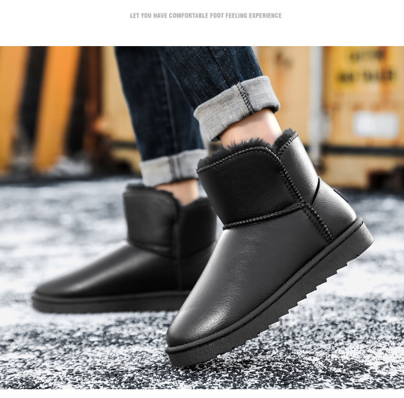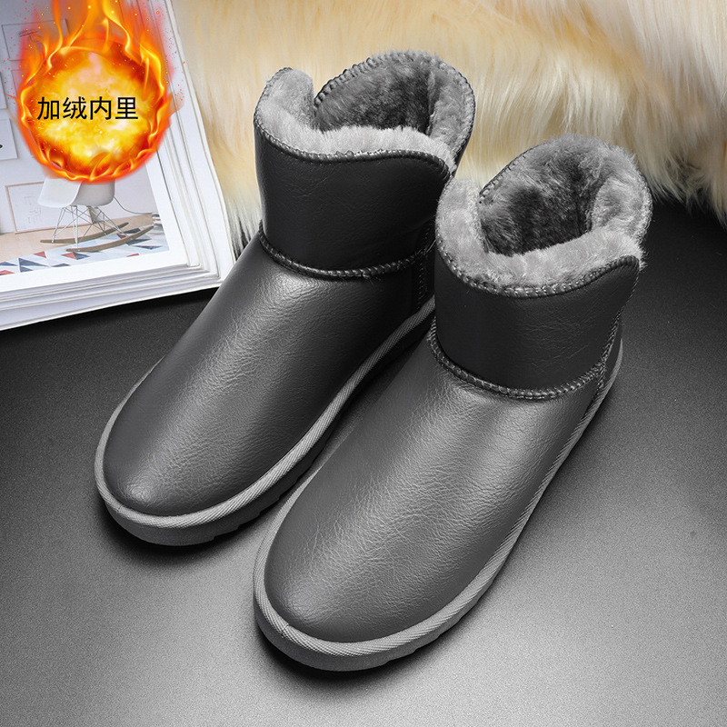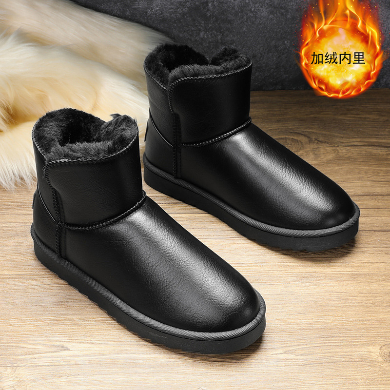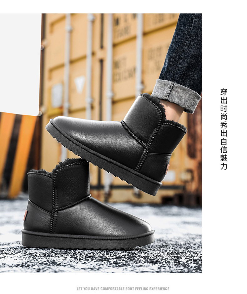 大码短筒雪地靴男冬季加绒保暖加厚棉鞋时尚皮毛一体防水面包鞋男