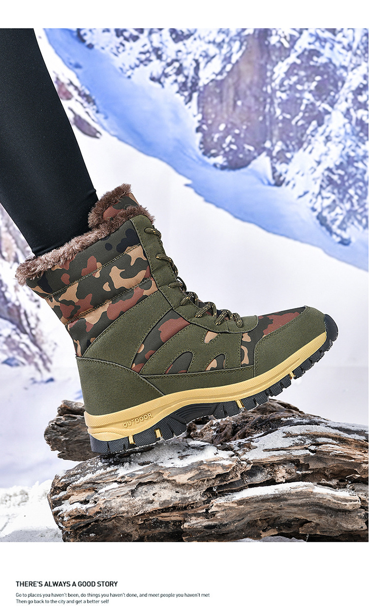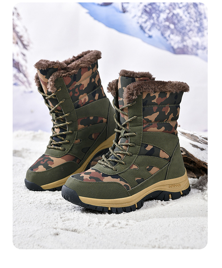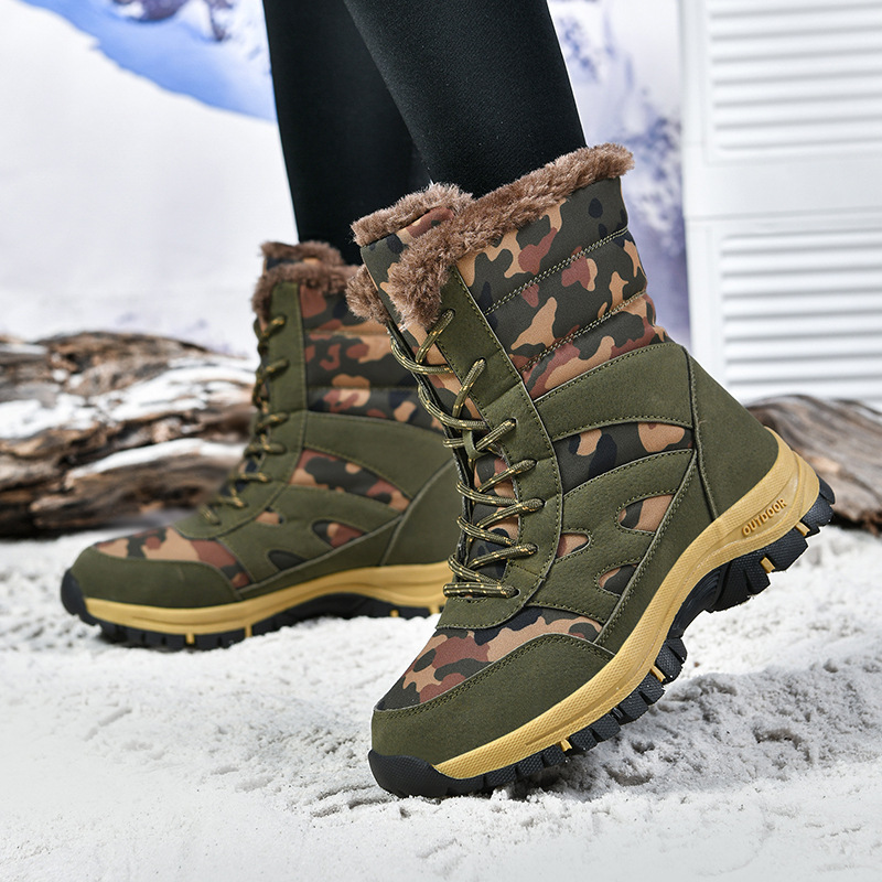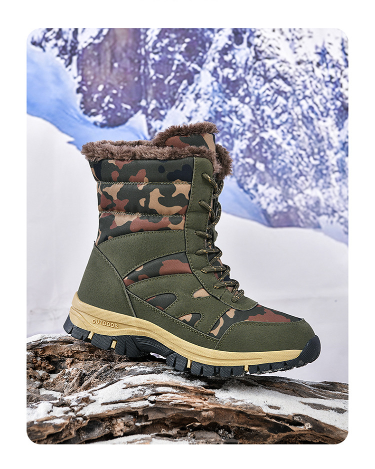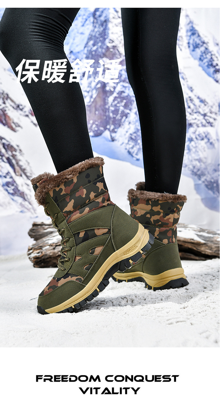 跨境大码厚底秋冬新款加绒保暖雪地靴户外军绿色迷彩高帮男棉鞋子