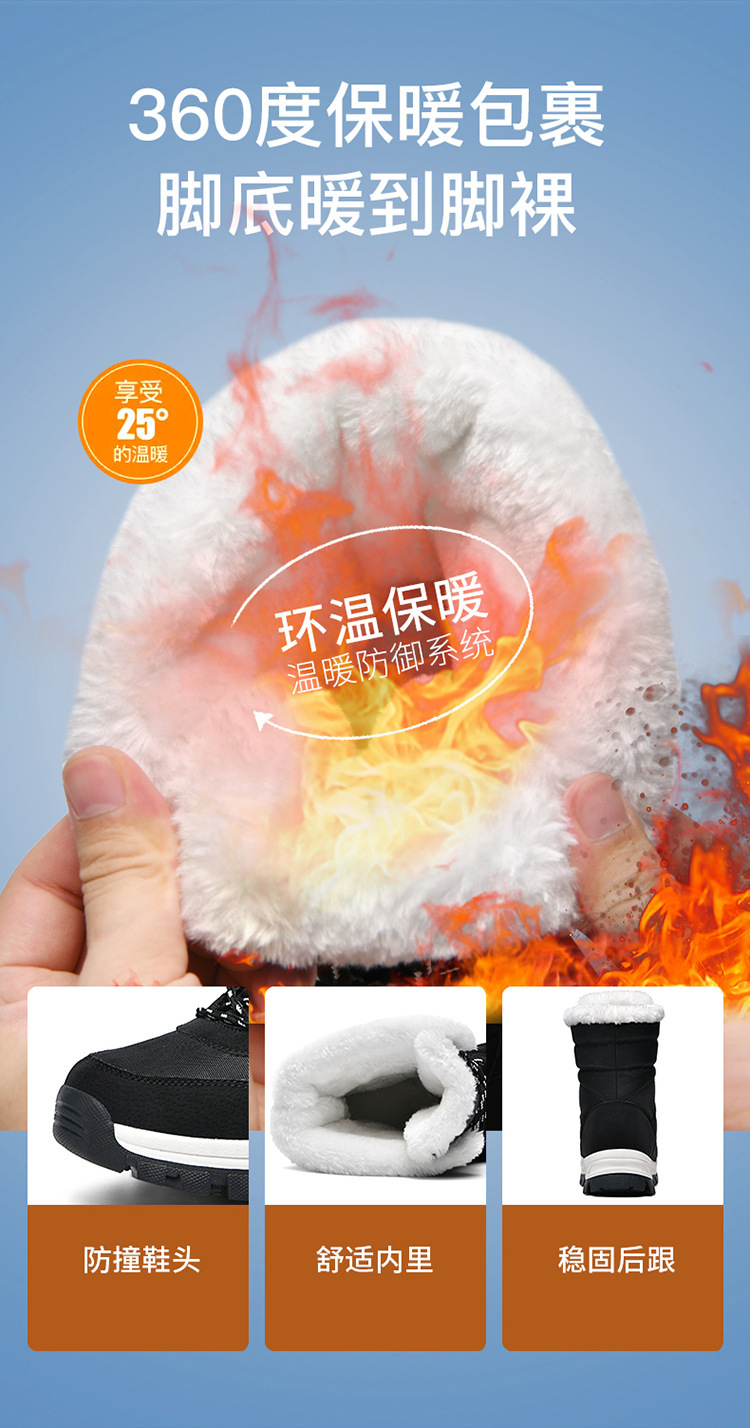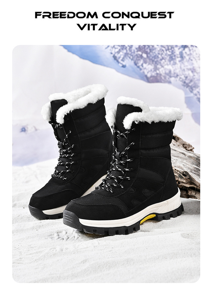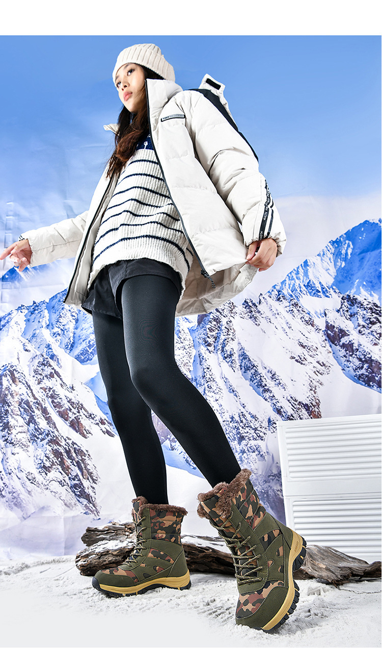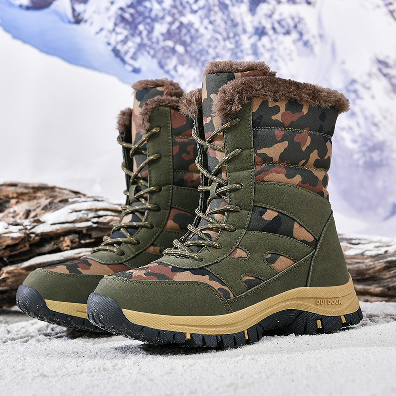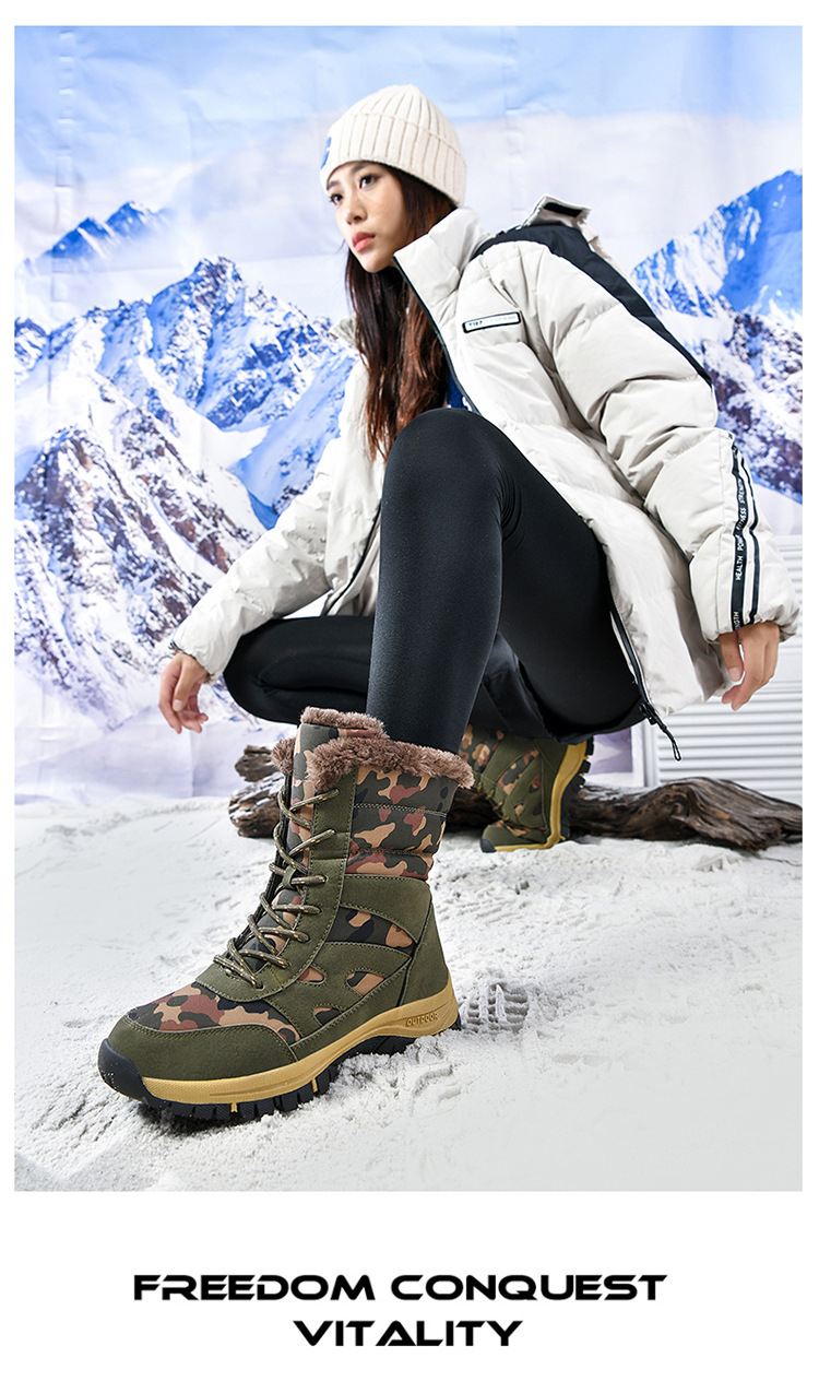 跨境大码厚底秋冬新款加绒保暖雪地靴户外军绿色迷彩高帮男棉鞋子