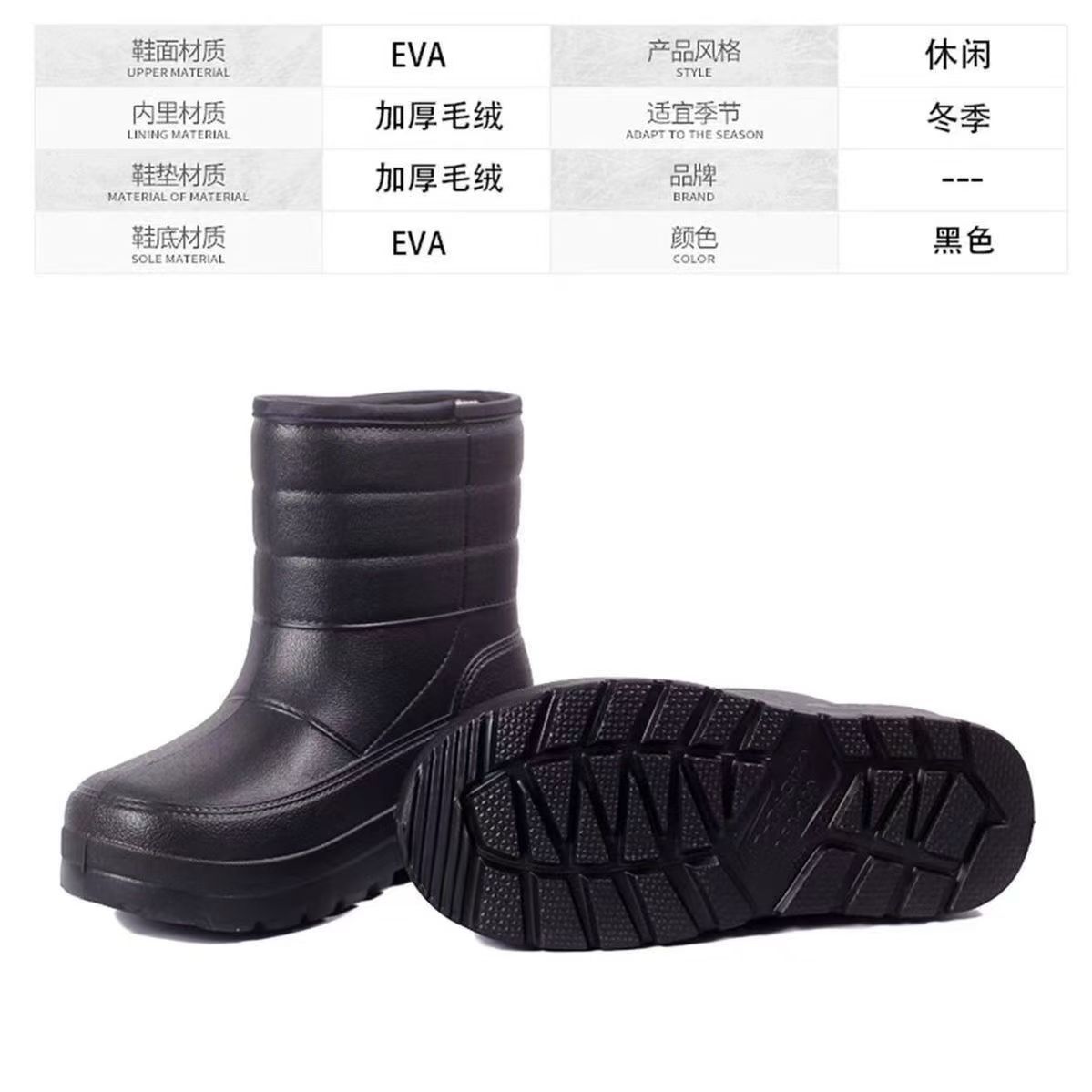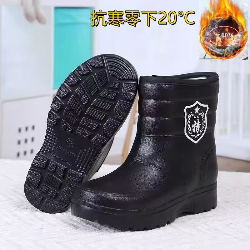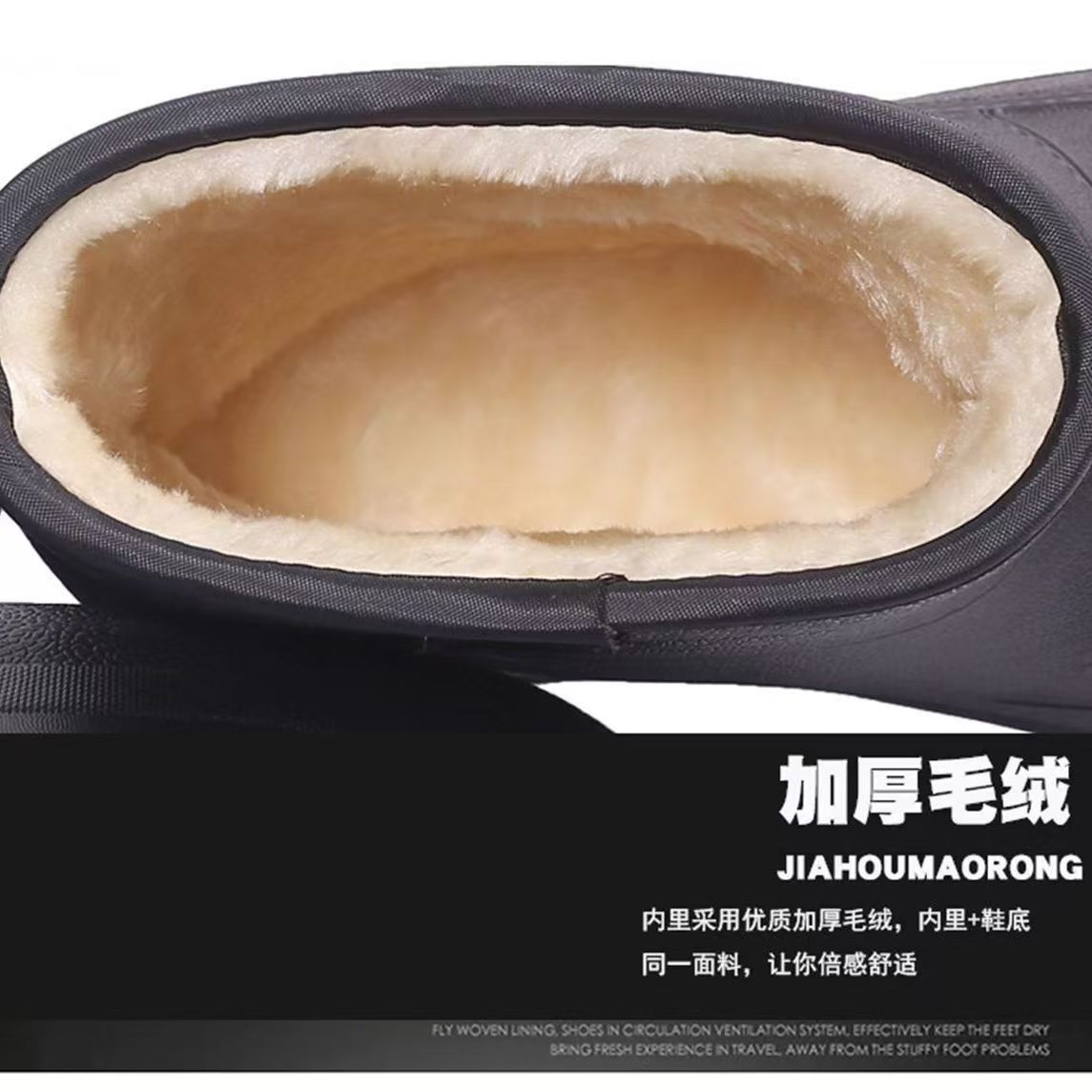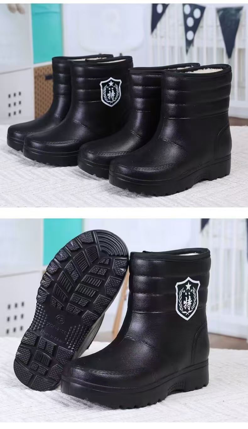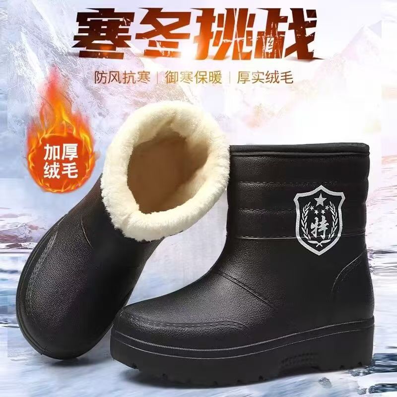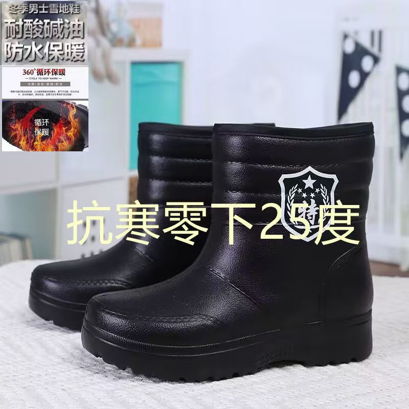 高筒靴防水棉靴男女雪地靴厚底冬款加绒雨靴厨房水靴泡沫型一脚蹬