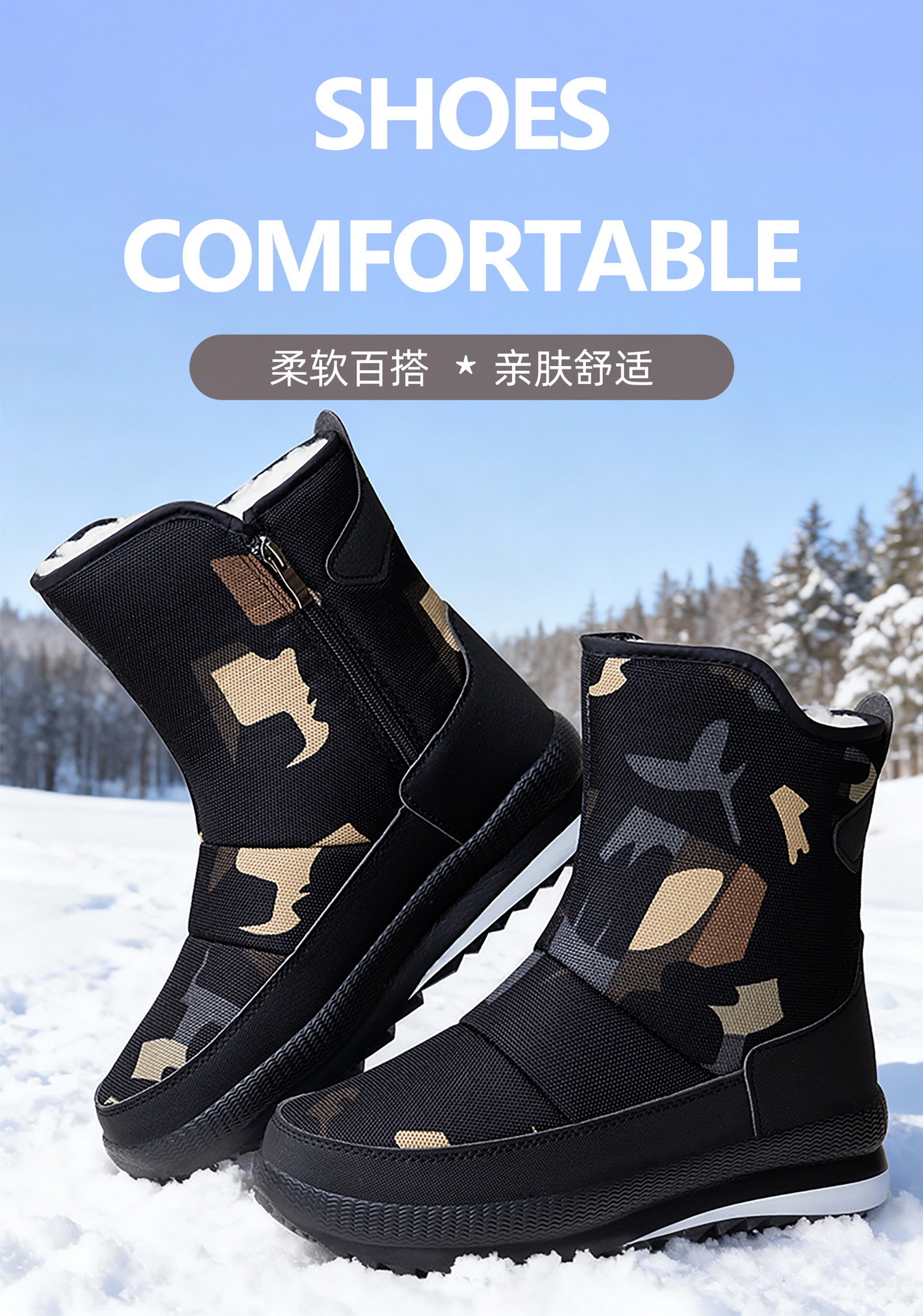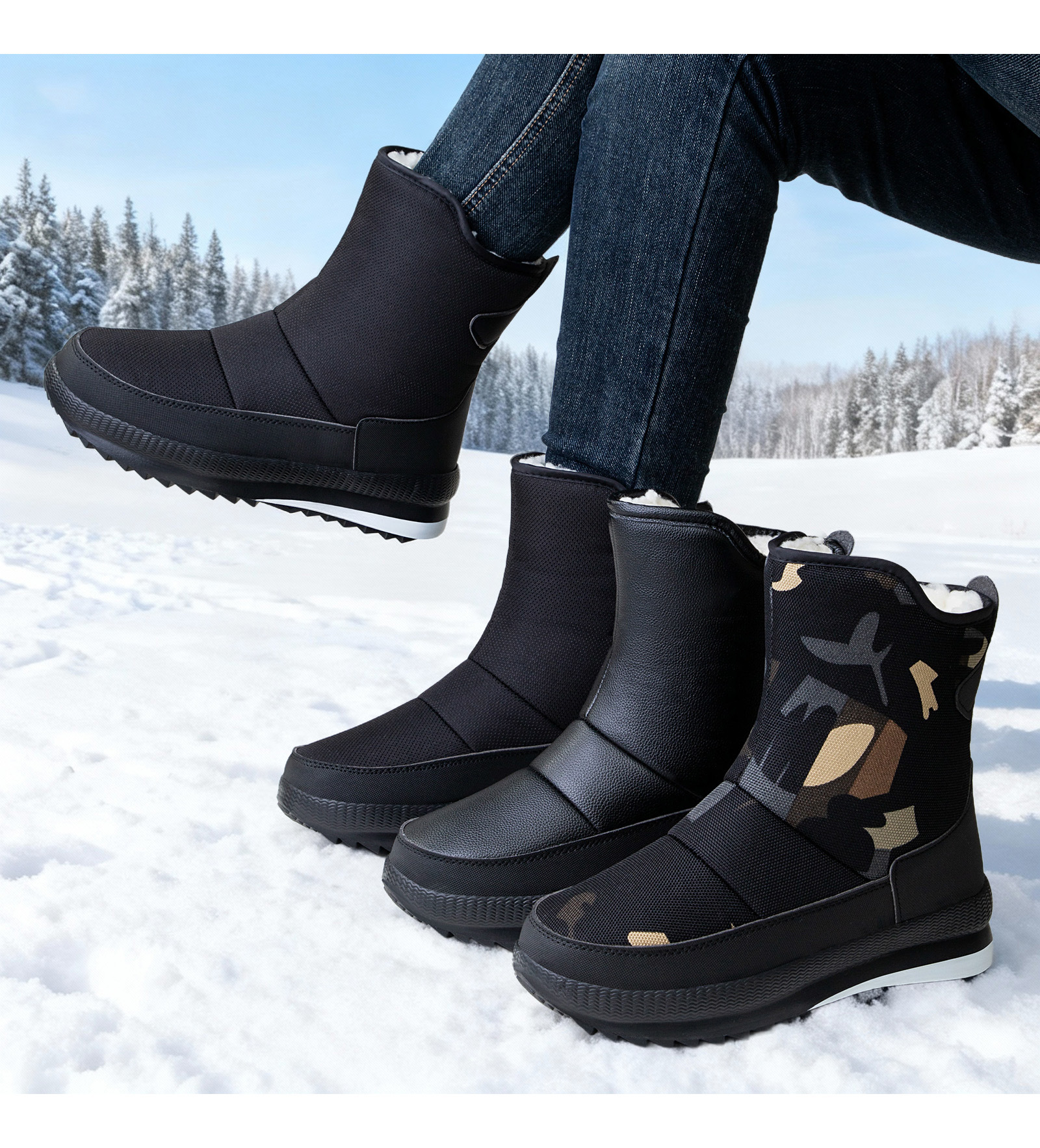 男鞋棉靴冬季加绒加厚一脚蹬休闲雪地靴防水防滑男士棉鞋跨境代发