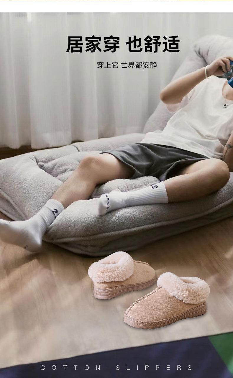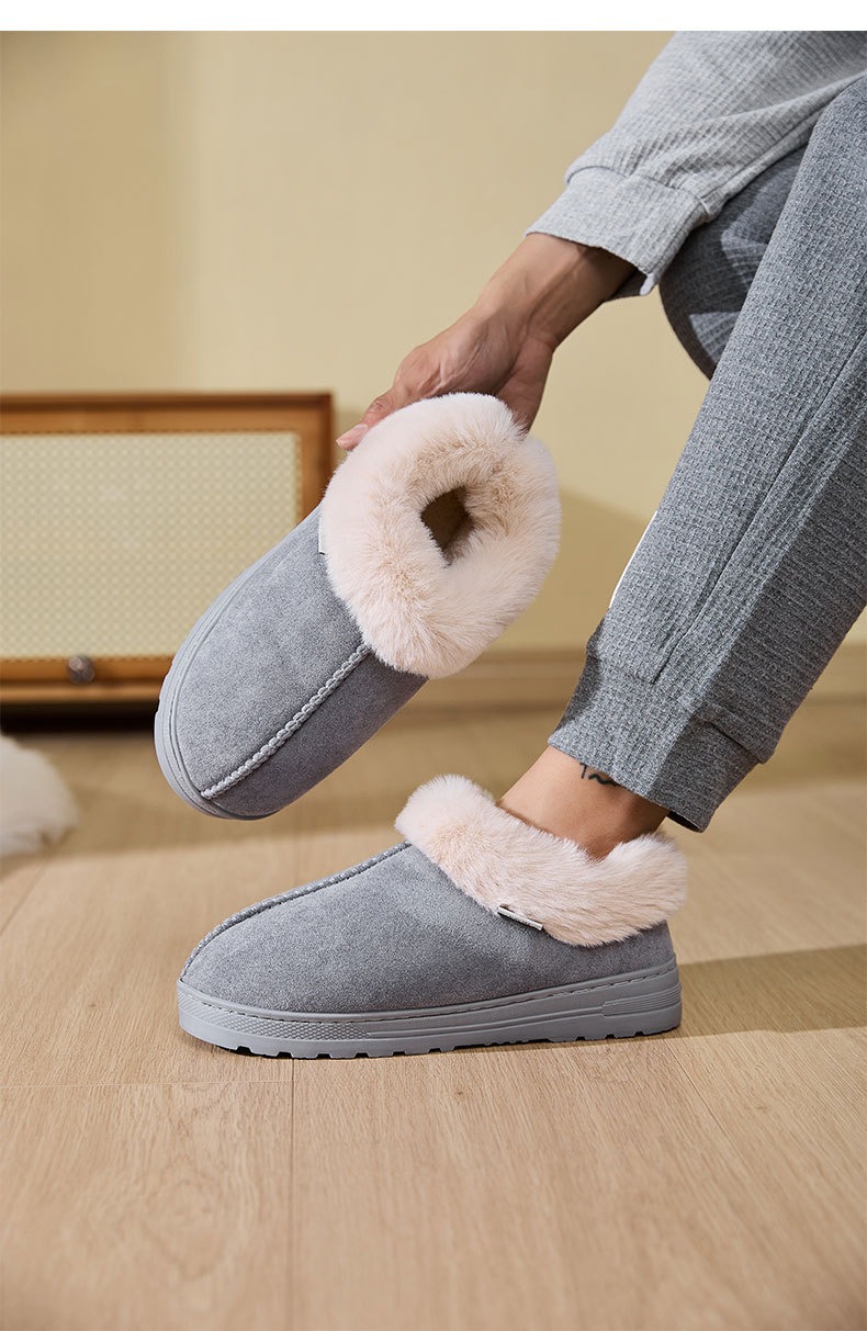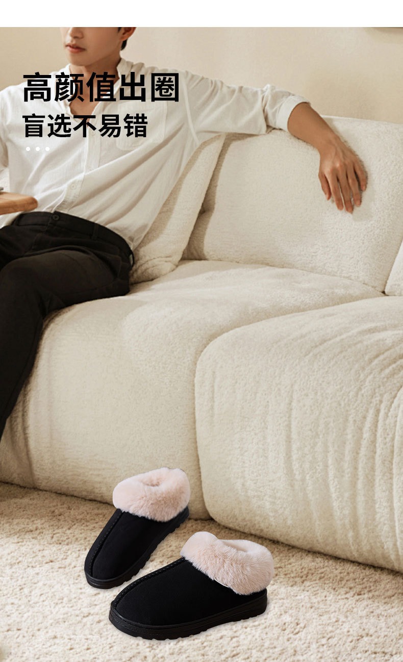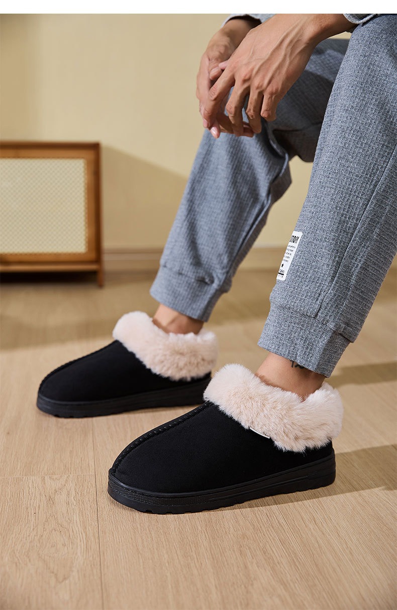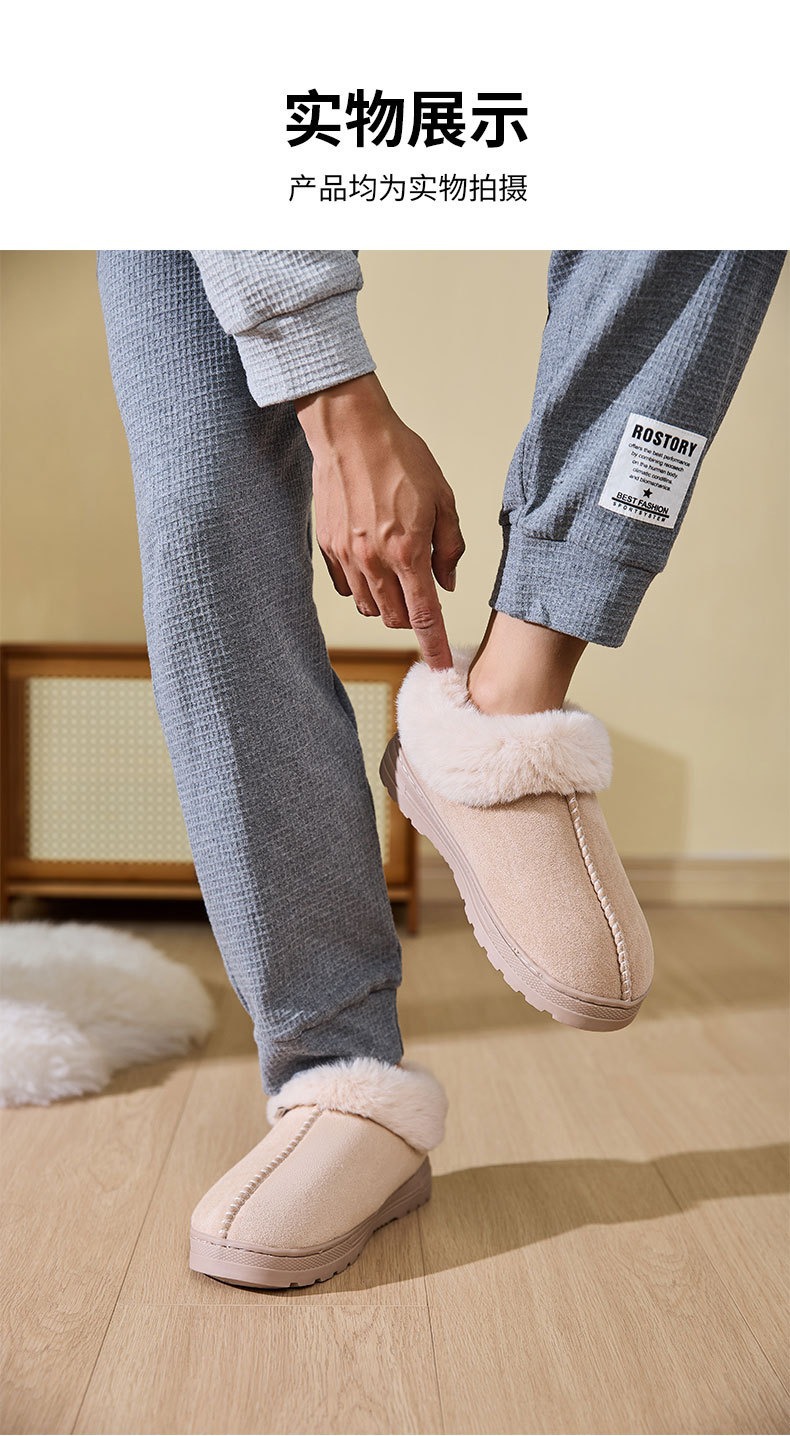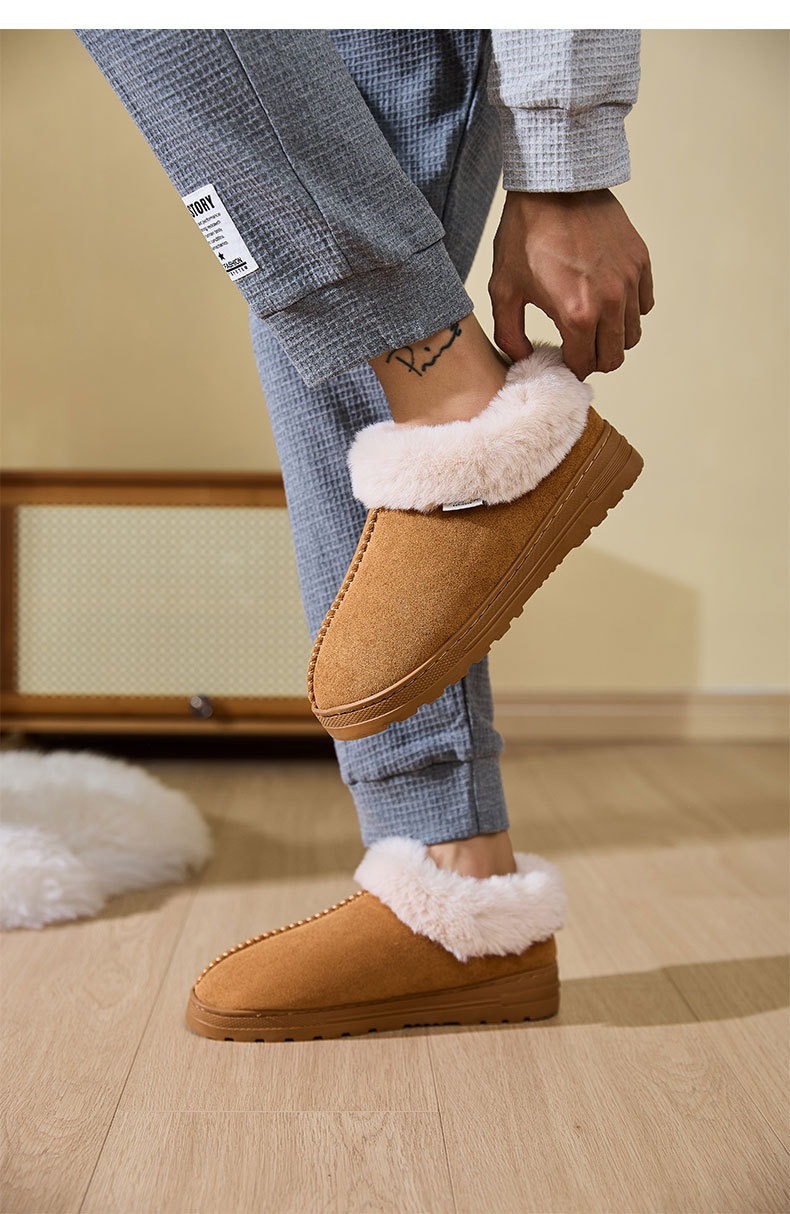 跨境批发厚底短筒雪地靴加厚加绒外穿棉鞋冬季情侣居家防滑棉拖鞋