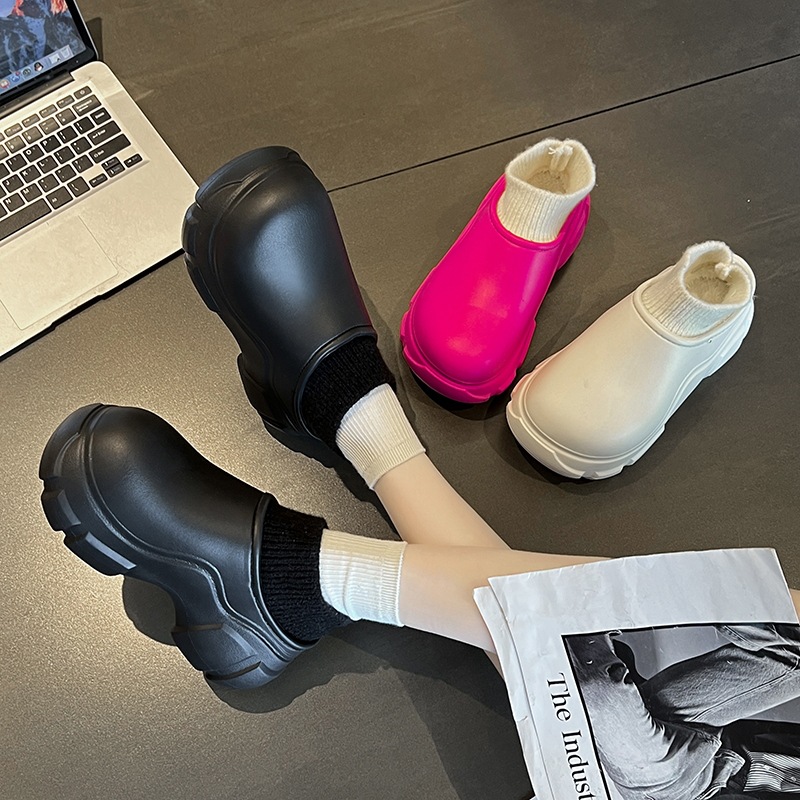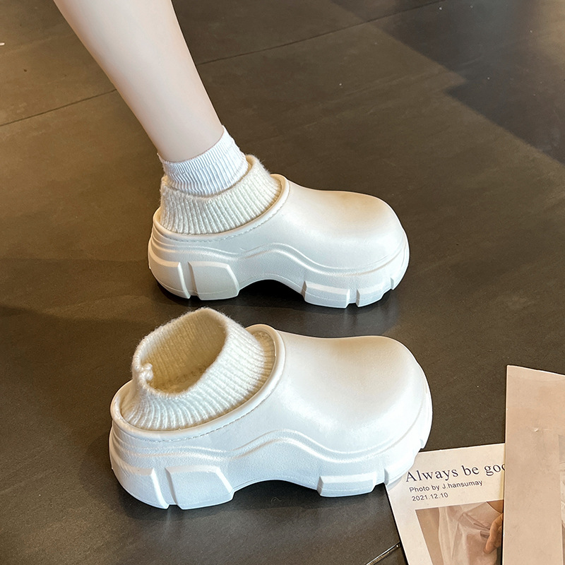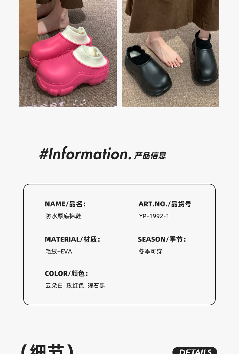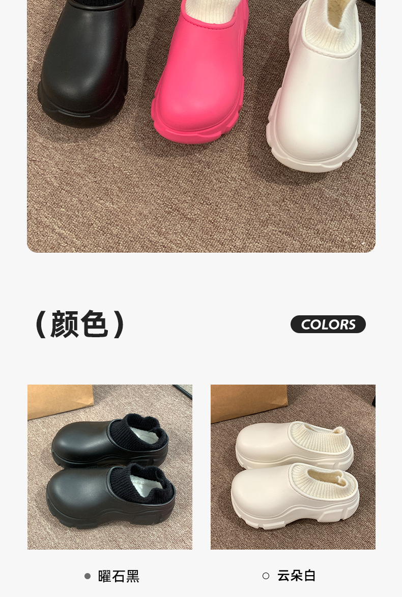 新款5cm增高厚底棉拖鞋女秋冬季保暖防滑防水短筒雪地靴百搭棉鞋