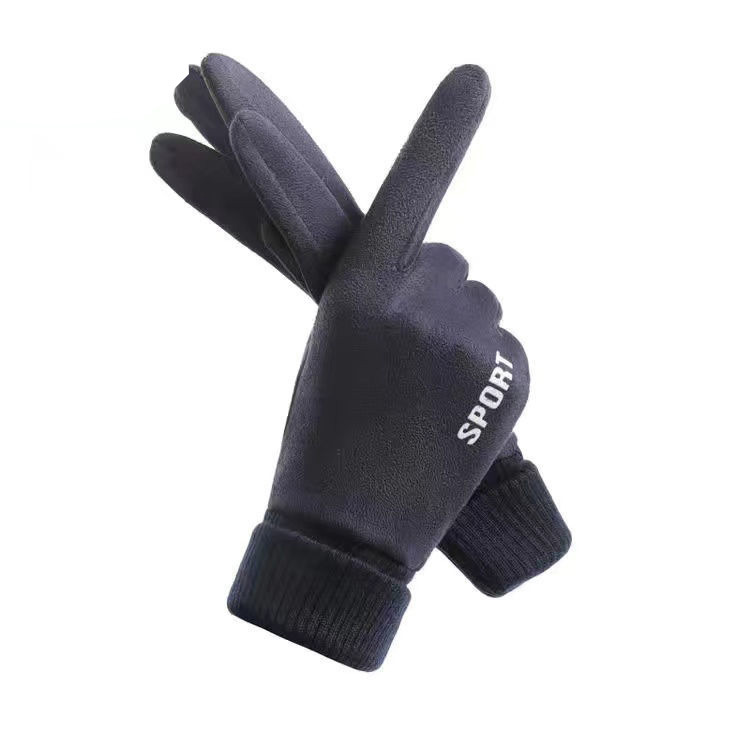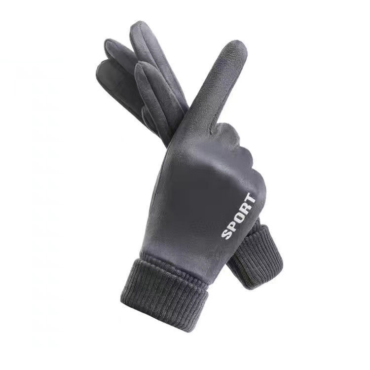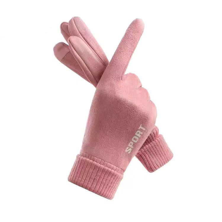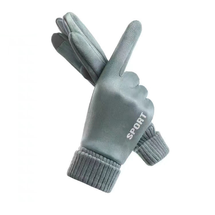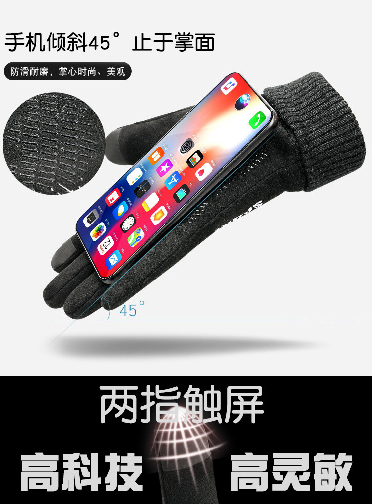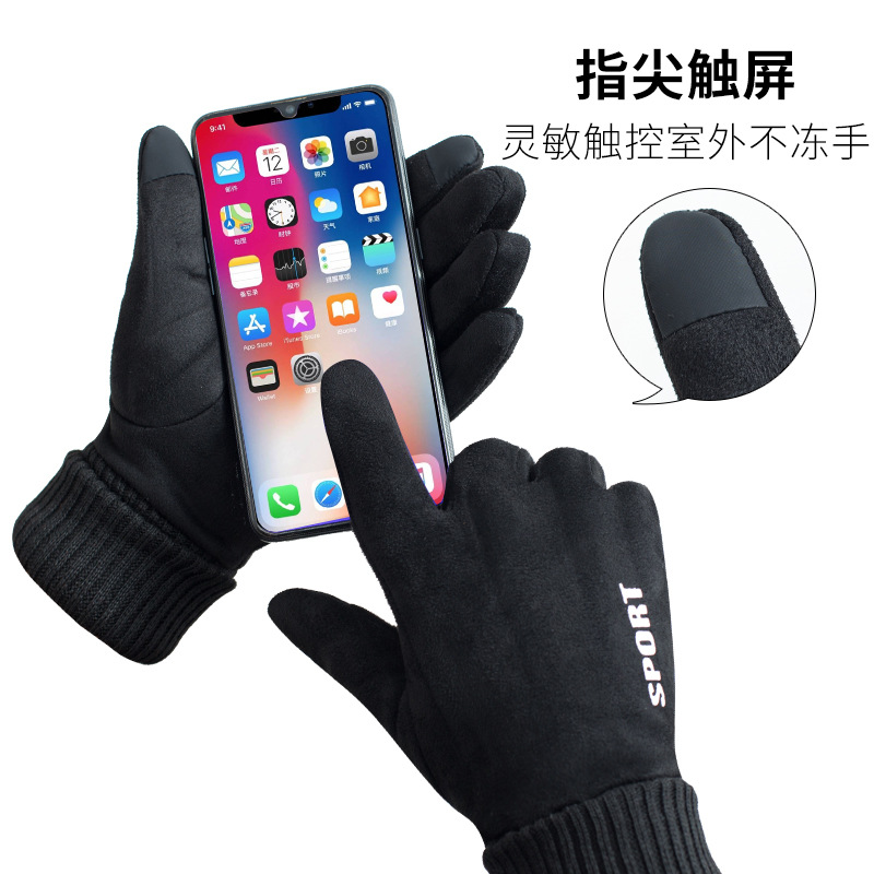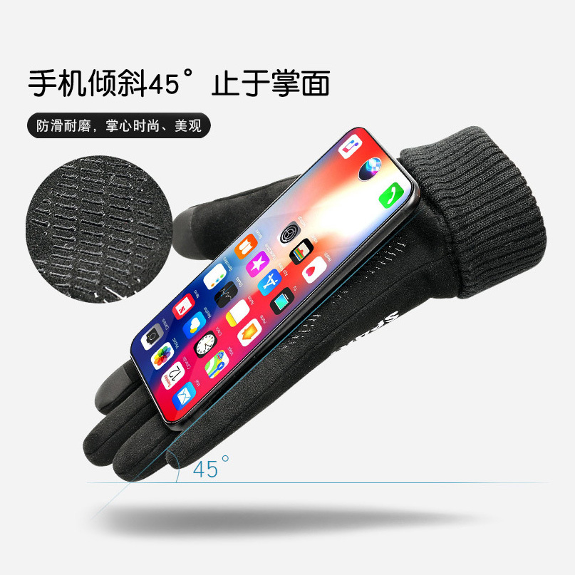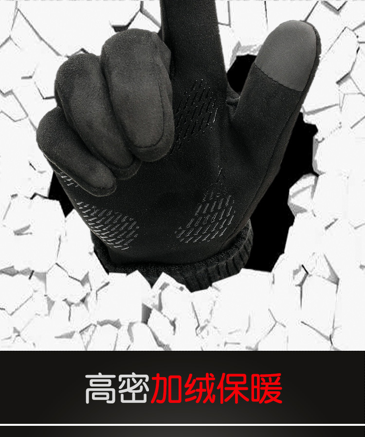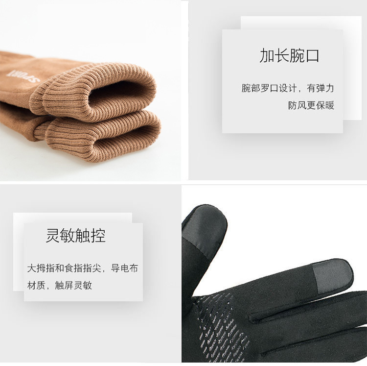 麂皮绒手套男女士冬季防寒保暖触屏加绒加厚骑行开车自行车棉手套