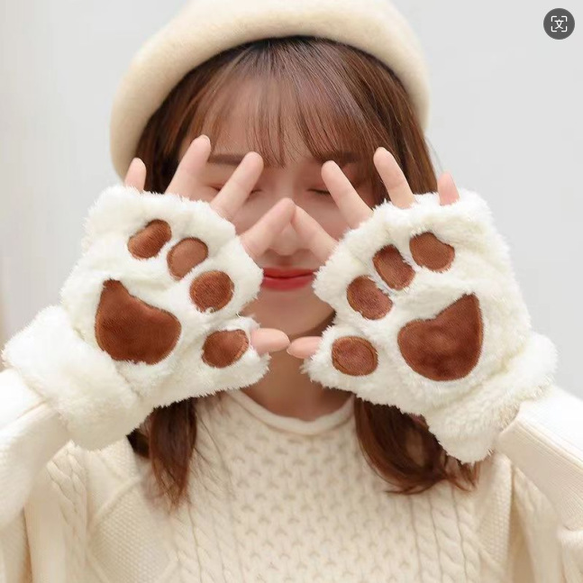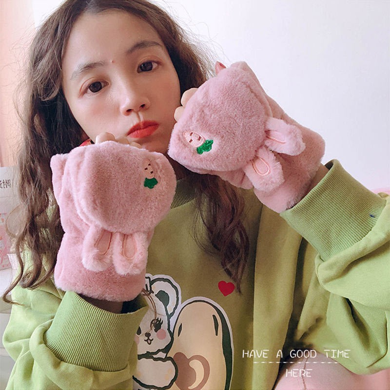 冬季加厚毛绒保暖学生手套可爱兔子翻盖卡通刺绣款防寒韩版保暖